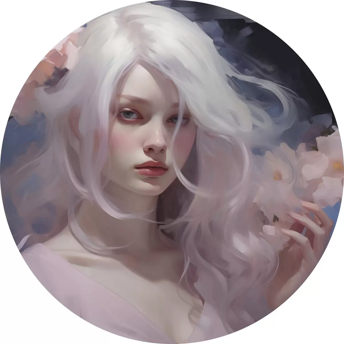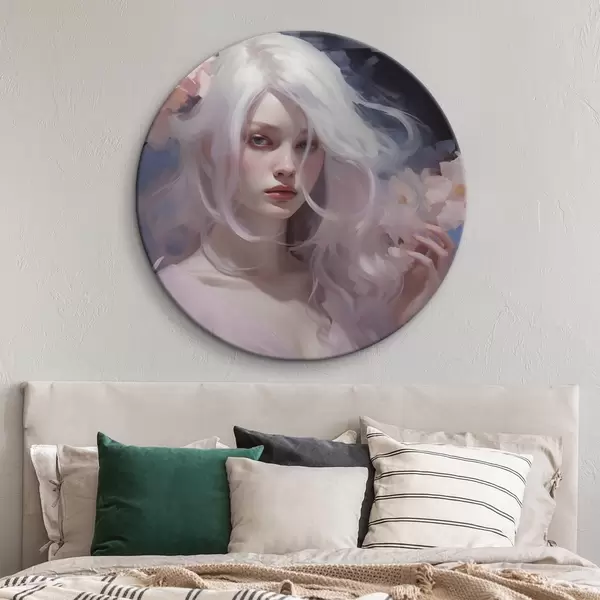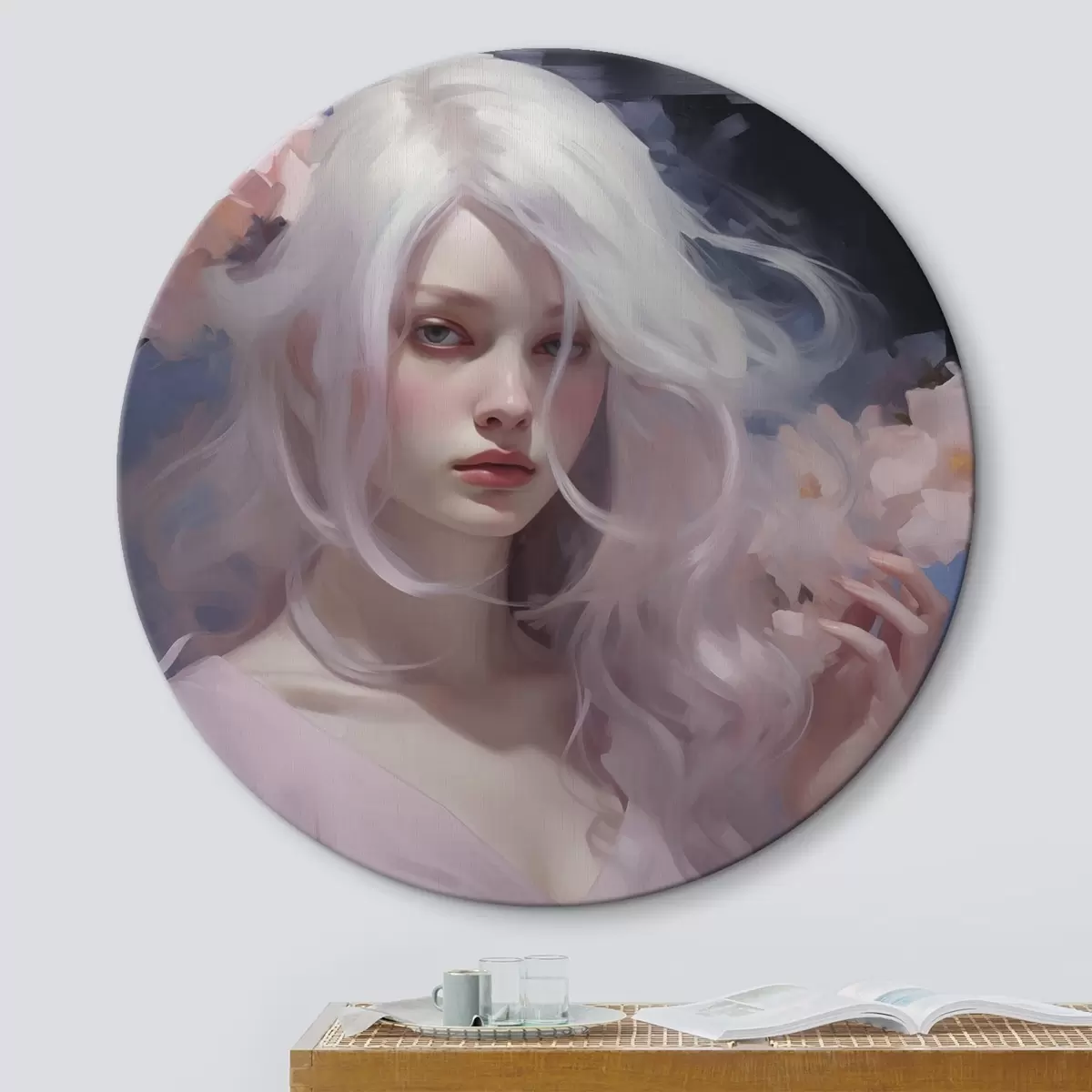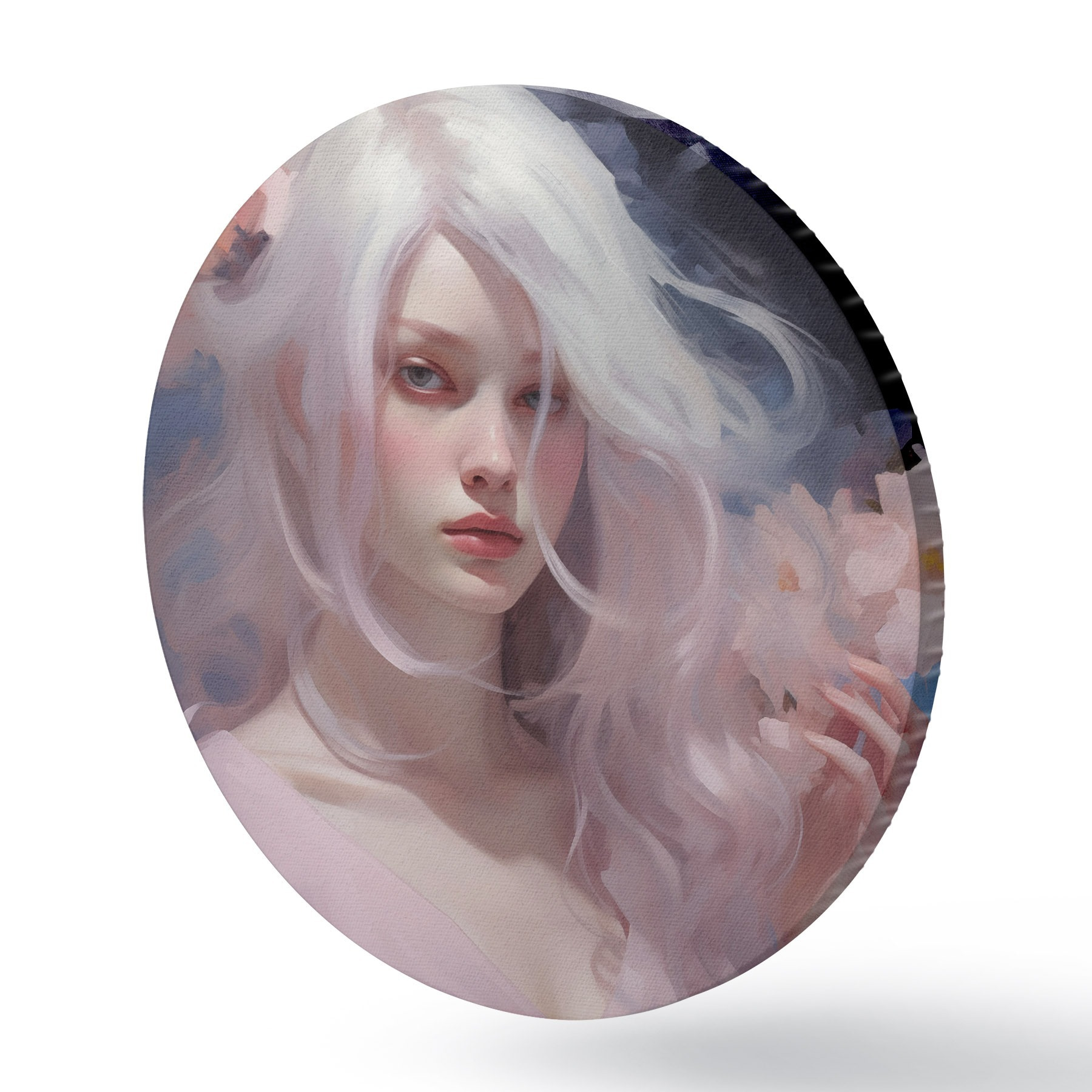 Apaļas gleznas Meitene ar peonijām, akrila stila zīmējums, tumšs fons r43496