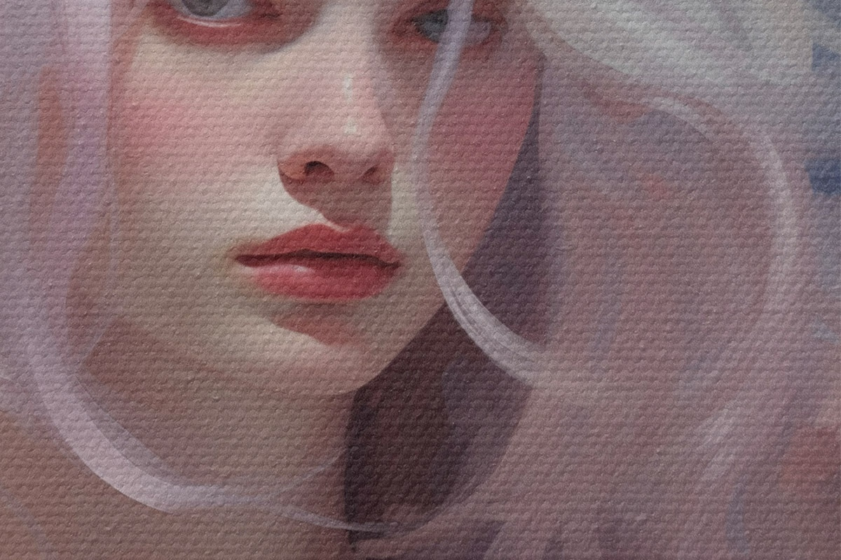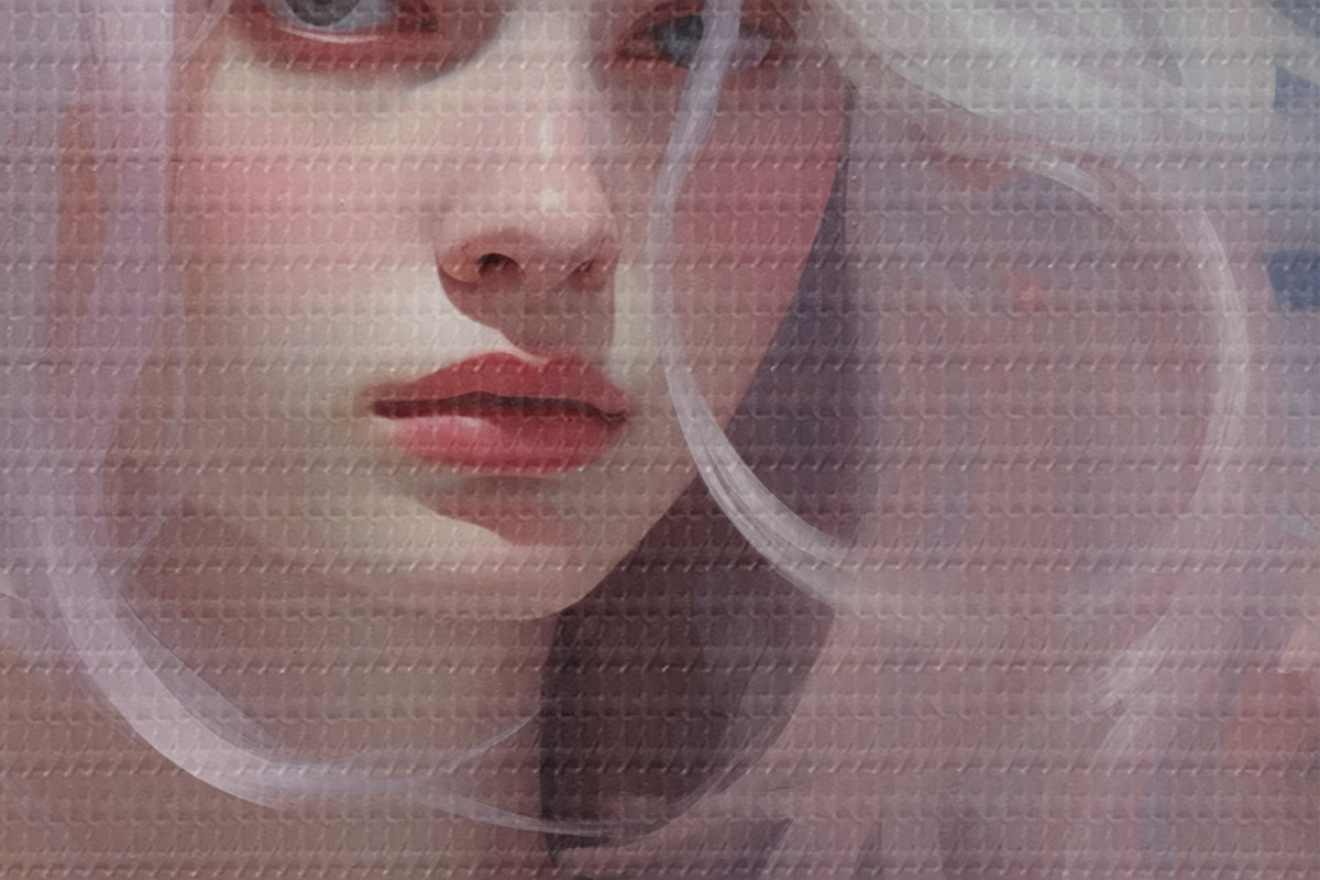 Smalkais diegu pinums uz šī audekla atgādina profesionālu mākslinieku audeklu virsmu.