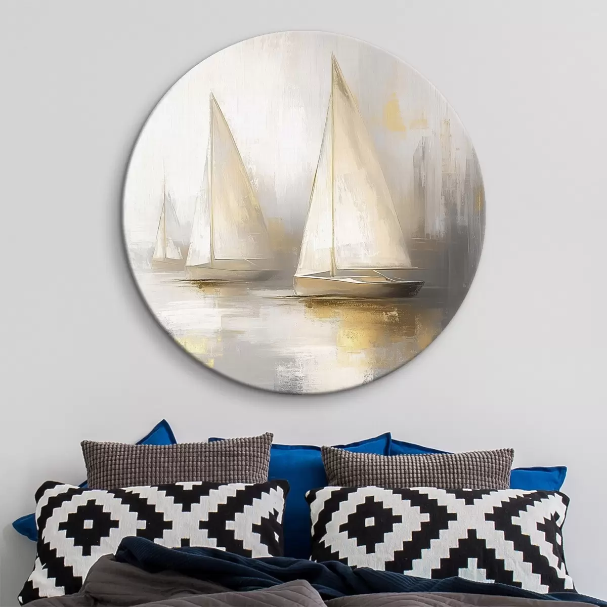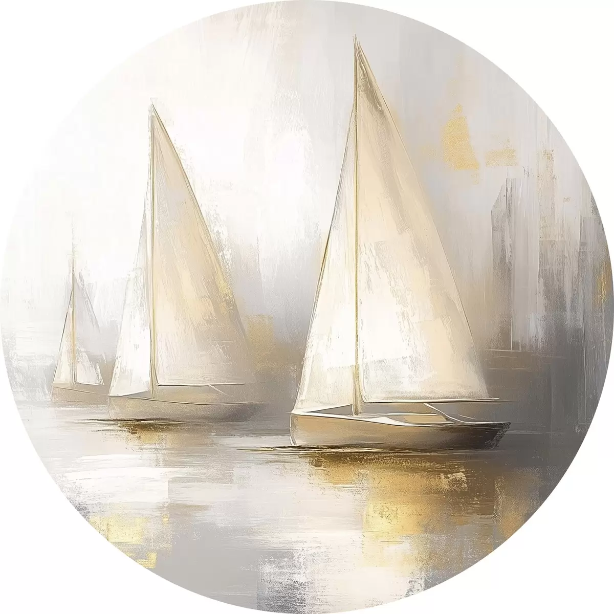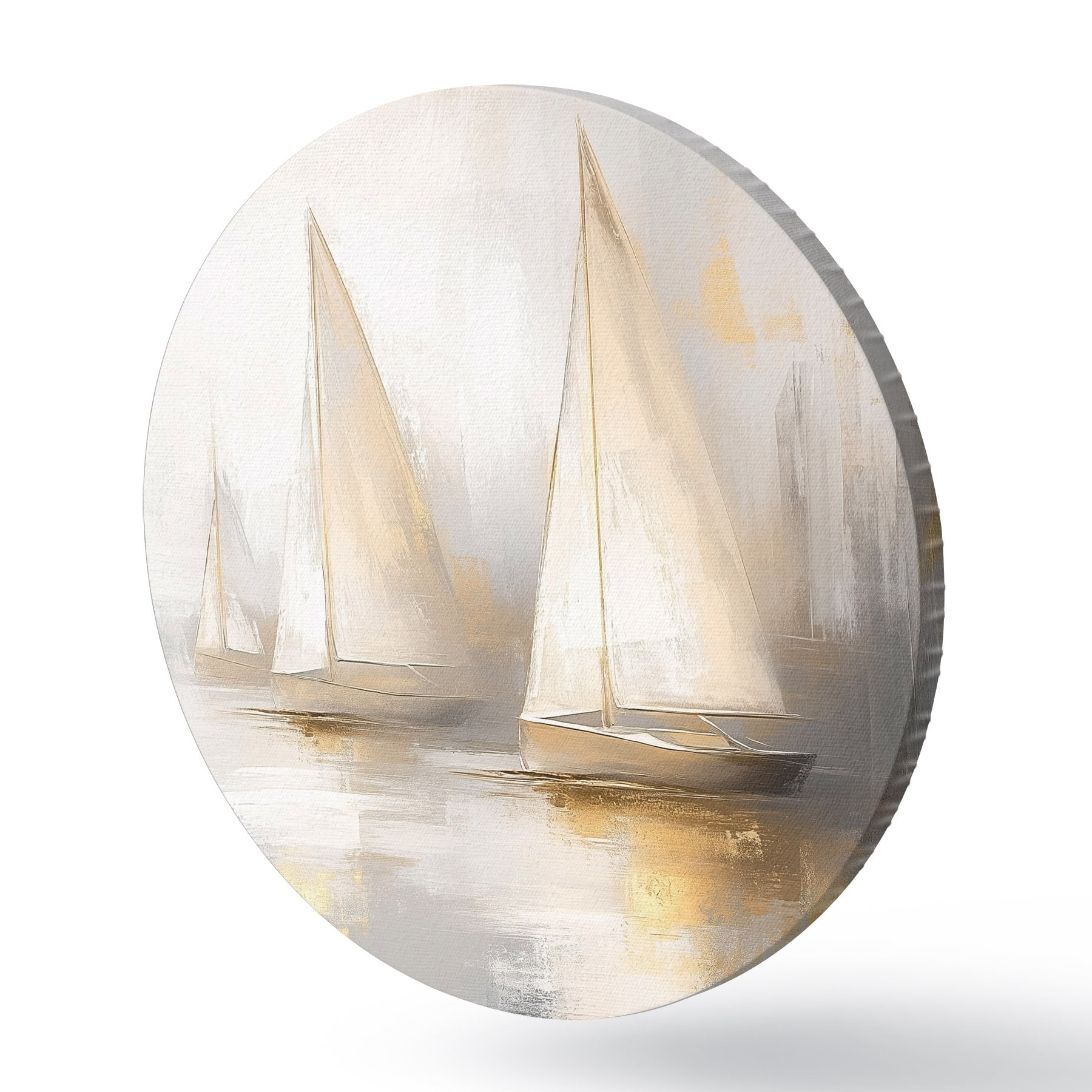 Apaļas gleznas Laivas jūrā, abstrakcija, eļļas stils, bēšas krāsas r43505