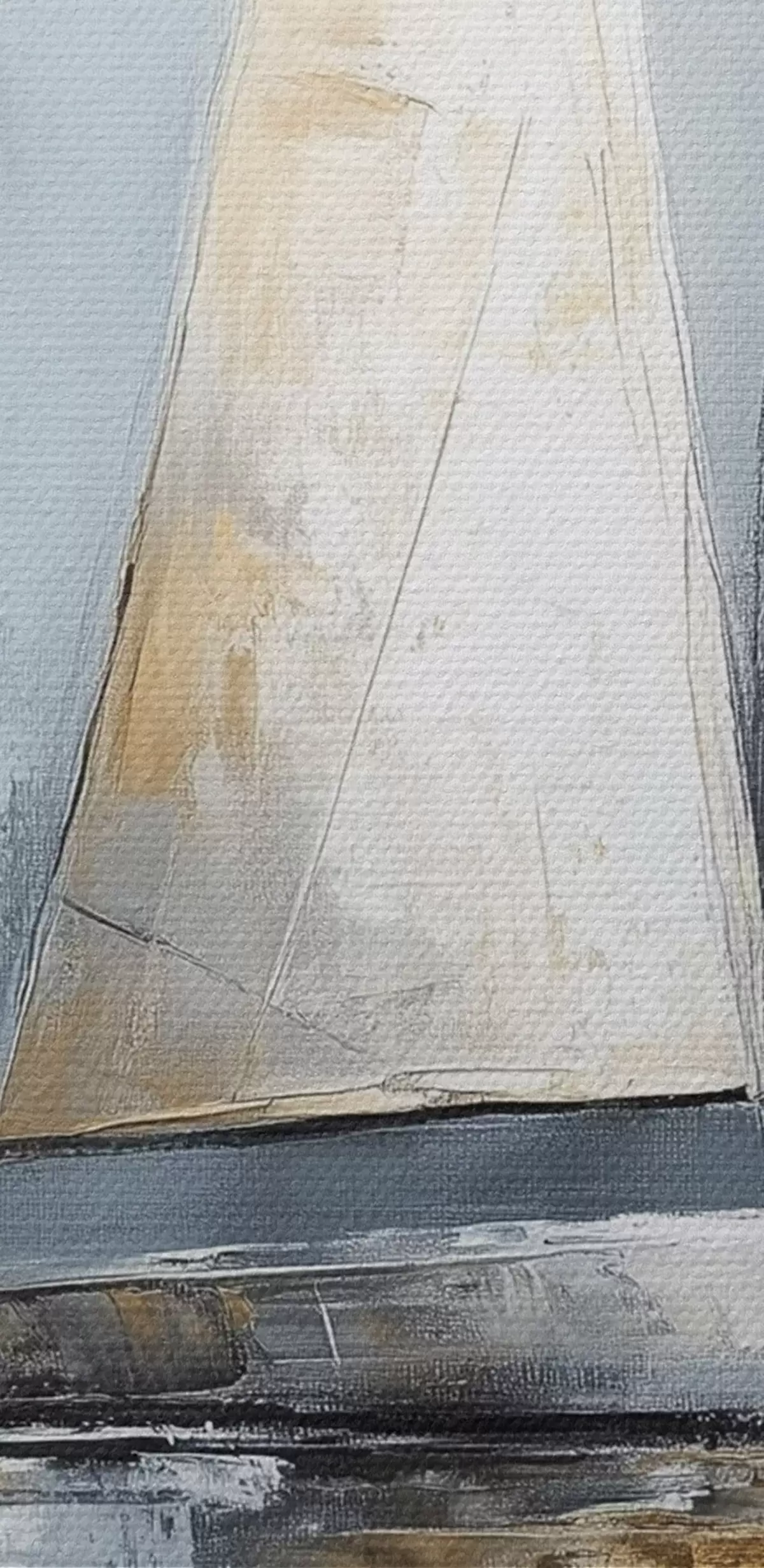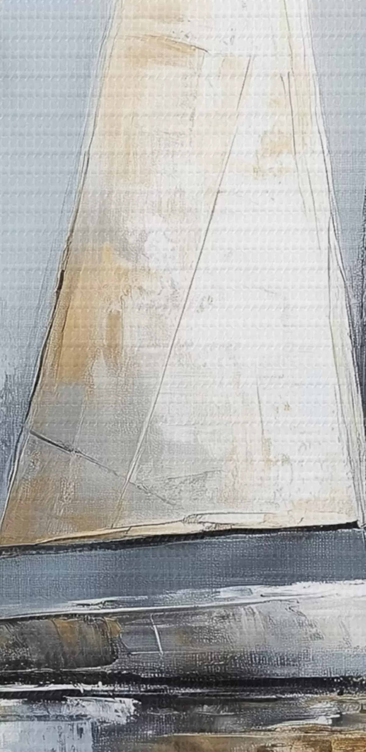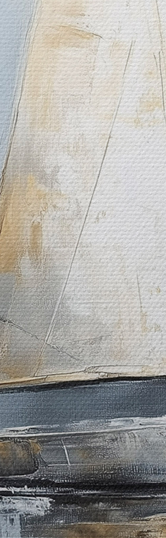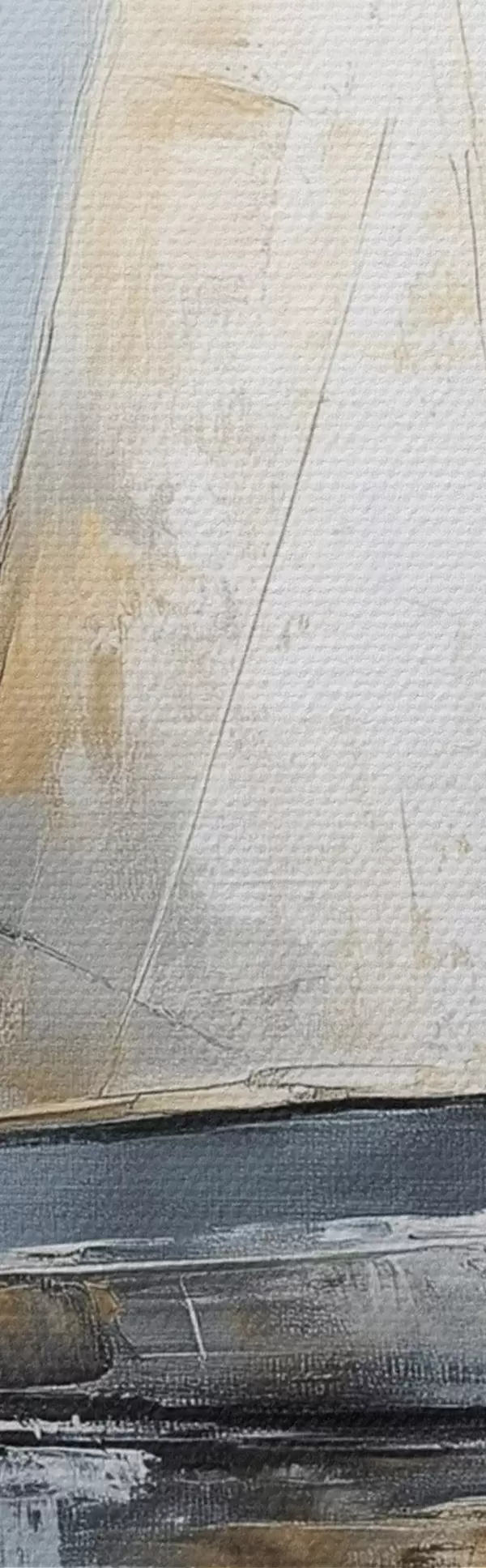 Apaļas gleznas Buru laivas ar atspulgiem ūdenī, eļļas stila zīmējums, pelēkas krāsas r43506
