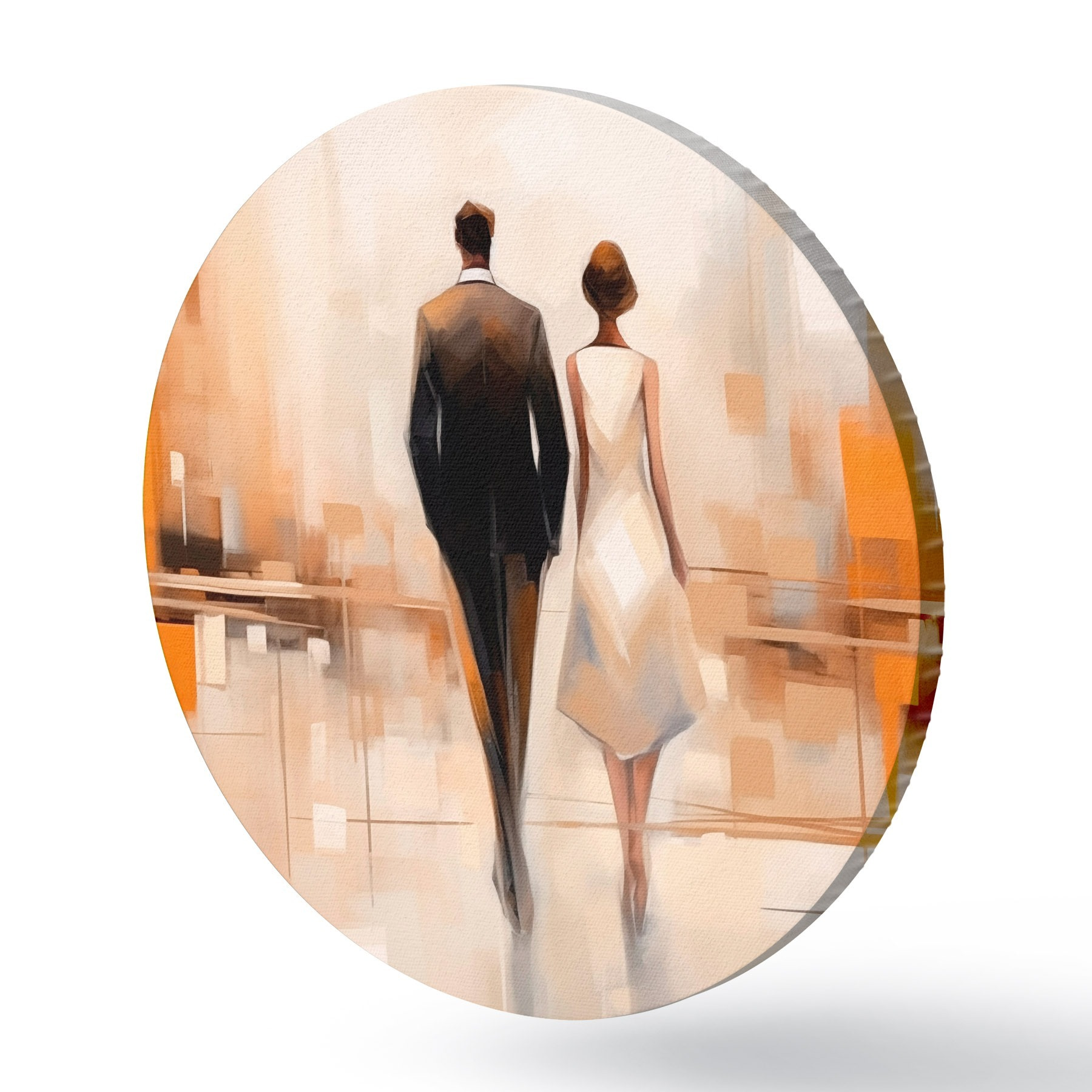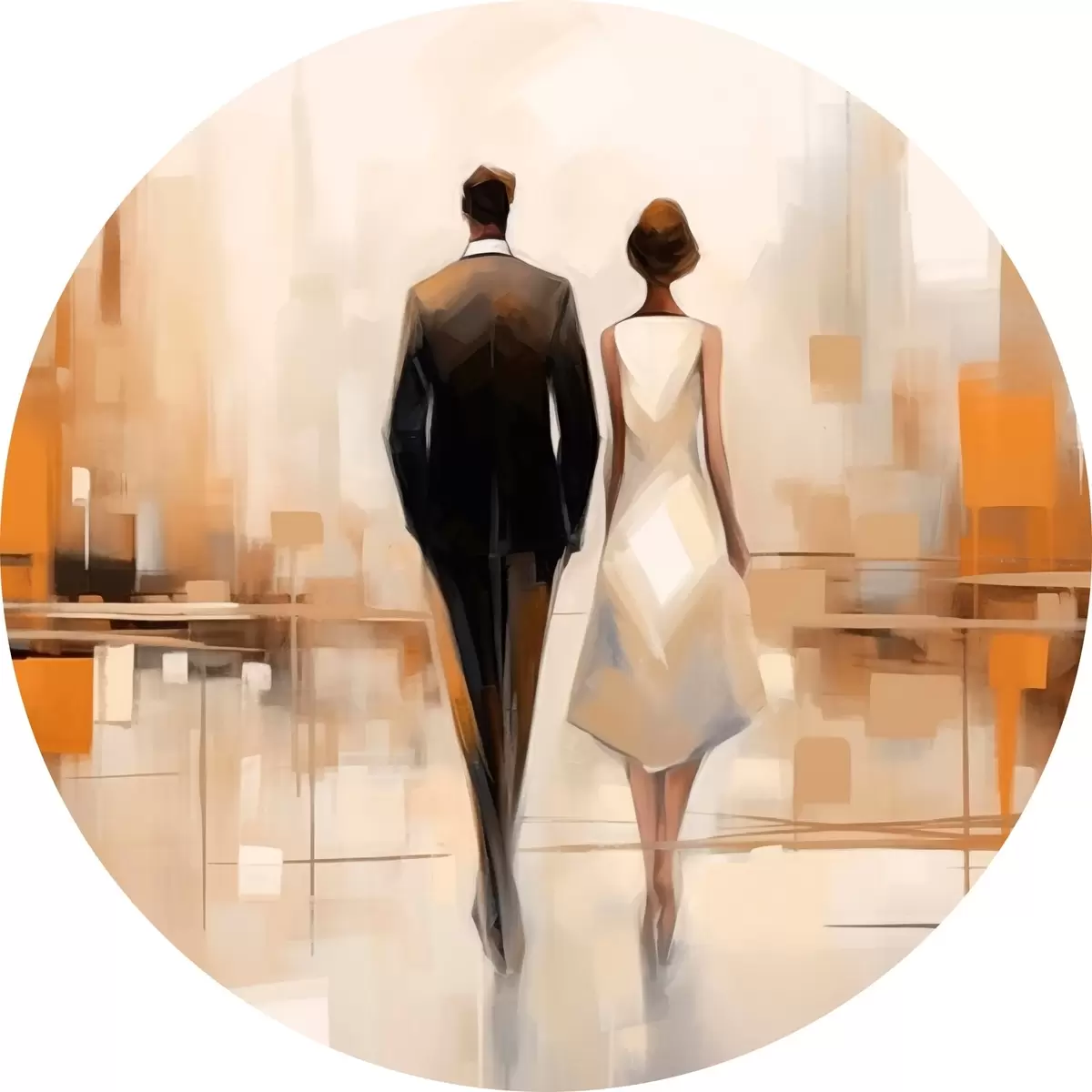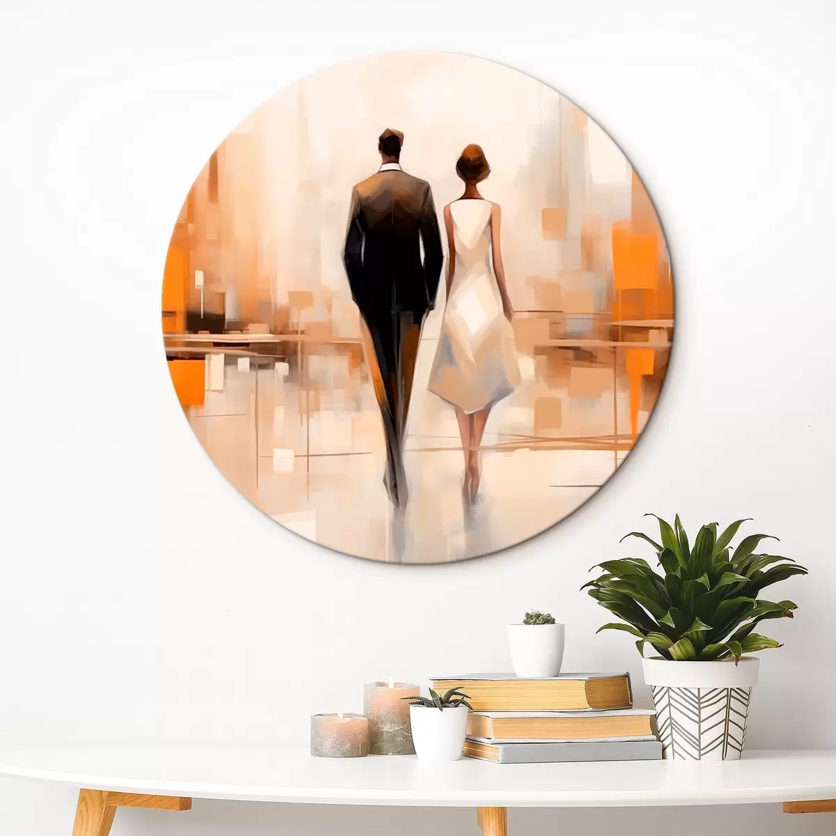 Apaļas gleznas Abstrakcija ar pilsētas siluetiem un divām figūrām r43516