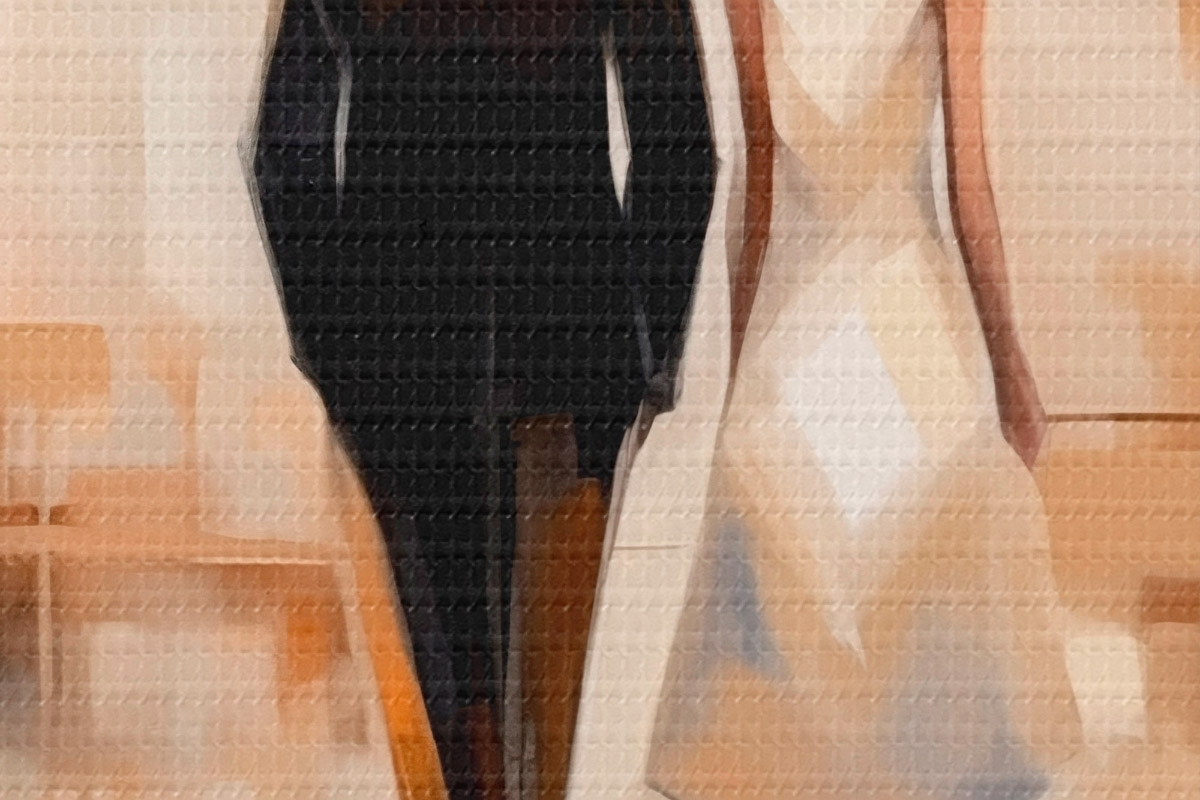 Attēls Abstrakcija ar pilsētas siluetiem un divām figūrām Nr r43516
