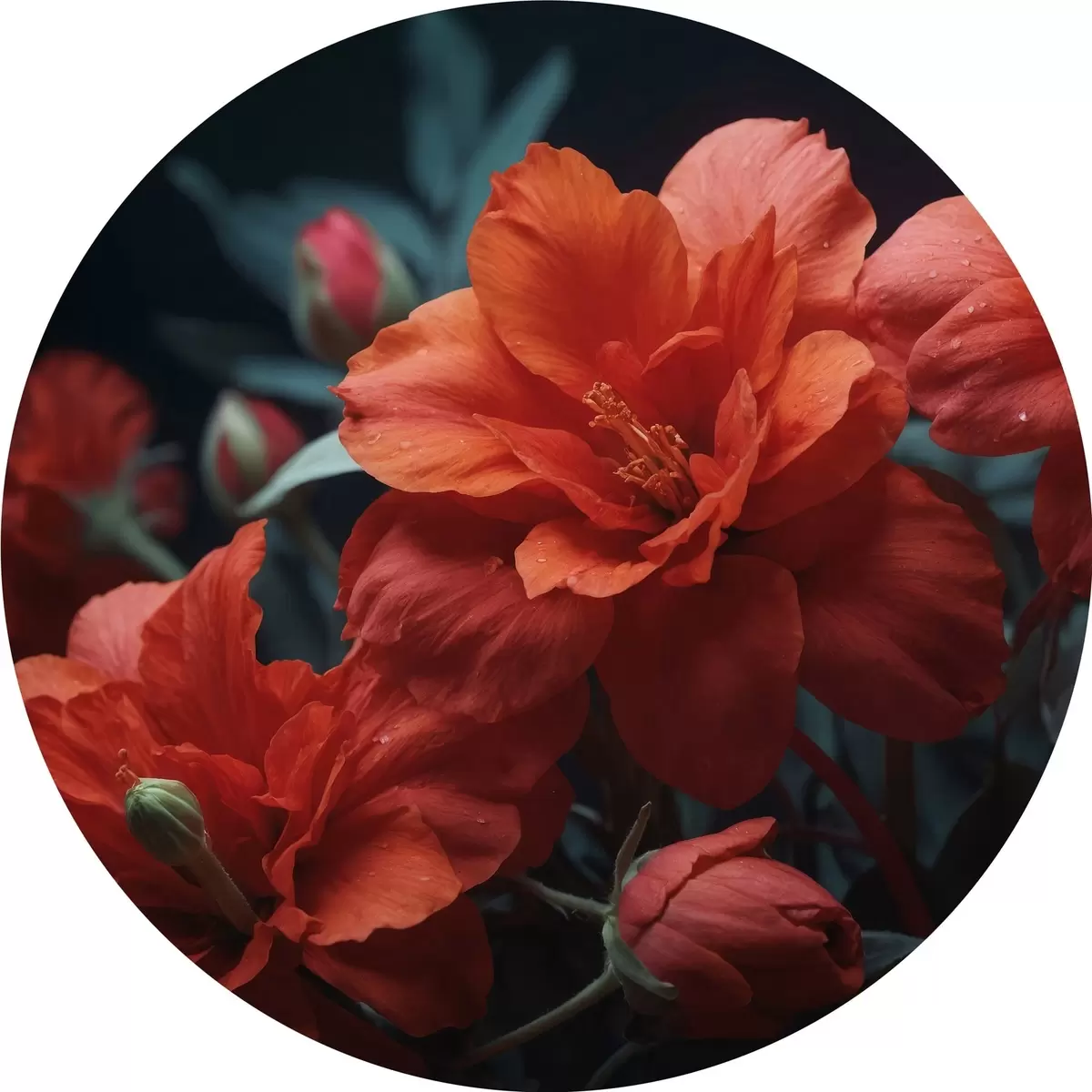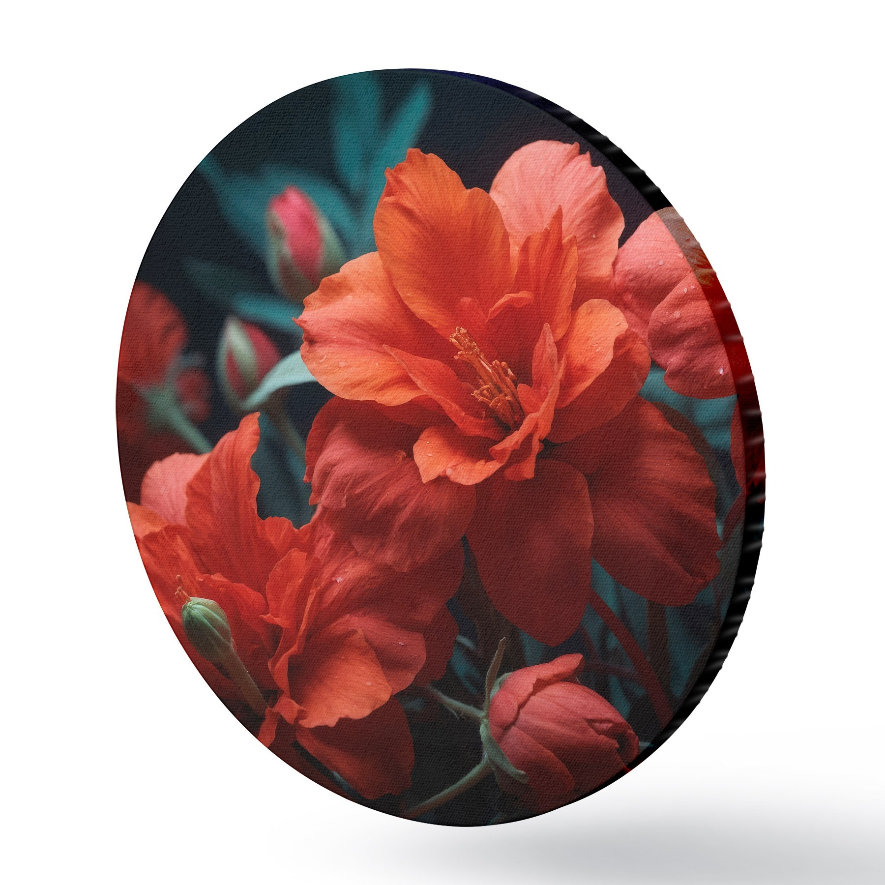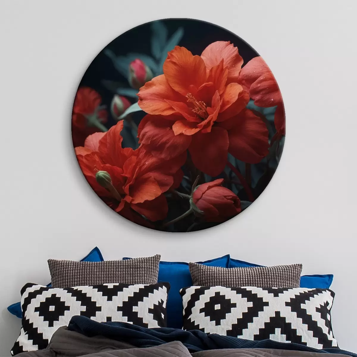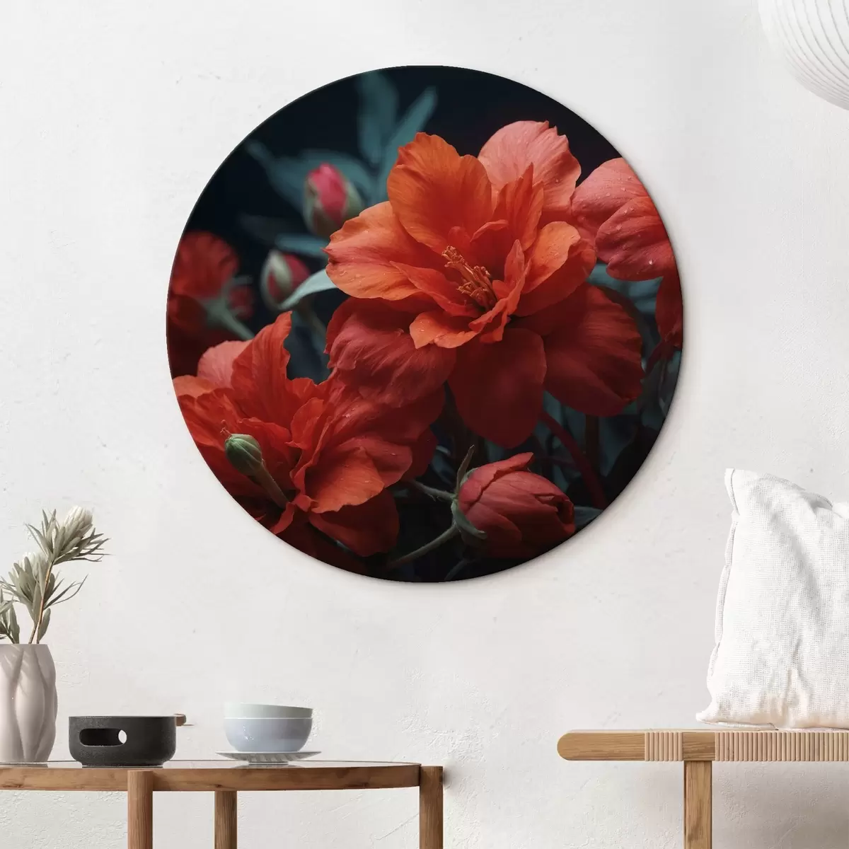 Apaļas gleznas Sarkani ziedi uz tumša fona r43877