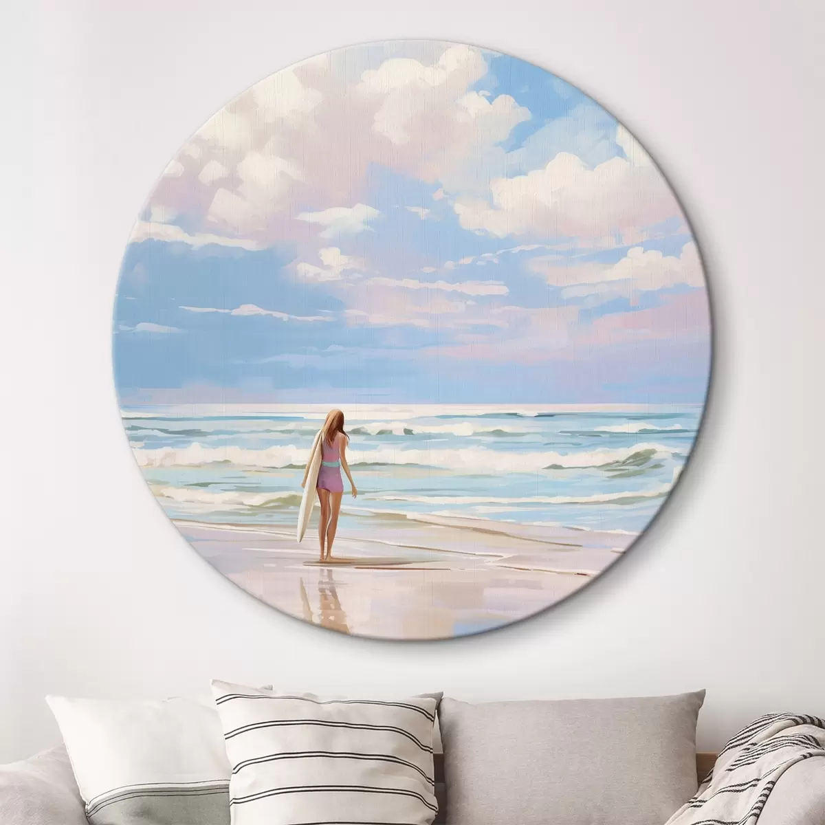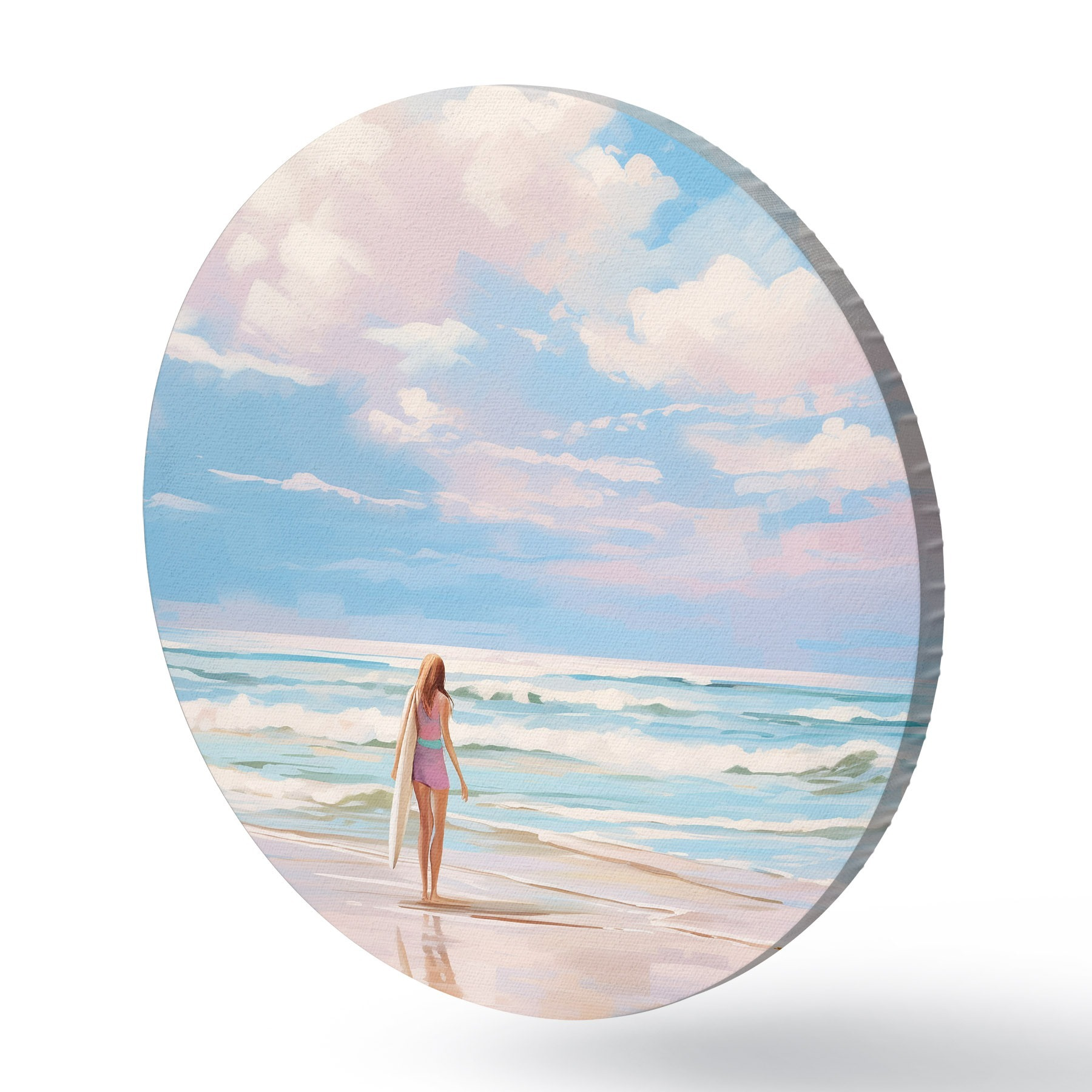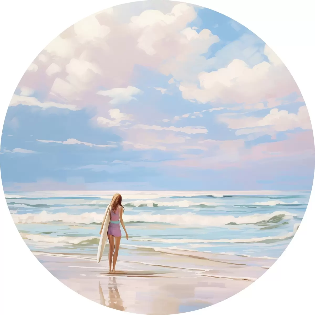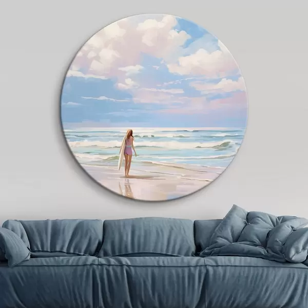 Apaļas gleznas Meitene sērfo okeānā, vasara, viļņi, akrila stils r43882