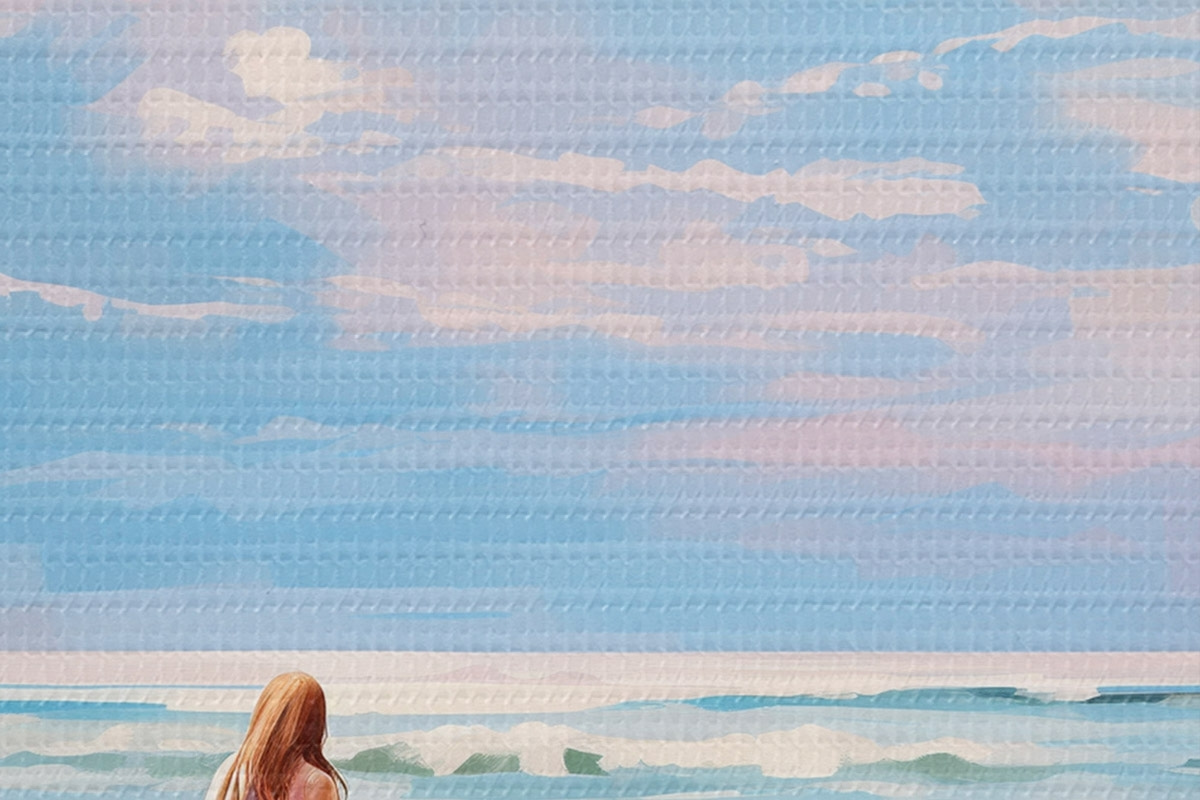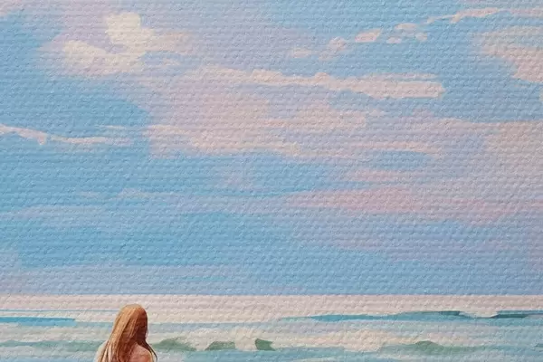 Attēls Meitene sērfo okeānā, vasara, viļņi, akrila stils Nr r43882