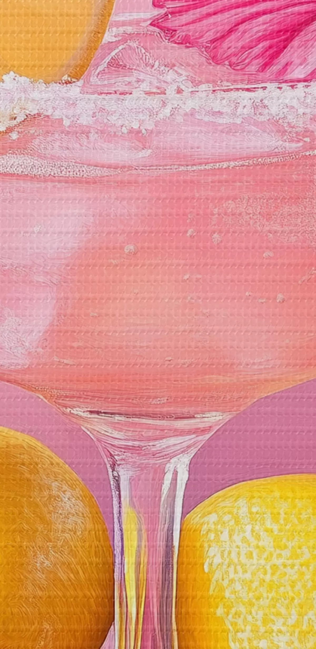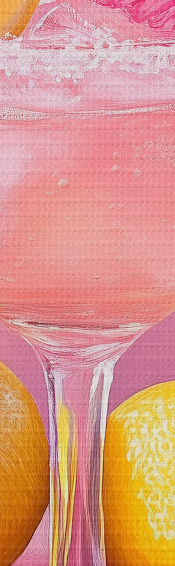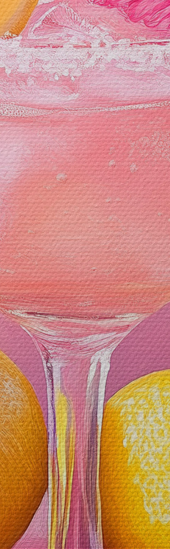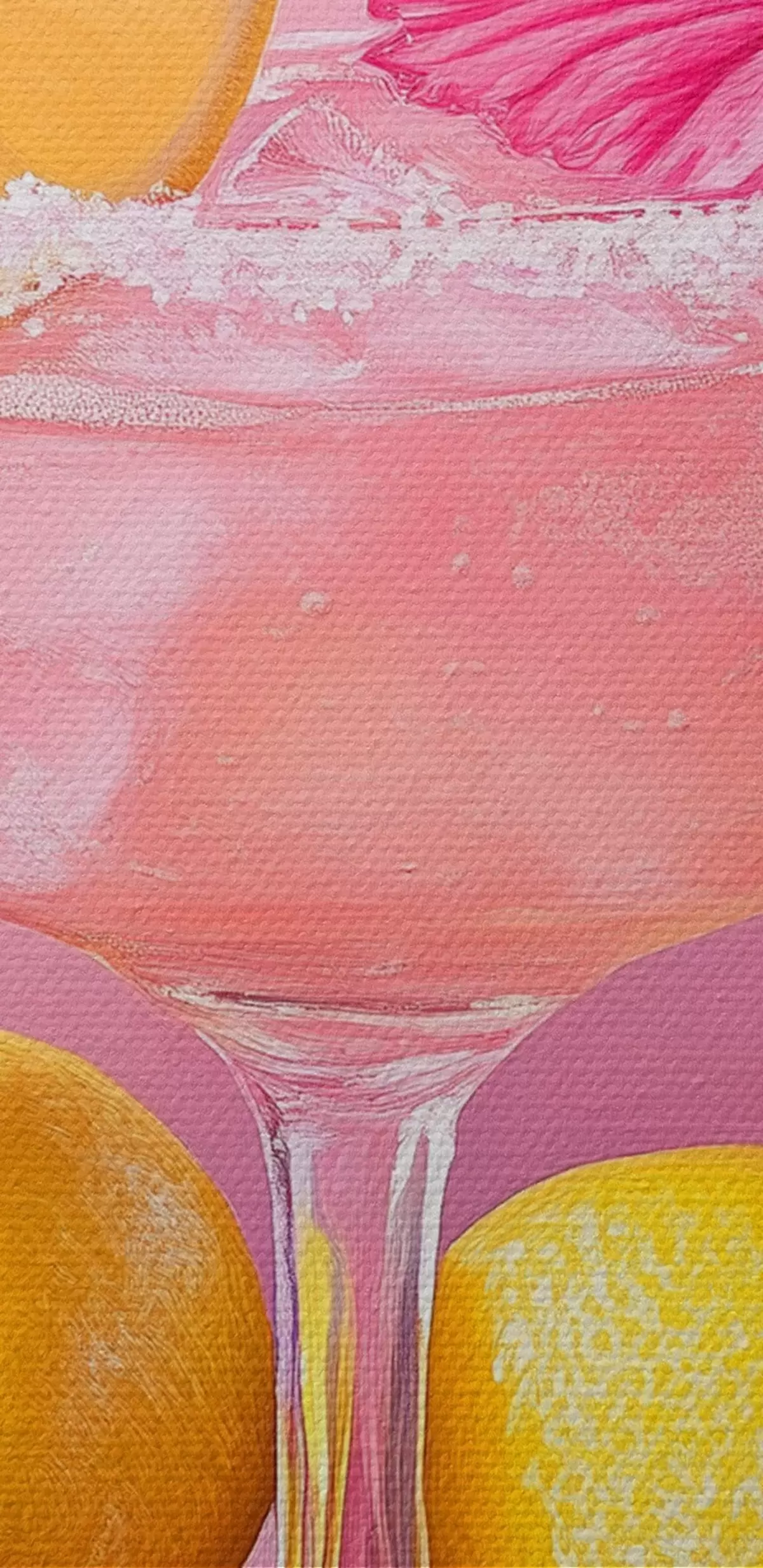 Apaļas gleznas Vasaras kokteilis ar ziediem un citroniem, rozā krāsas, akvareļu stilā r43895