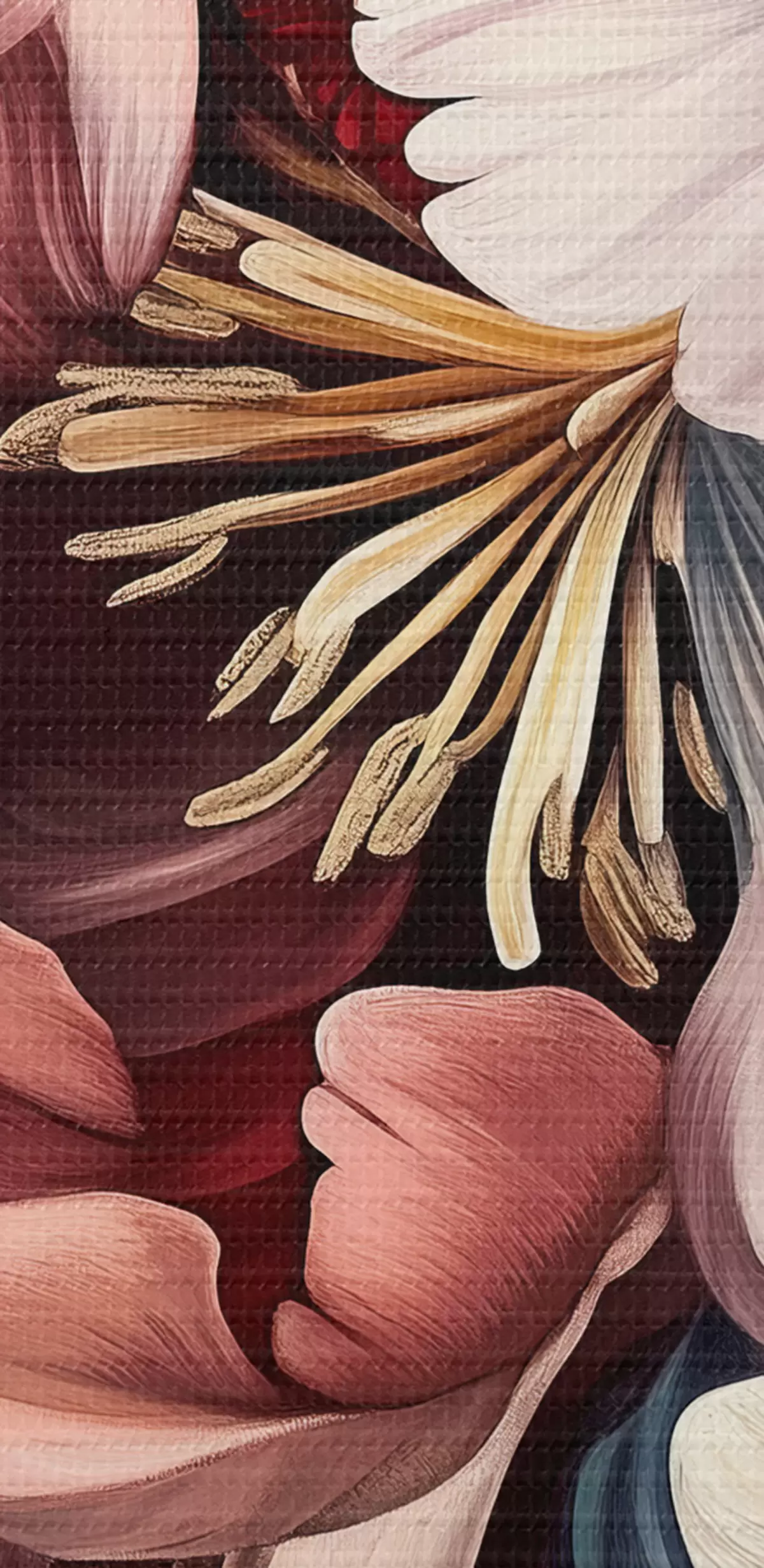 Smalkais diegu pinums uz šī audekla atgādina profesionālu mākslinieku audeklu virsmu.