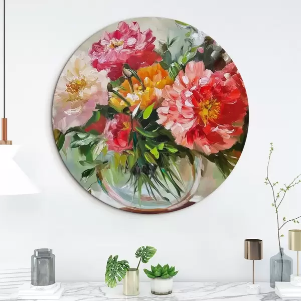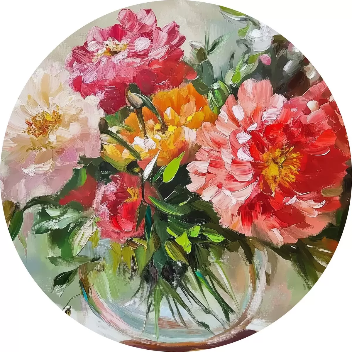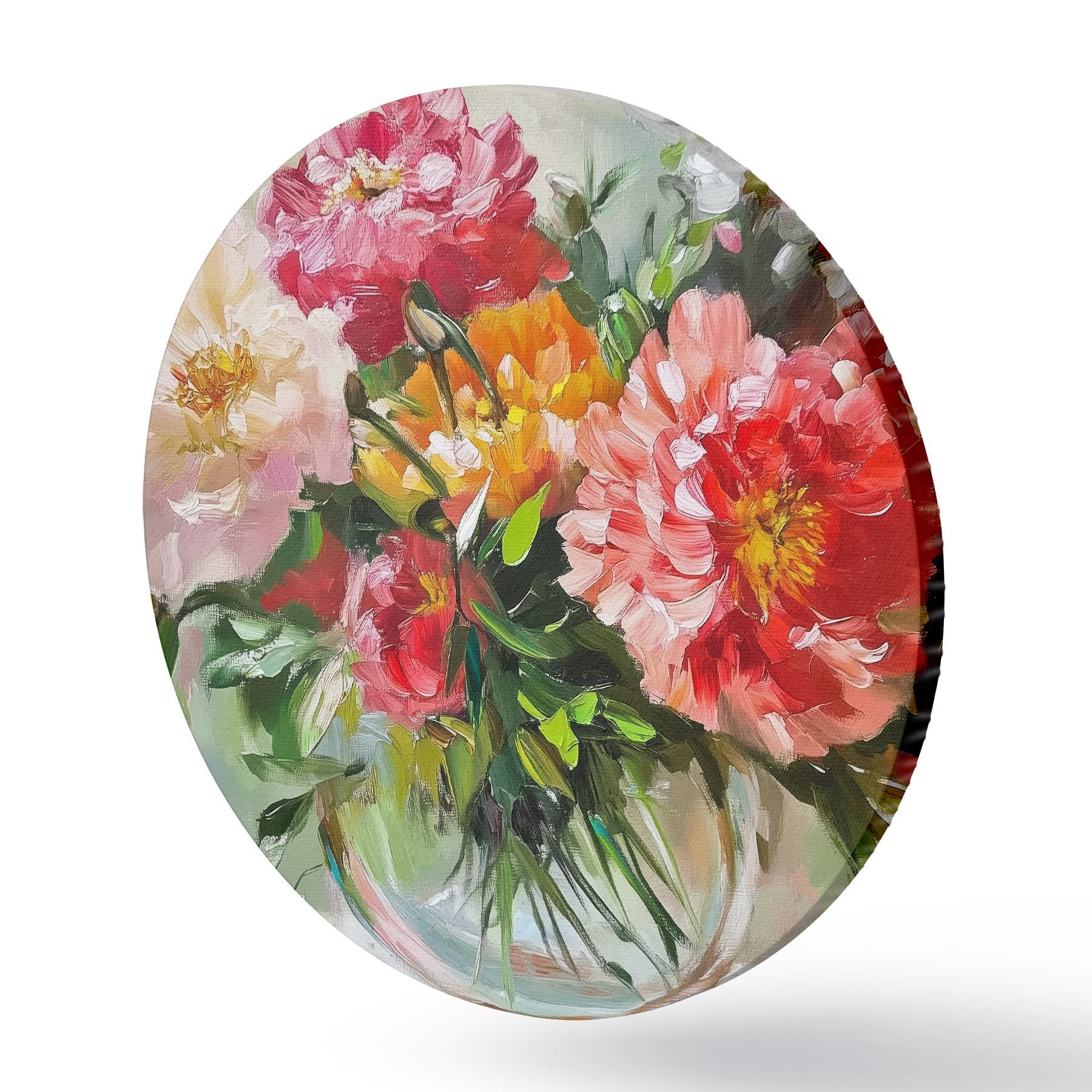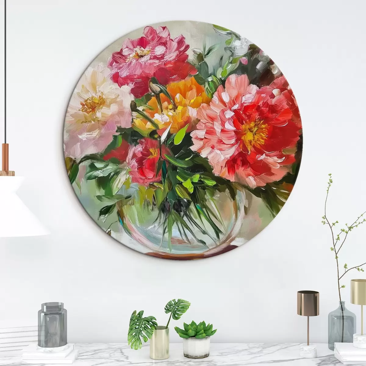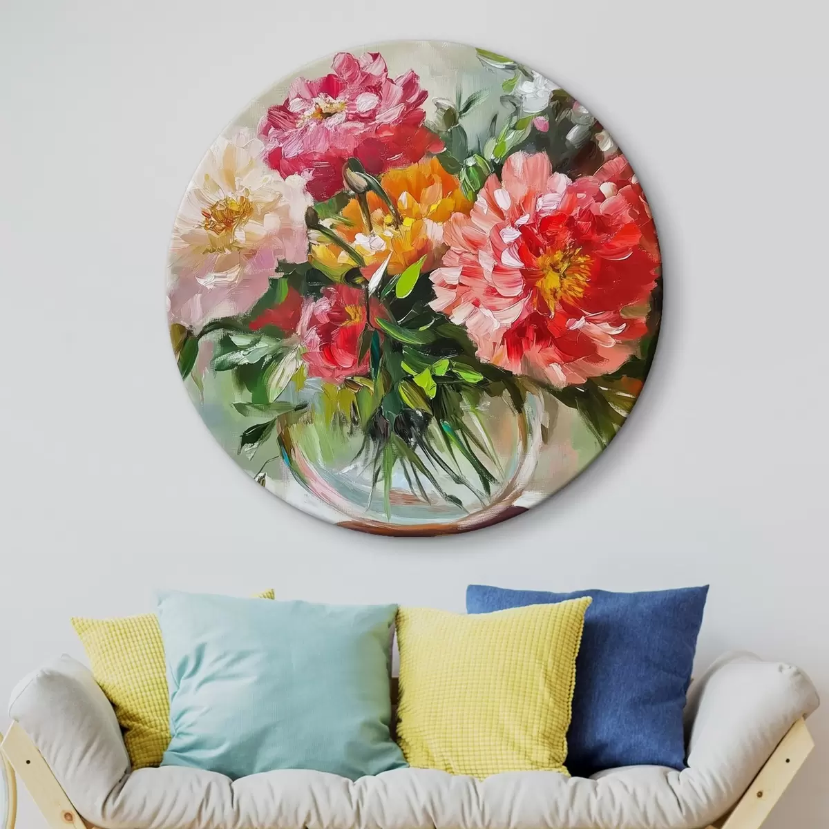 Apaļas gleznas Lieli spilgti ziedi vāzē r43907