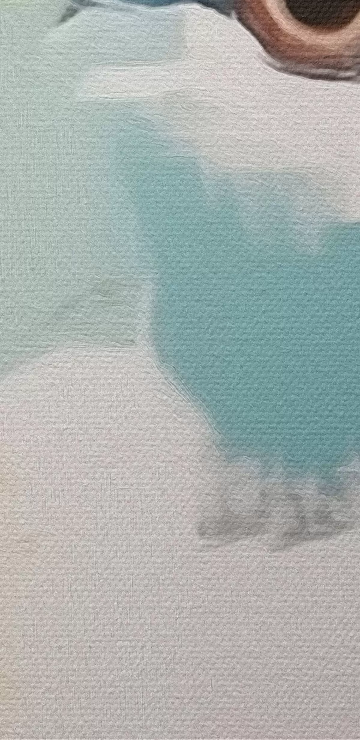 Smalkais diegu pinums uz šī audekla atgādina profesionālu mākslinieku audeklu virsmu.