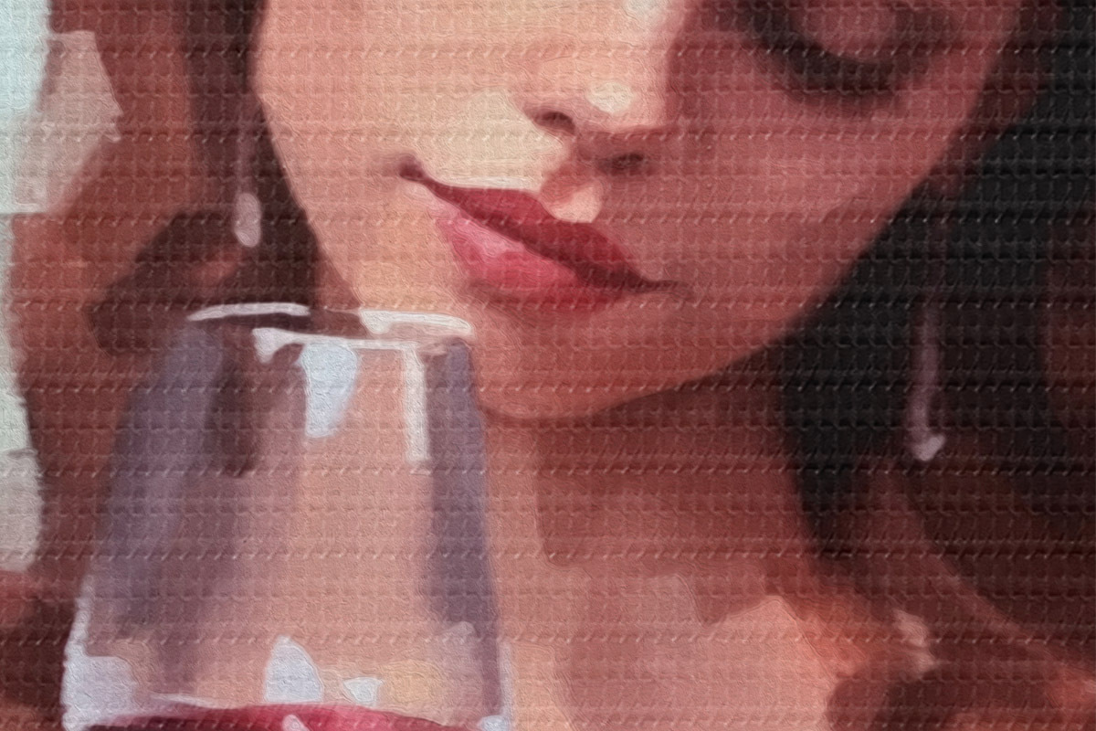 Smalkais diegu pinums uz šī audekla atgādina profesionālu mākslinieku audeklu virsmu.