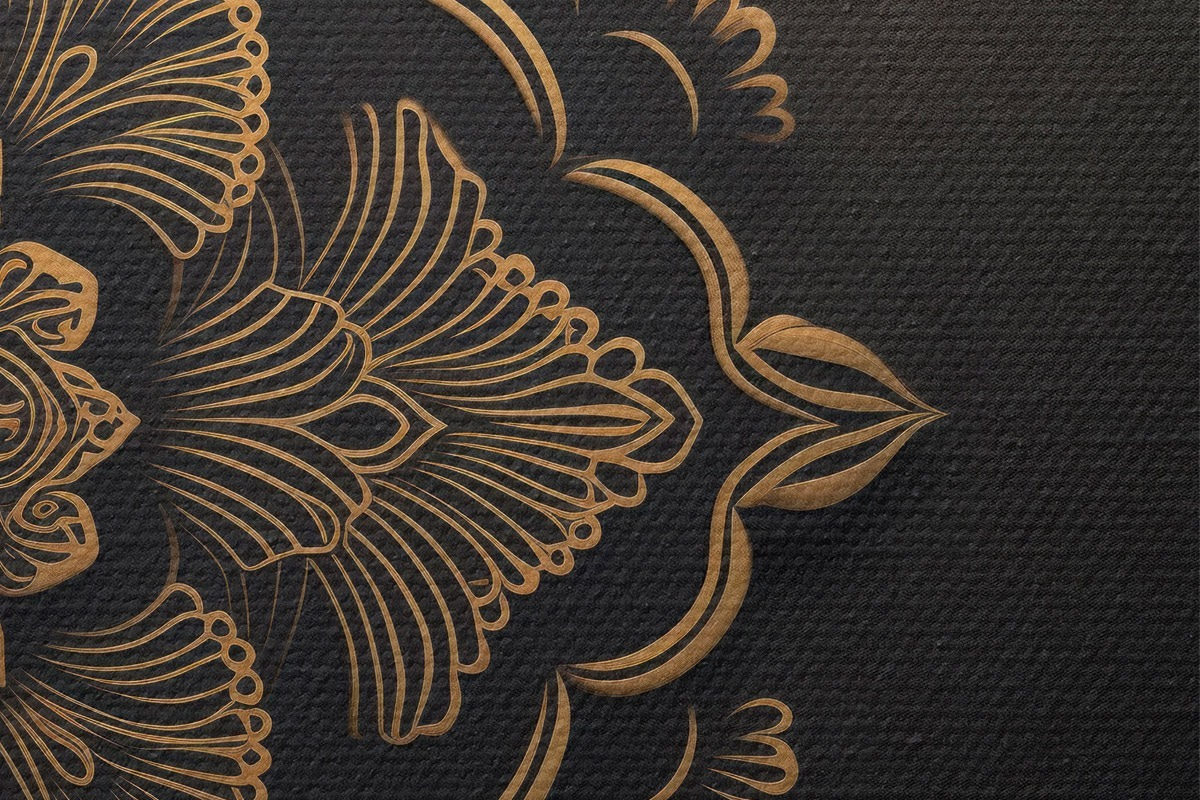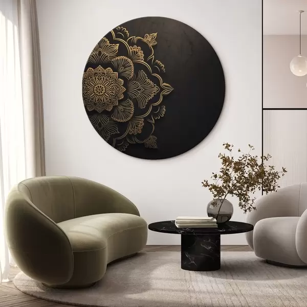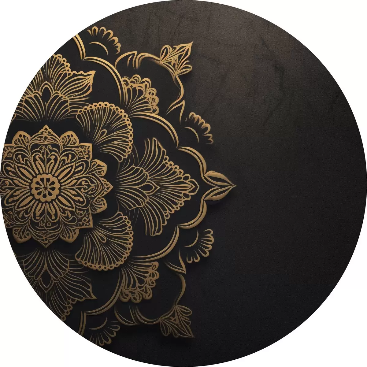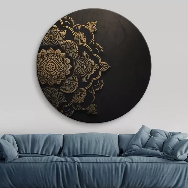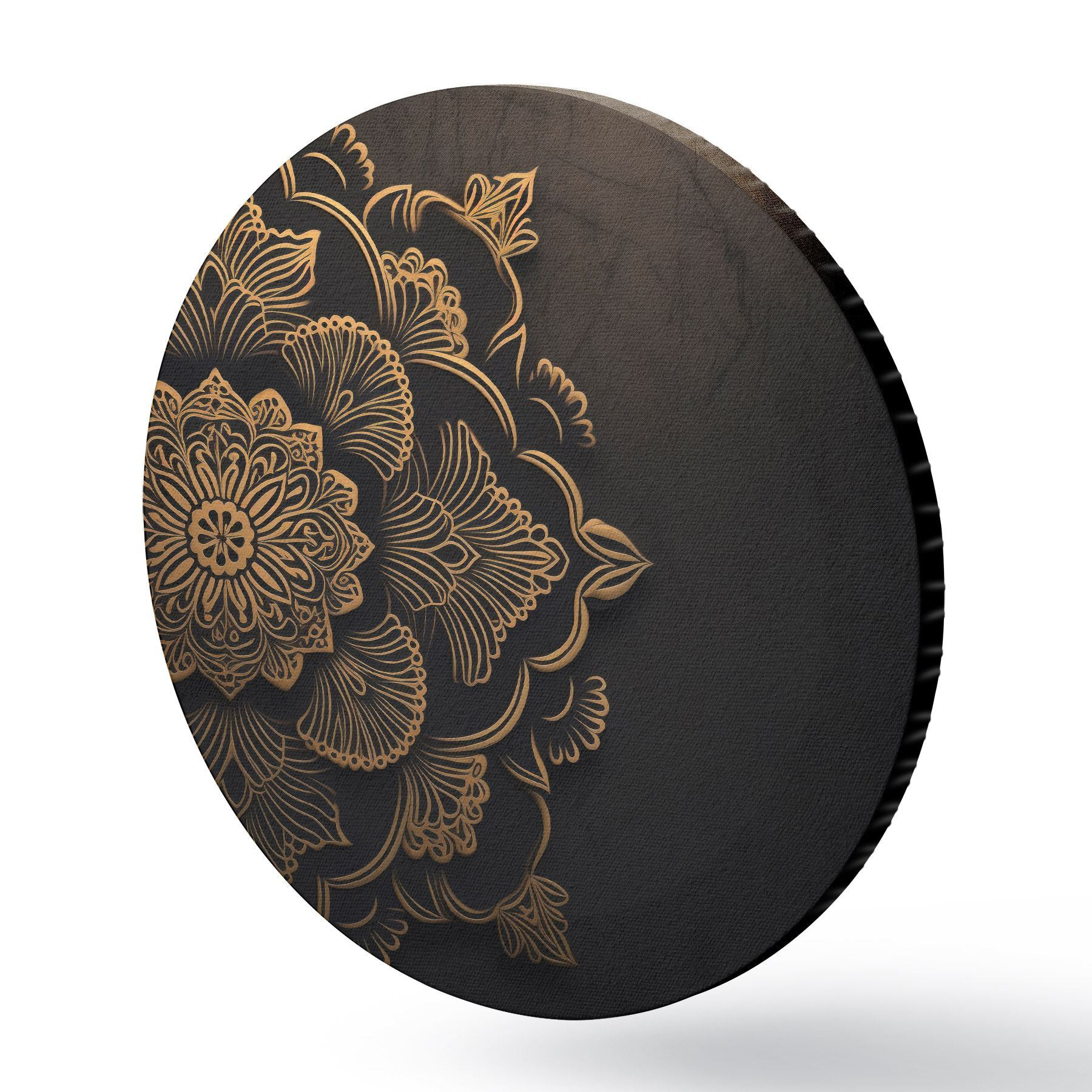 Apaļas gleznas Dzelteni raksti uz melna fona r43943