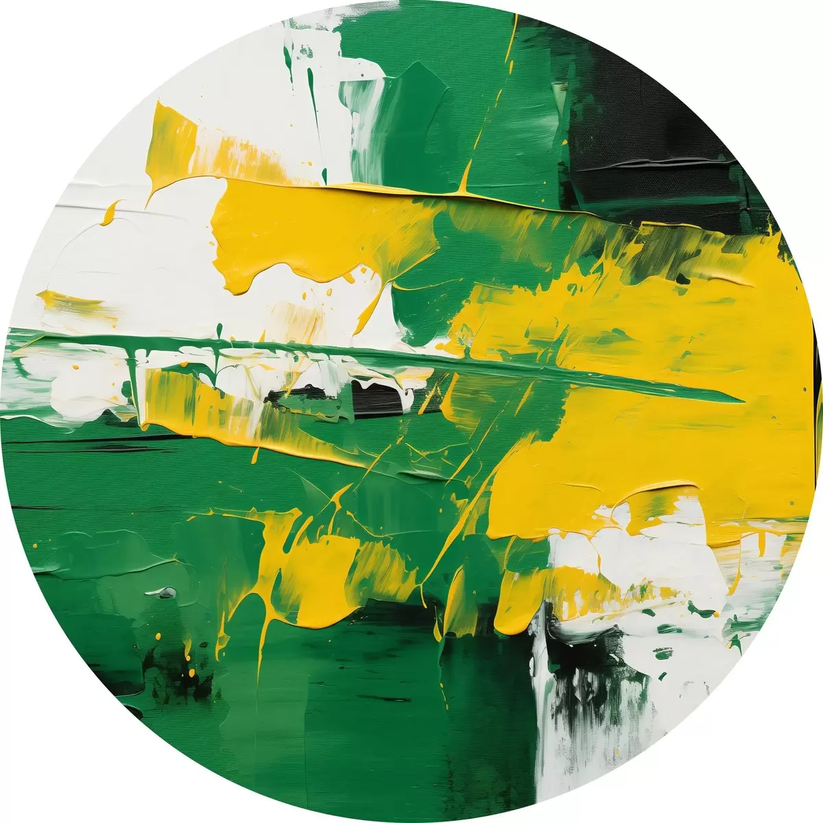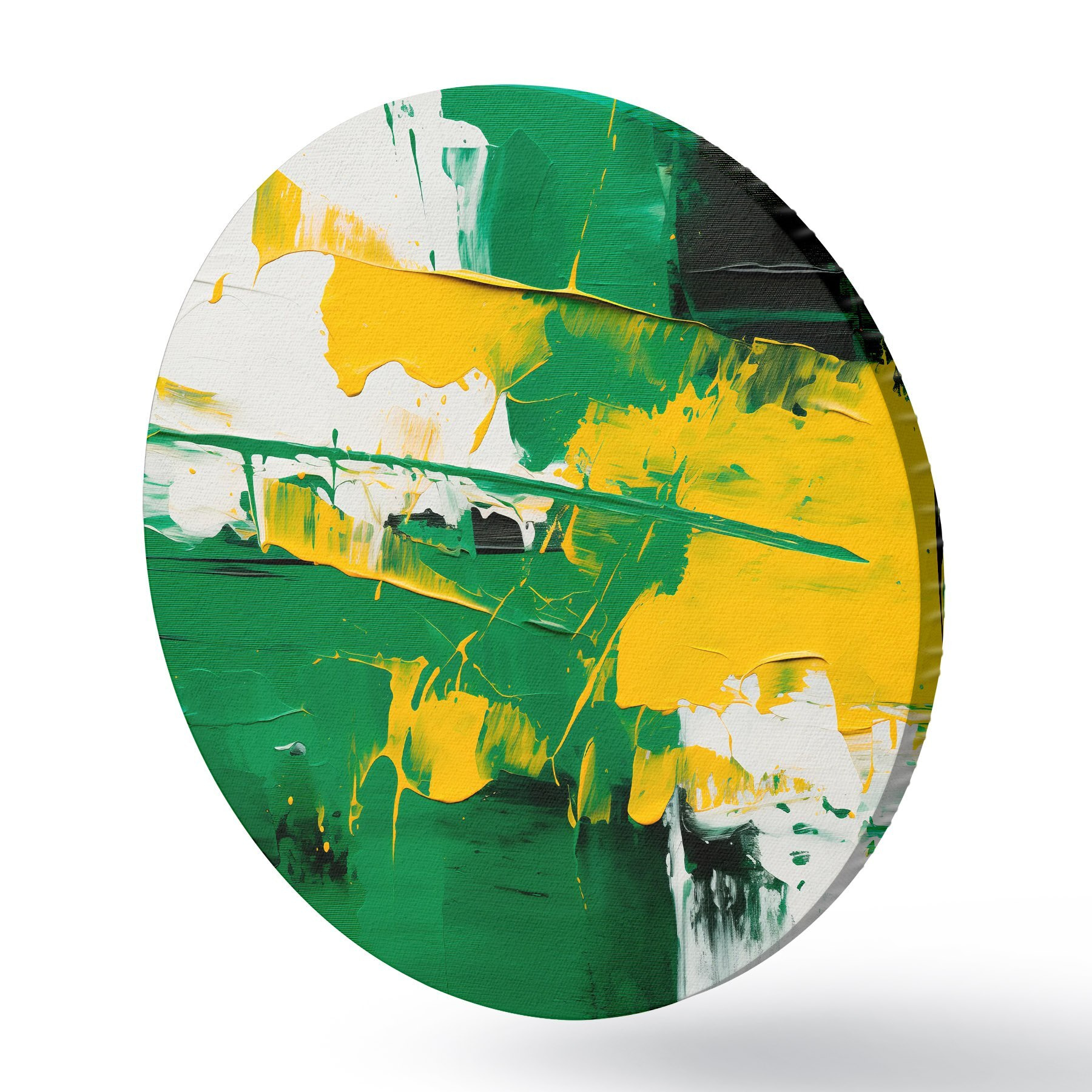 Apaļas gleznas Abstraktā eļļas glezna baltā, zaļā un dzeltenā krāsā eļļas gleznošanas stilā r43944