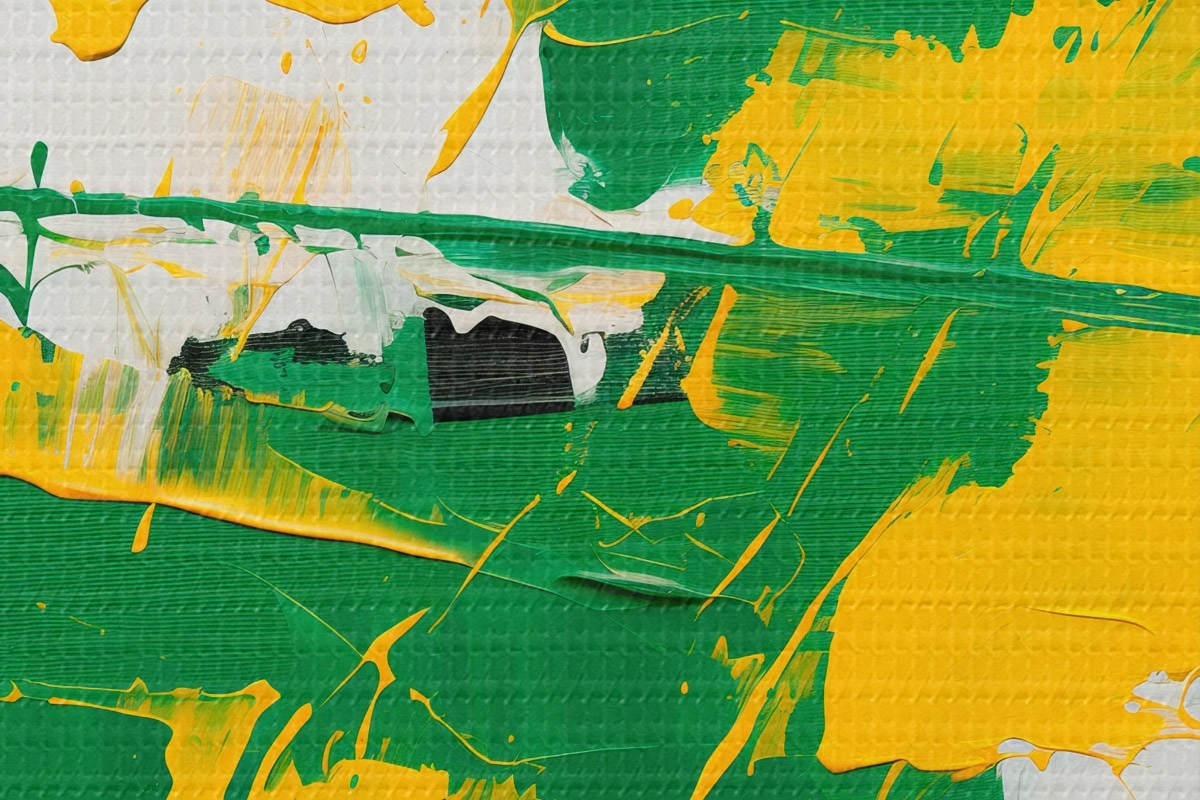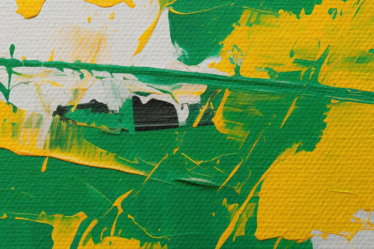 Attēls Abstraktā eļļas glezna baltā, zaļā un dzeltenā krāsā eļļas gleznošanas stilā Nr r43944