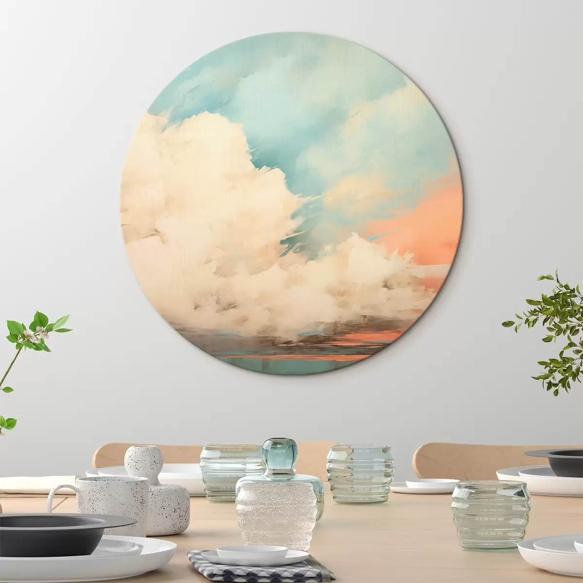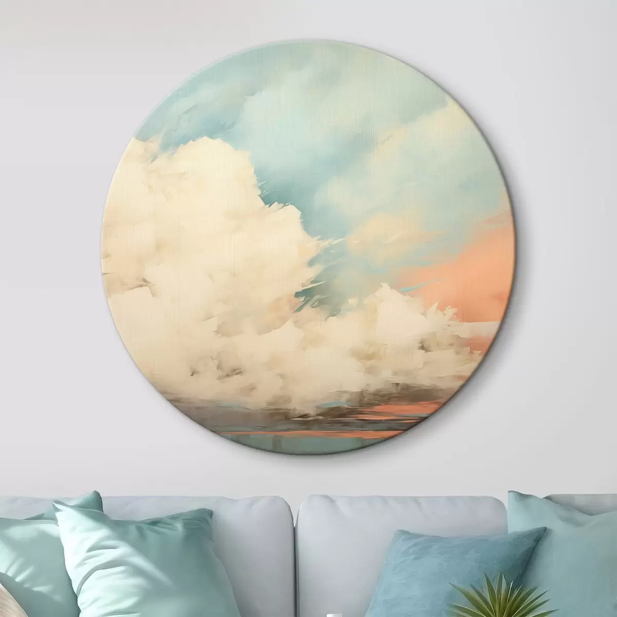 Apaļas gleznas Abstrakta migla virs jūras akrila glezniecības stilā r43952