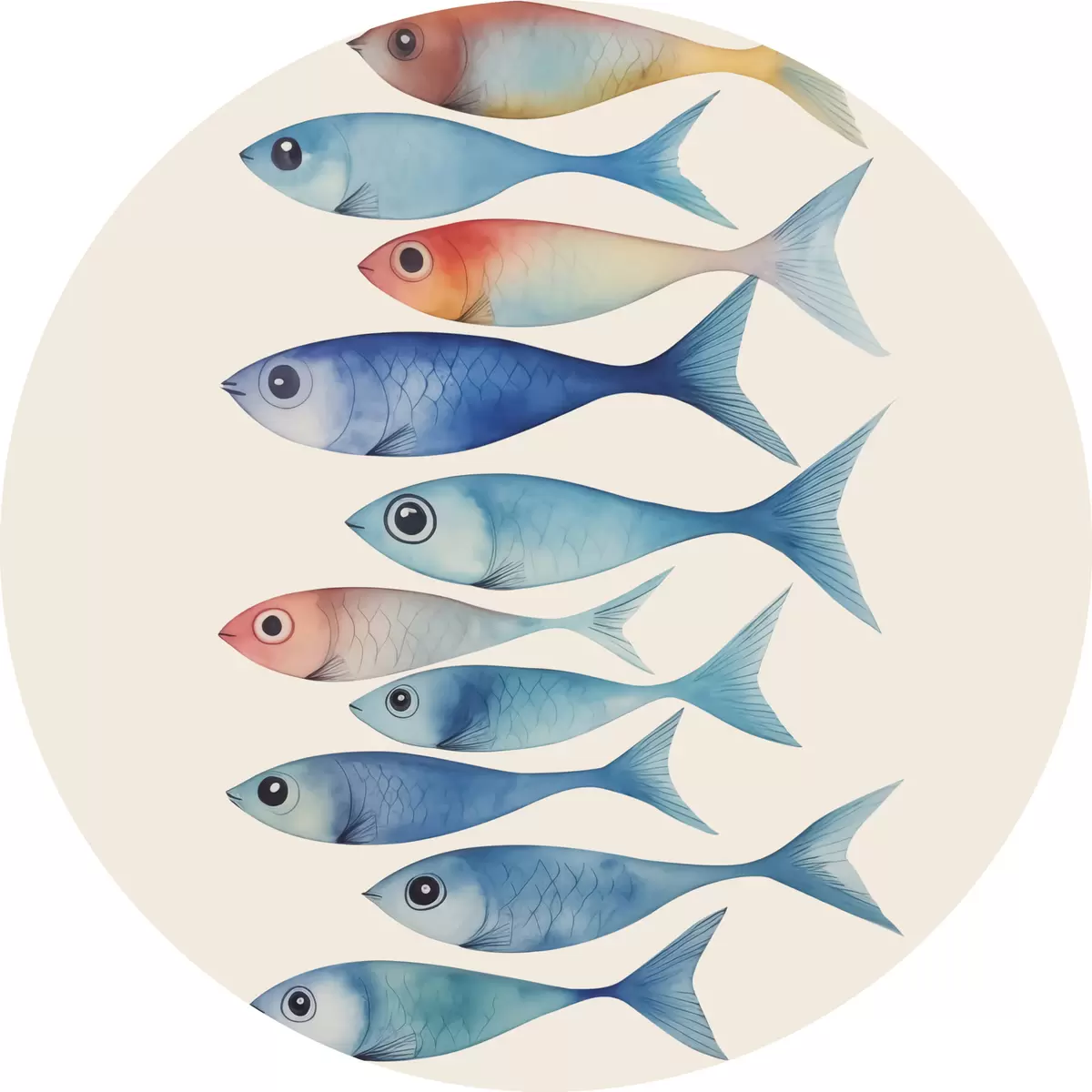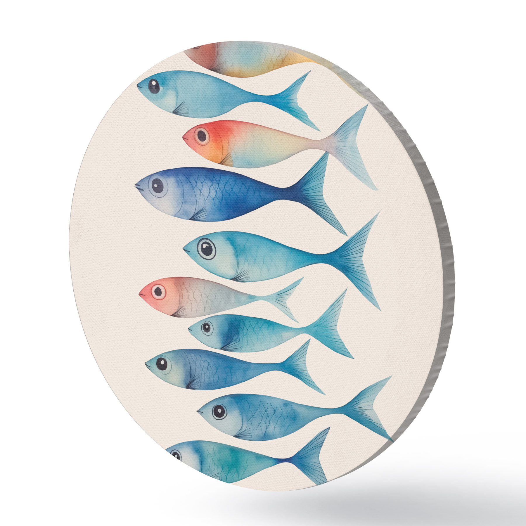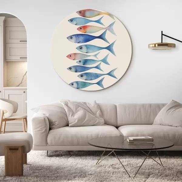 Apaļas gleznas Zivju minimālisma imitācija akvarelis r43960