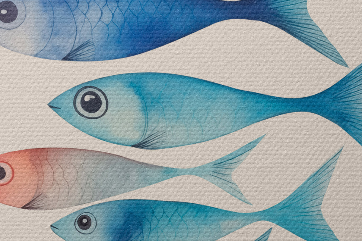 Attēls Zivju minimālisma imitācija akvarelis Nr r43960