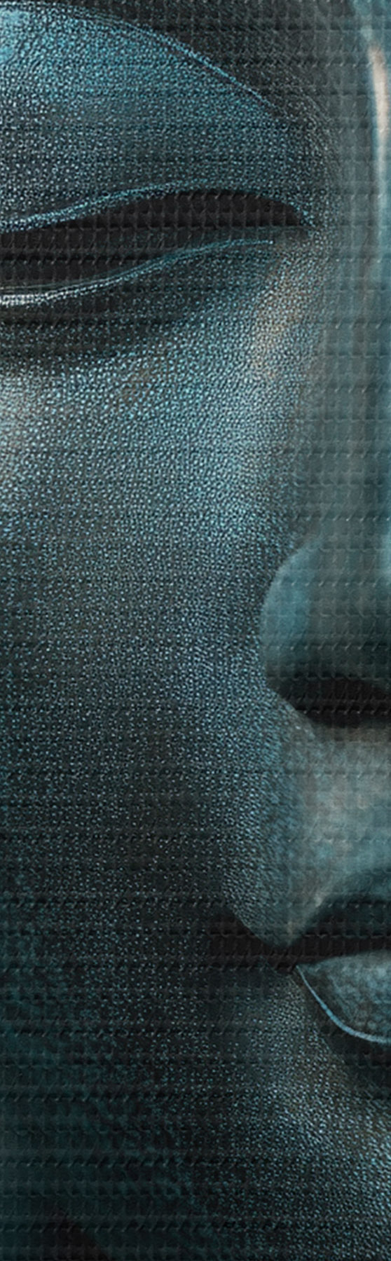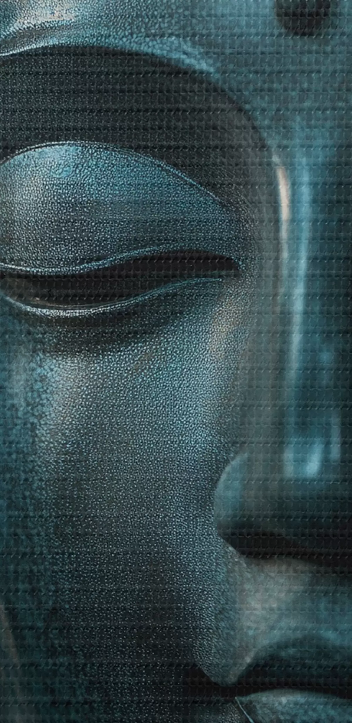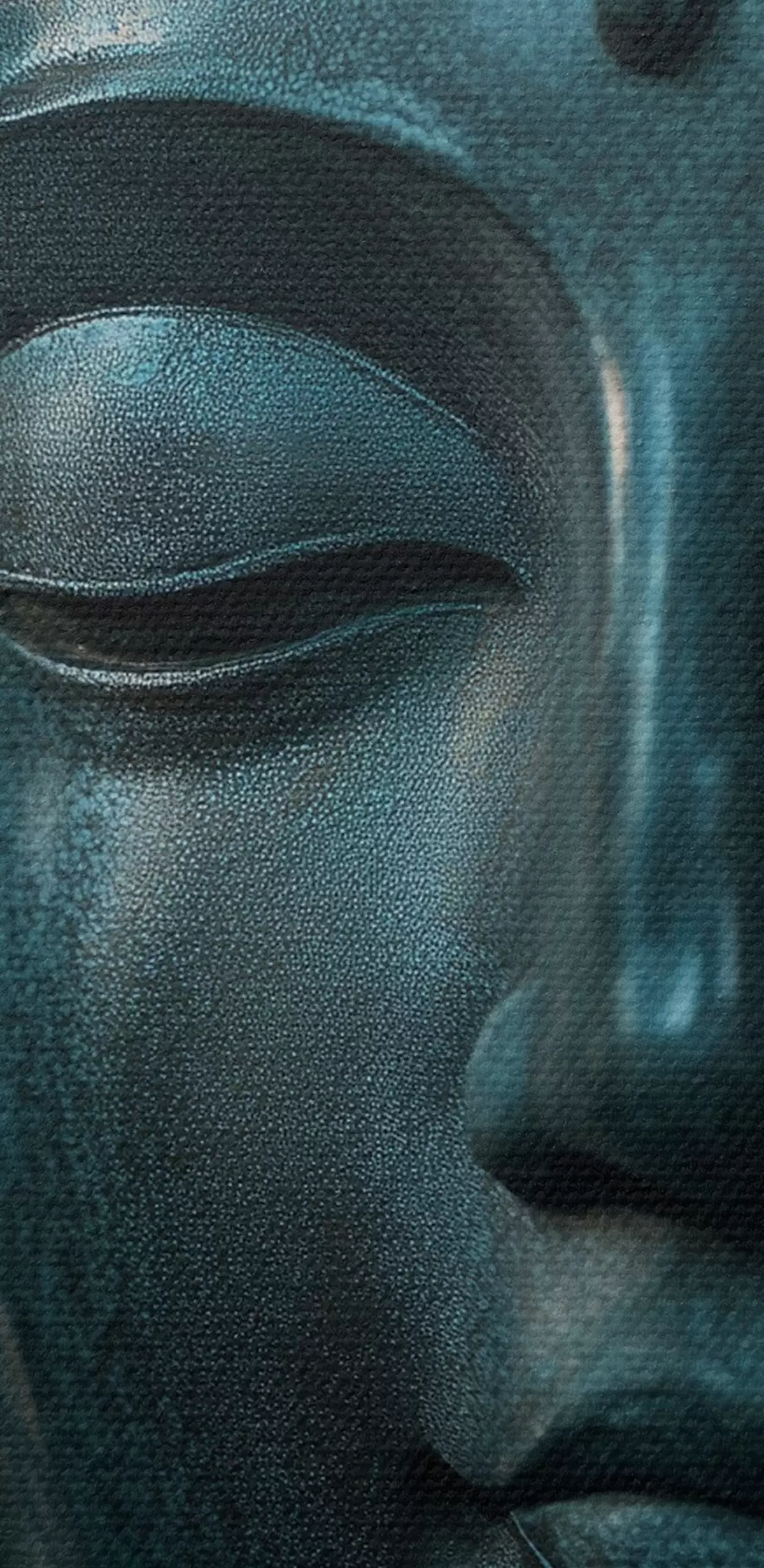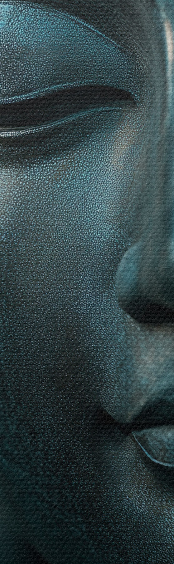 Apaļas gleznas Zaļais Buda tropu lapās, reālisms r44005