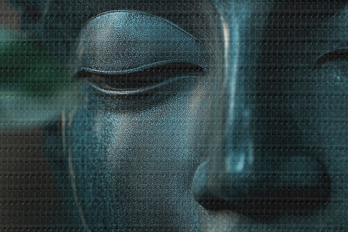 Attēls Zaļais Buda tropu lapās, reālisms Nr r44005
