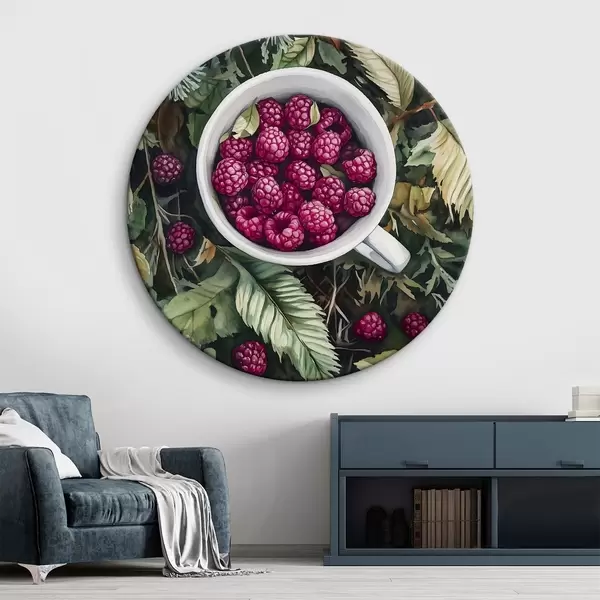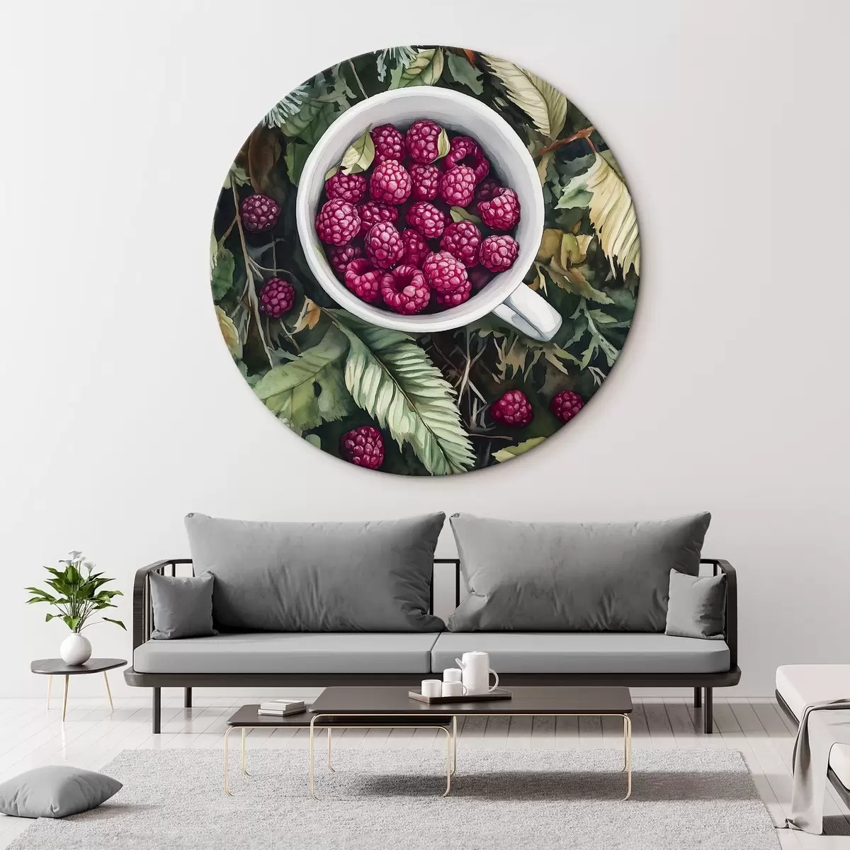 Apaļas gleznas Sulīgas avenes mežā, lauku, lapas, akvareļu stilā r44023
