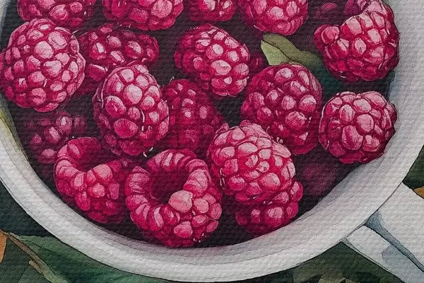 Attēls Sulīgas avenes mežā, lauku, lapas, akvareļu stilā Nr r44023