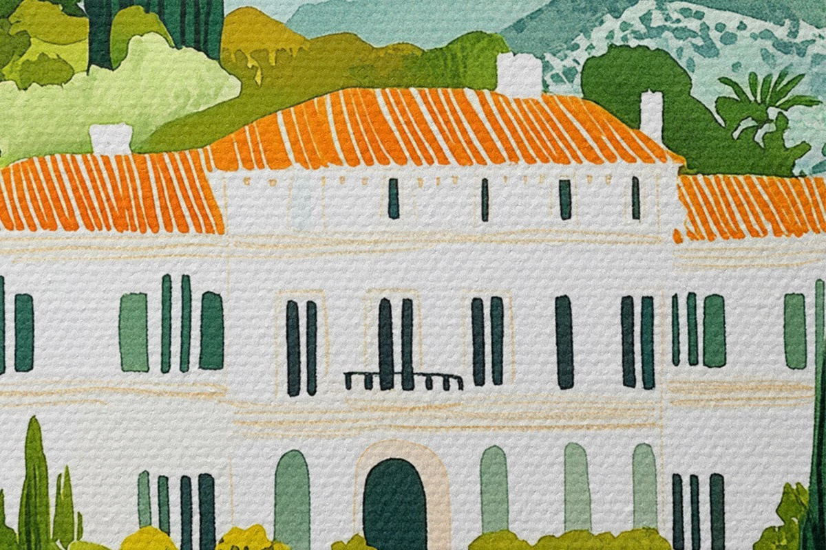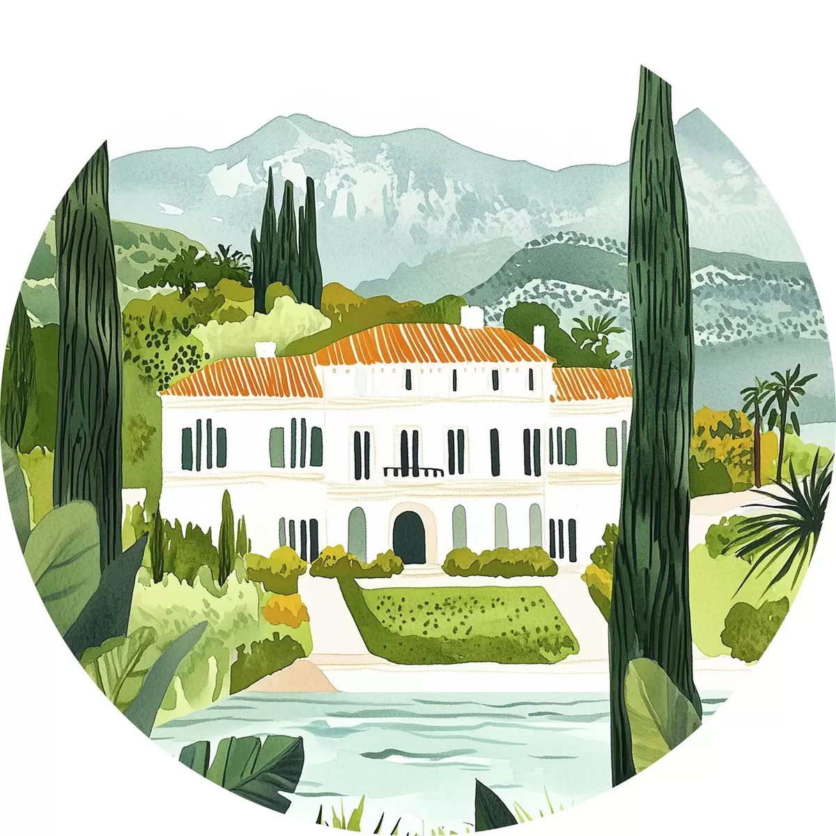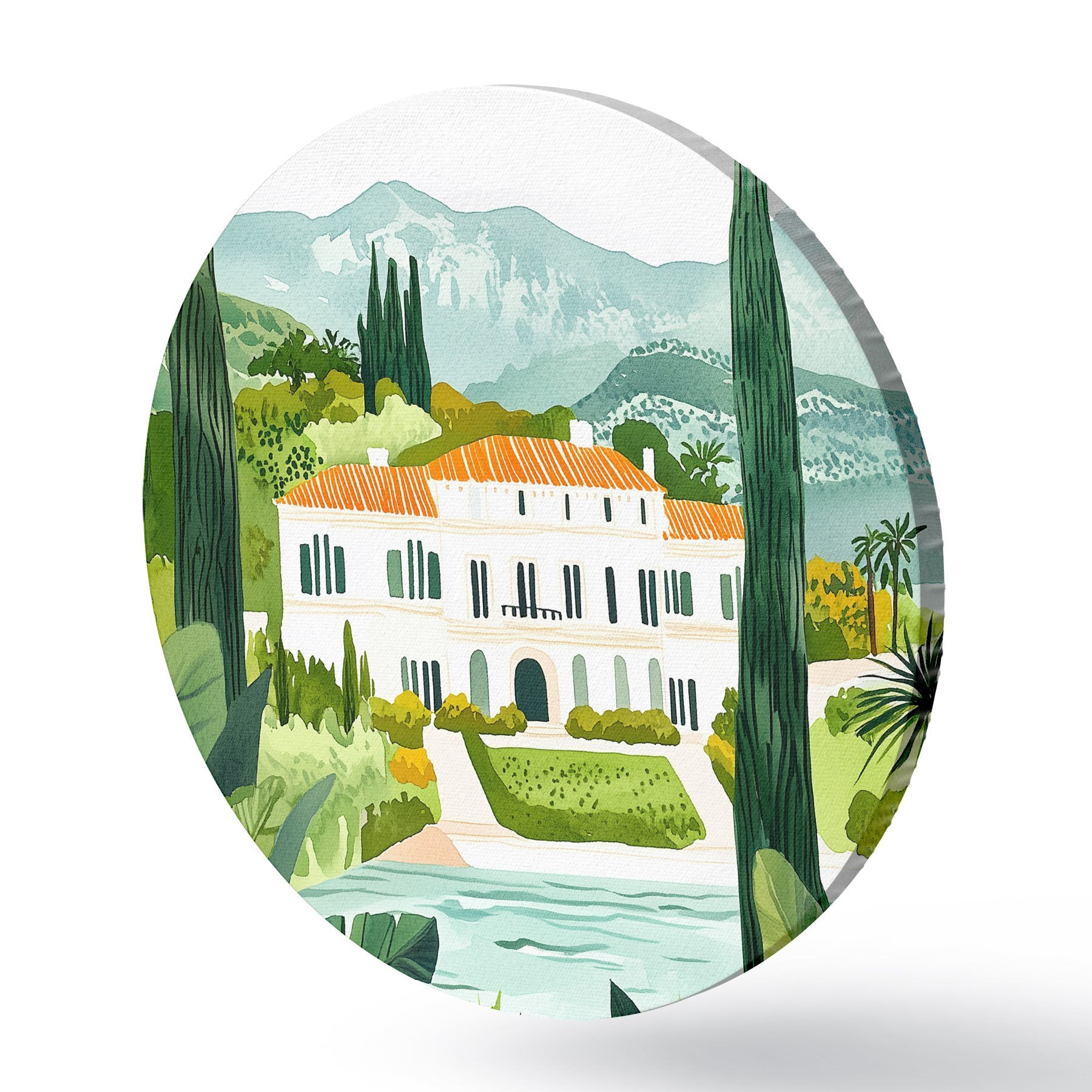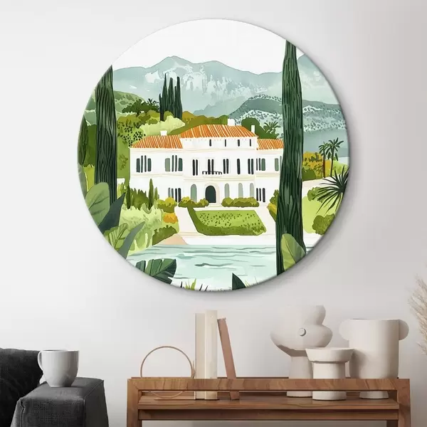 Apaļas gleznas Spānija, vasaras ainavas, citronkoki, arhitektūras, tropu ainavas r44026