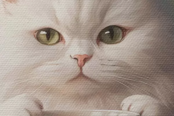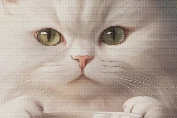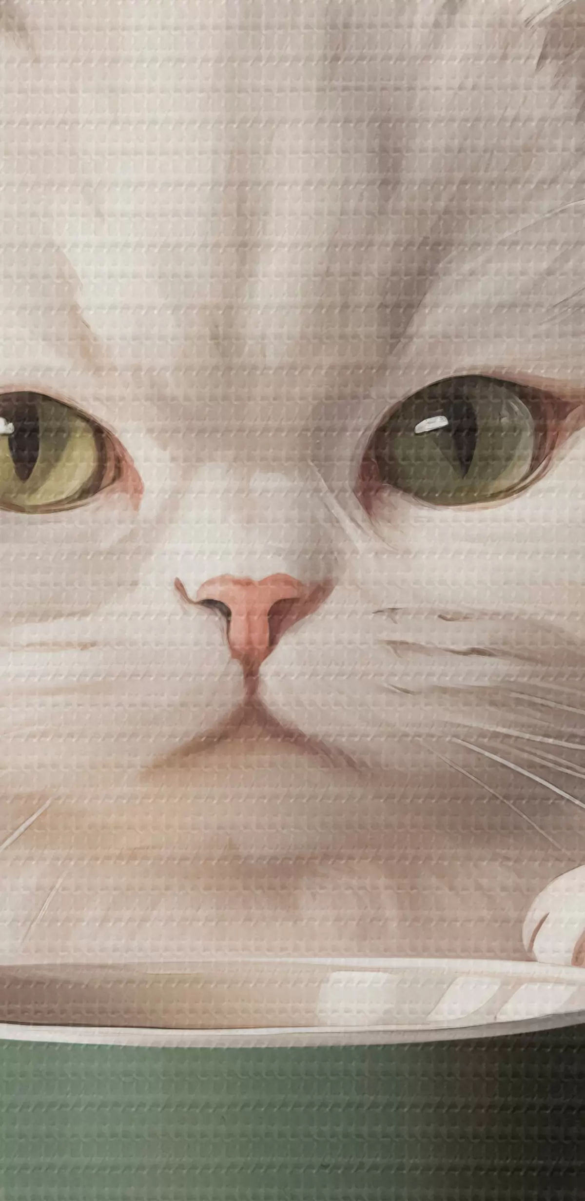 Attēls Balts kaķis ar zaļu kausu Nr r44032