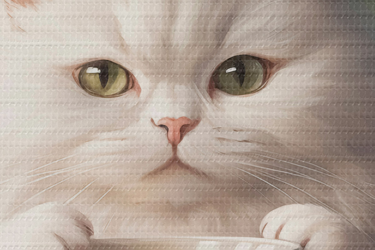 Smalkais diegu pinums uz šī audekla atgādina profesionālu mākslinieku audeklu virsmu.