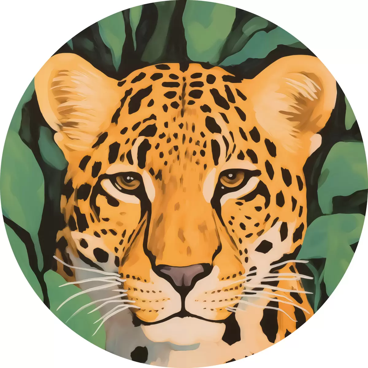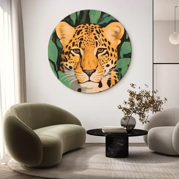 Apaļas gleznas Leopards lapotnē r44053