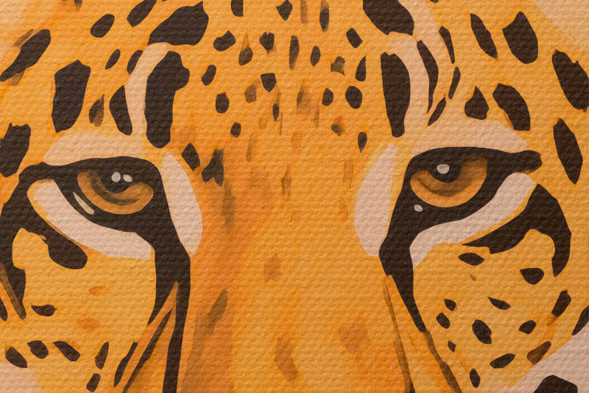 Smalkais diegu pinums uz šī audekla atgādina profesionālu mākslinieku audeklu virsmu.