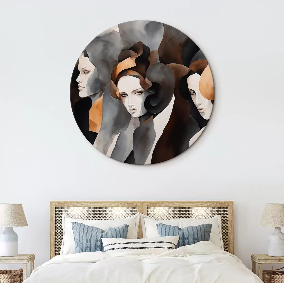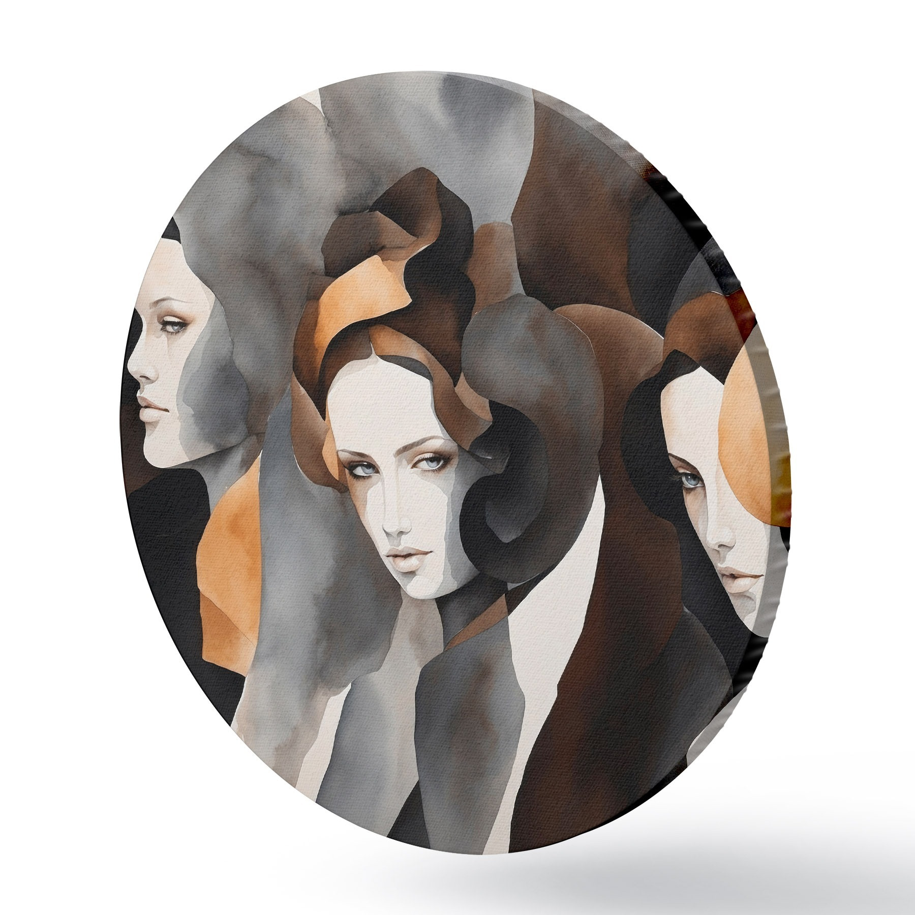 Apaļas gleznas Abstraktā glezniecība ar sieviešu sejām r44060