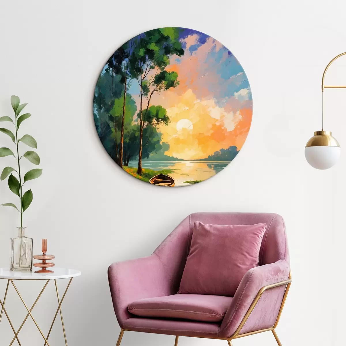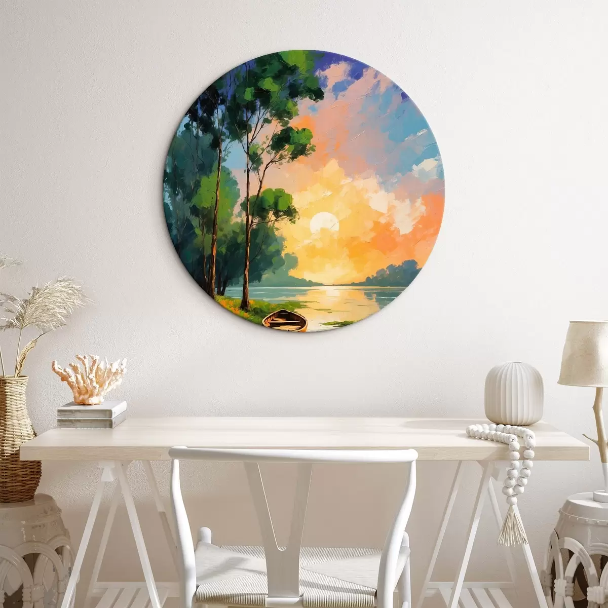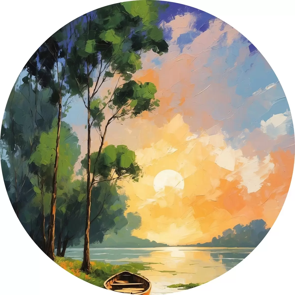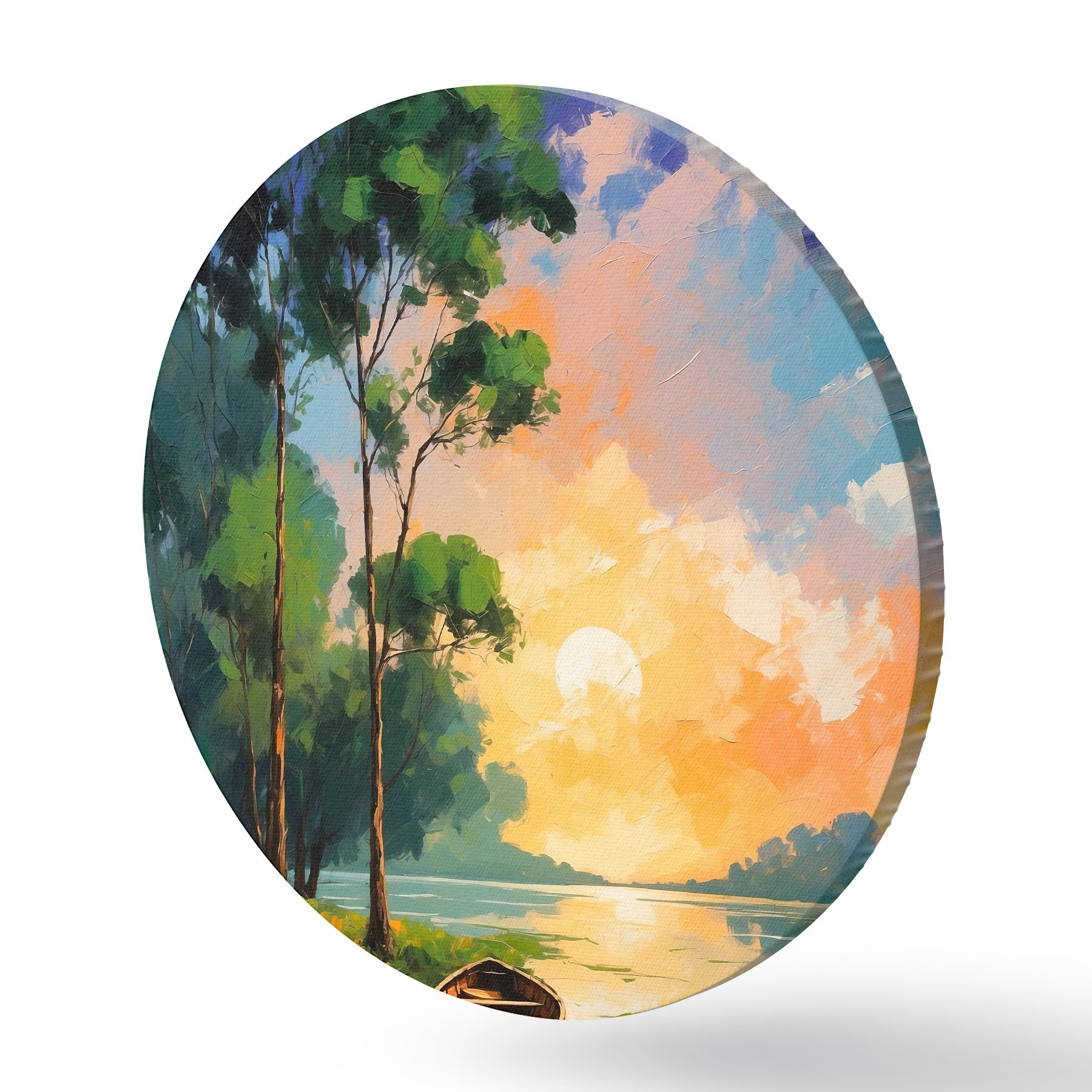 Apaļas gleznas Laiva netālu no salas akrila glezniecības stilā r44065