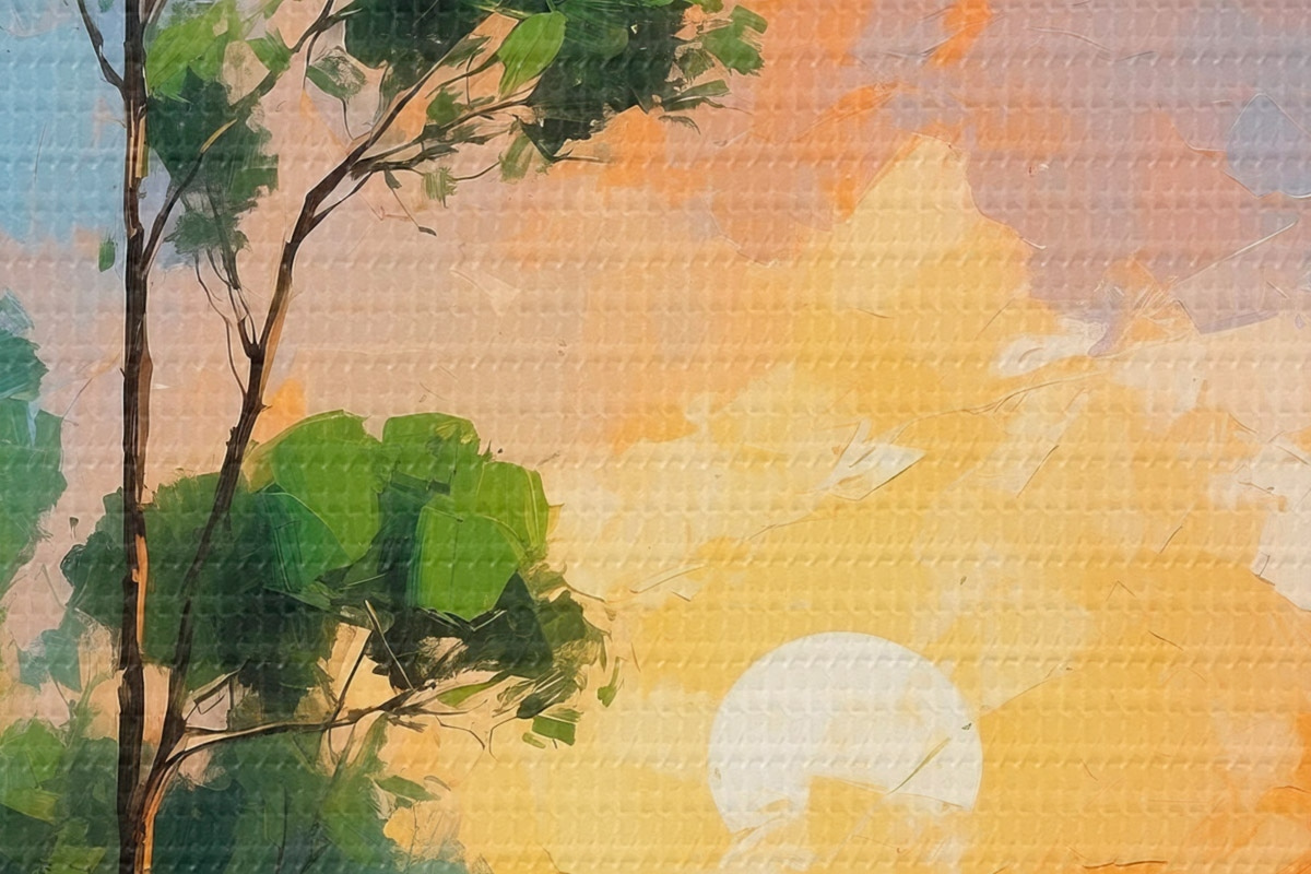 Smalkais diegu pinums uz šī audekla atgādina profesionālu mākslinieku audeklu virsmu.