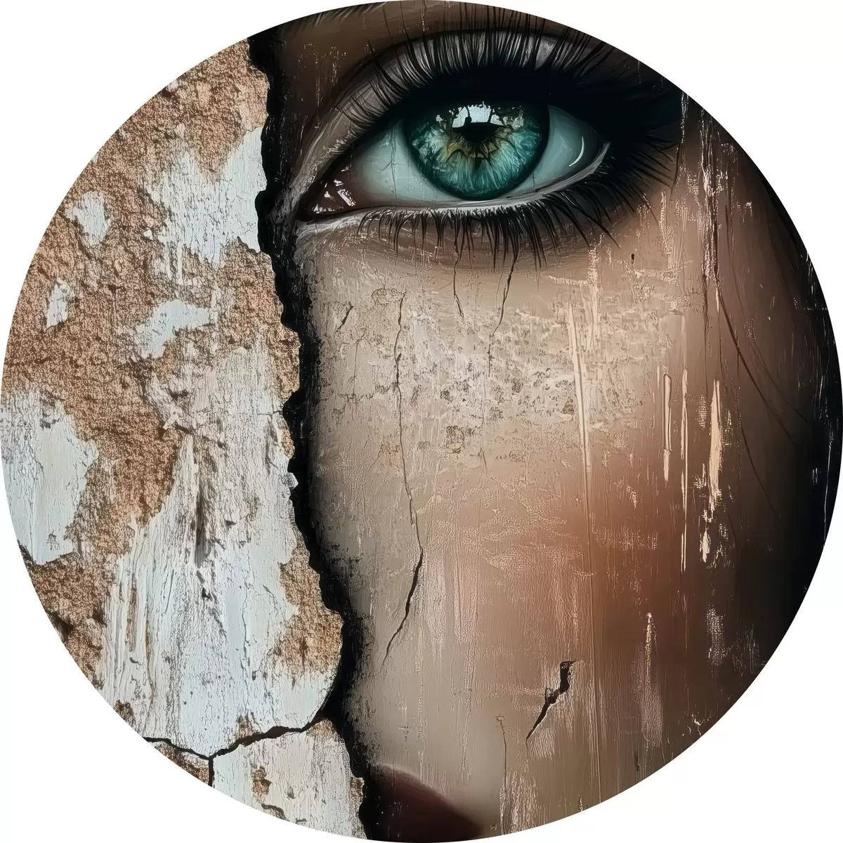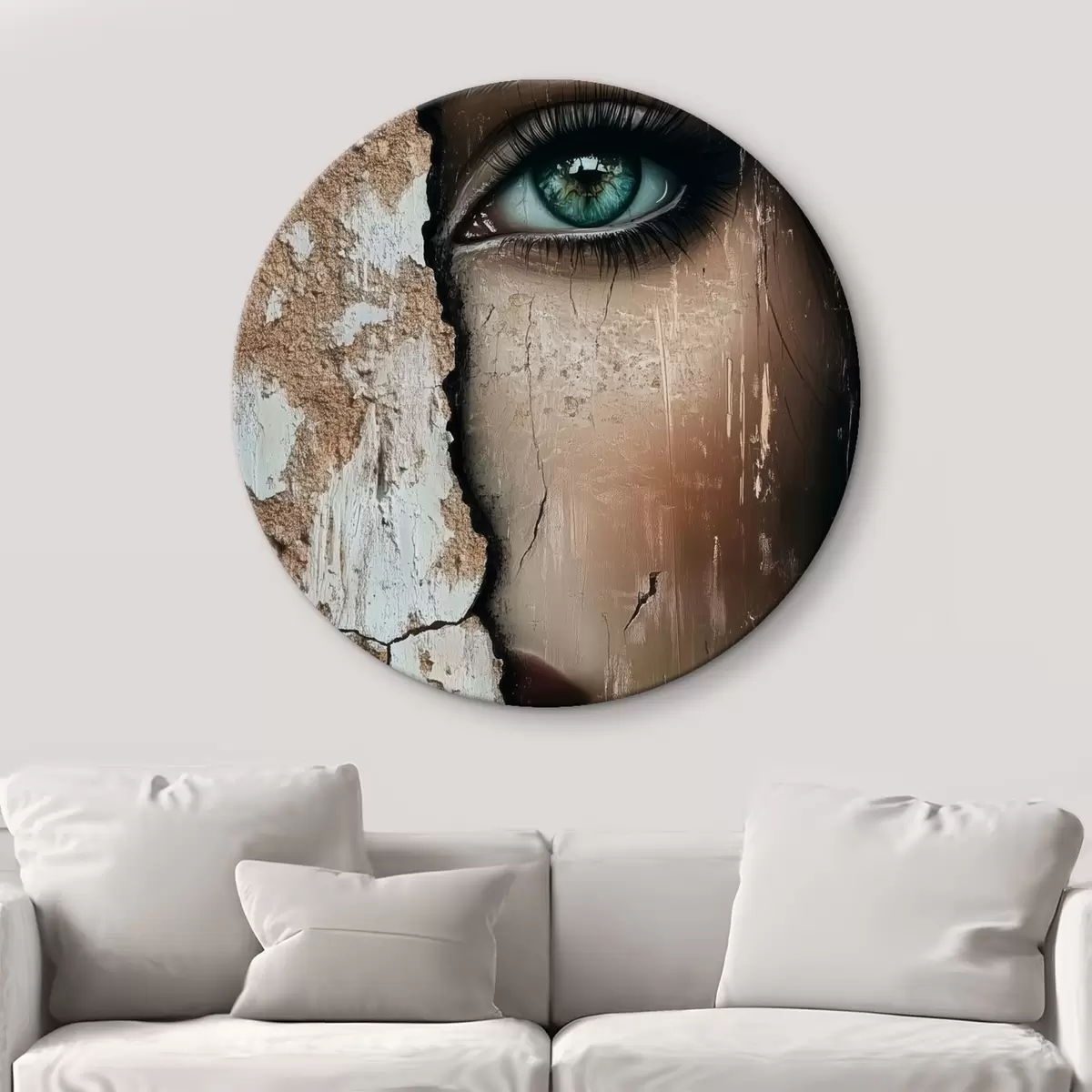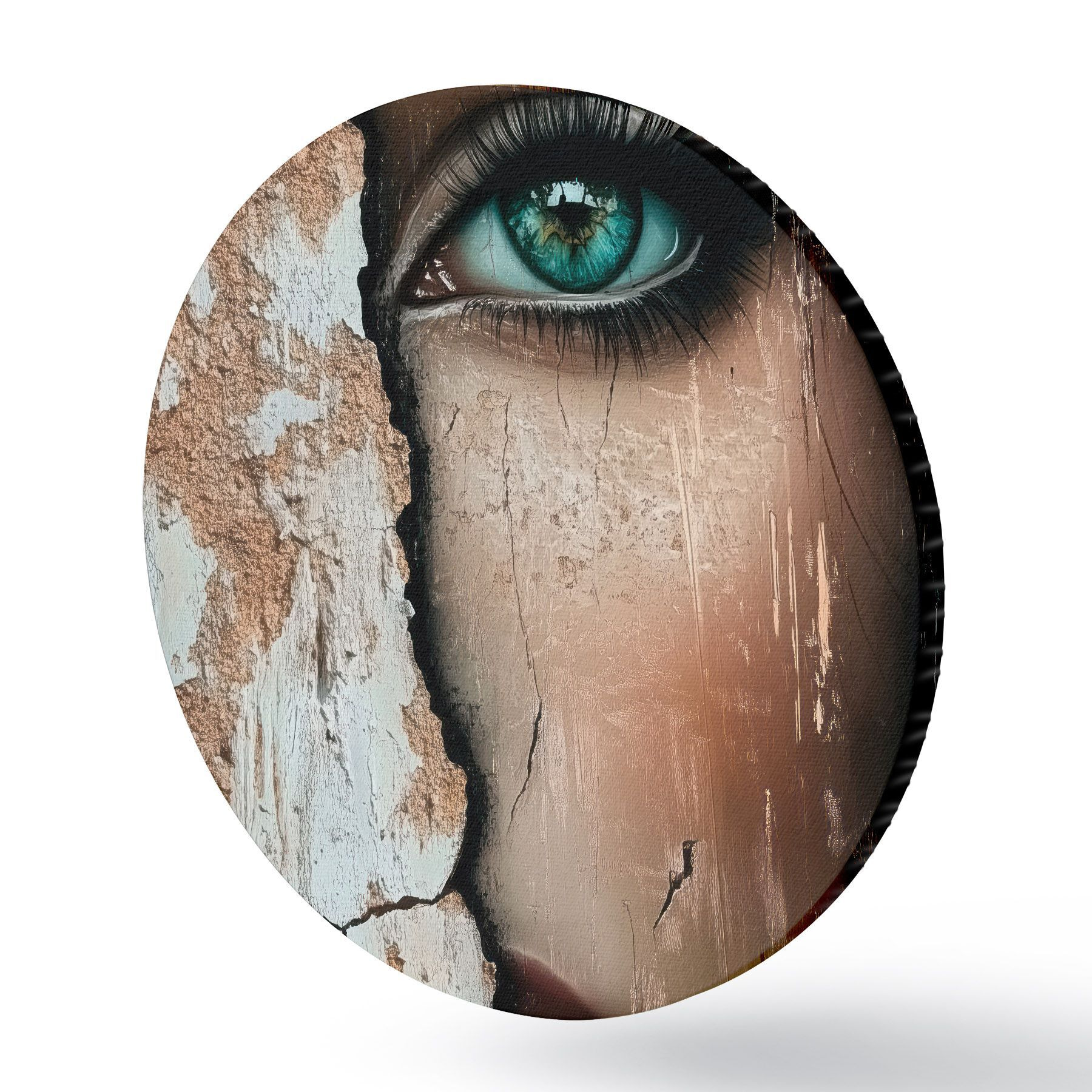 Apaļas gleznas Meitenes seja aiz vecas sienas r44069