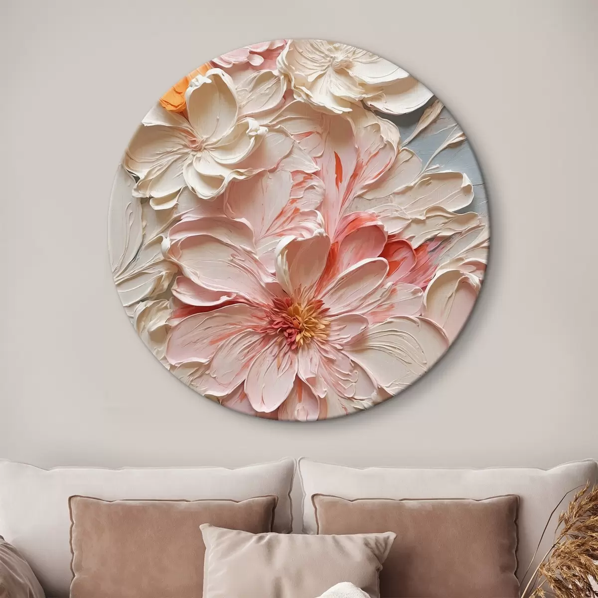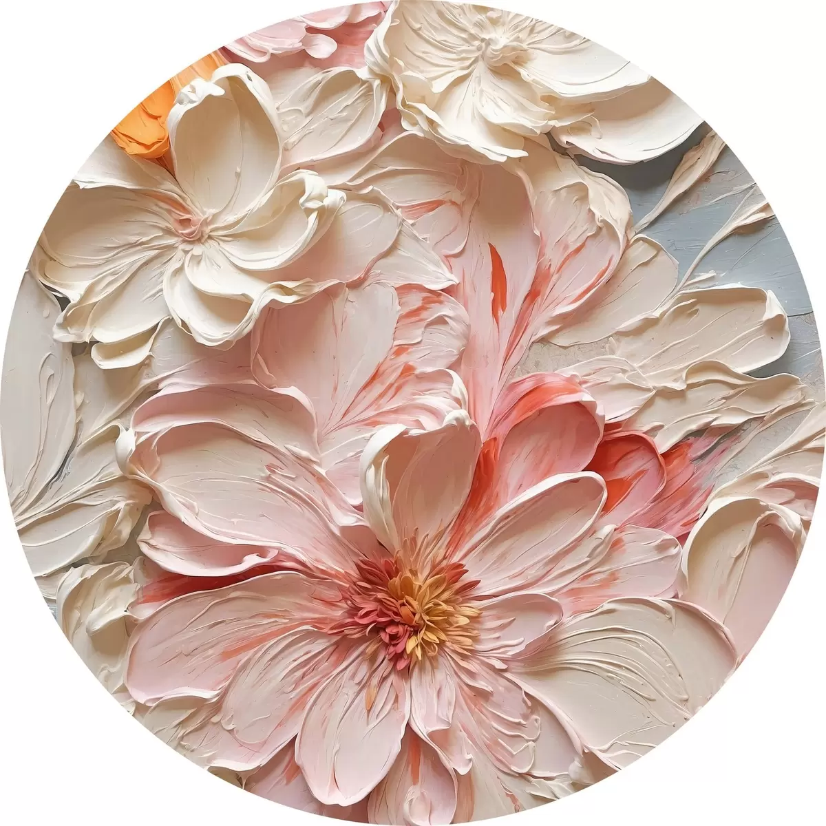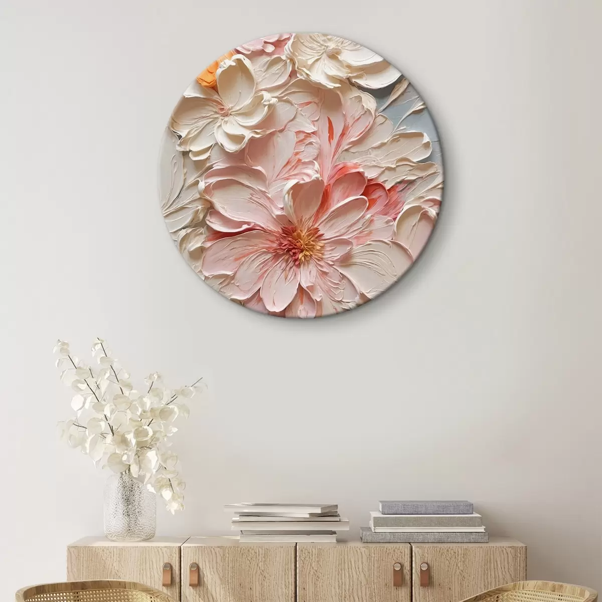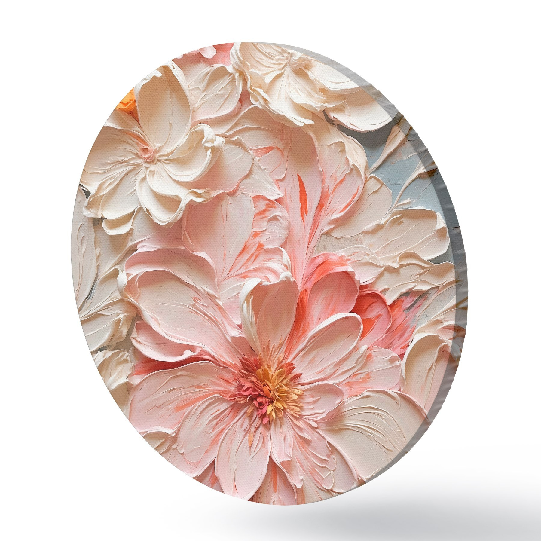 Apaļas gleznas Balti un rozā ziedi uz zila fona eļļas glezna stilā r44074