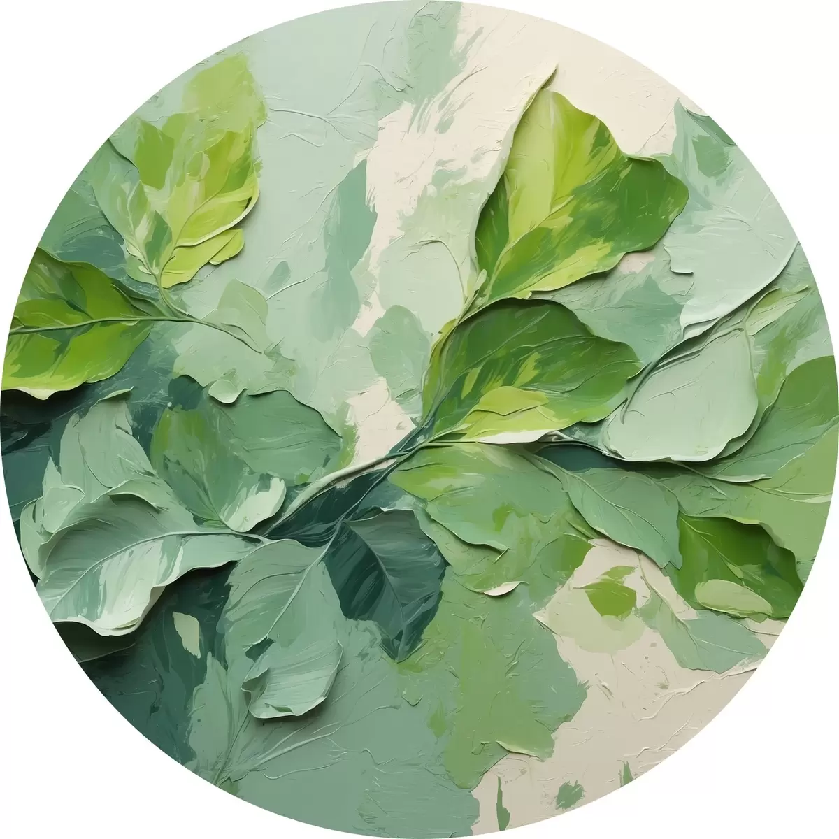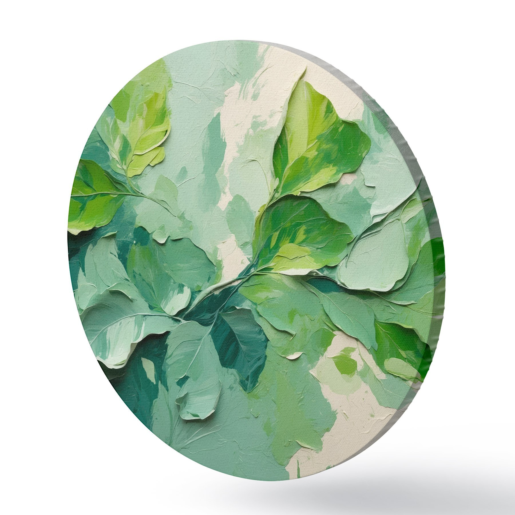 Apaļas gleznas Zariņš ar zaļām lapām eļļas gleznošanas stilā r44075