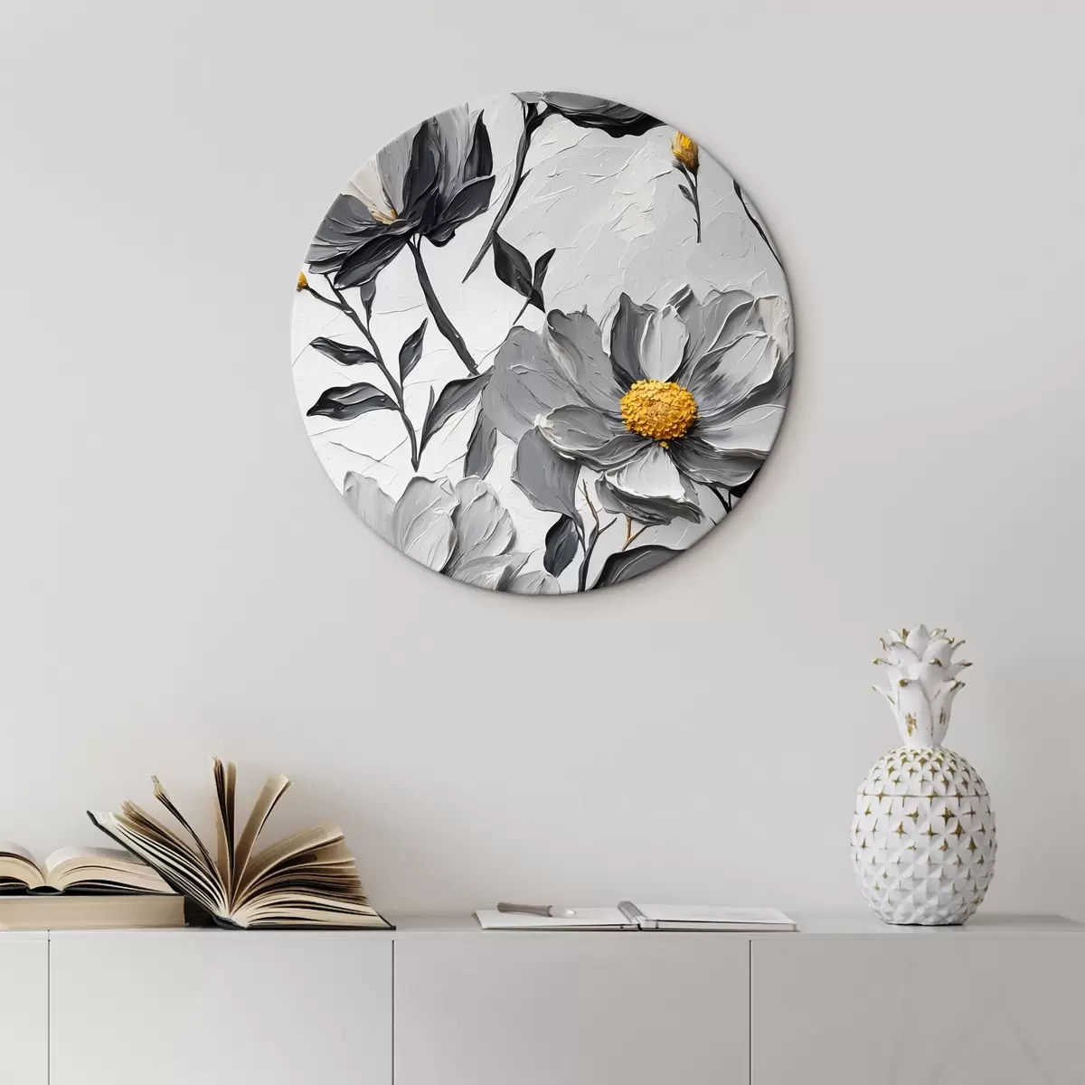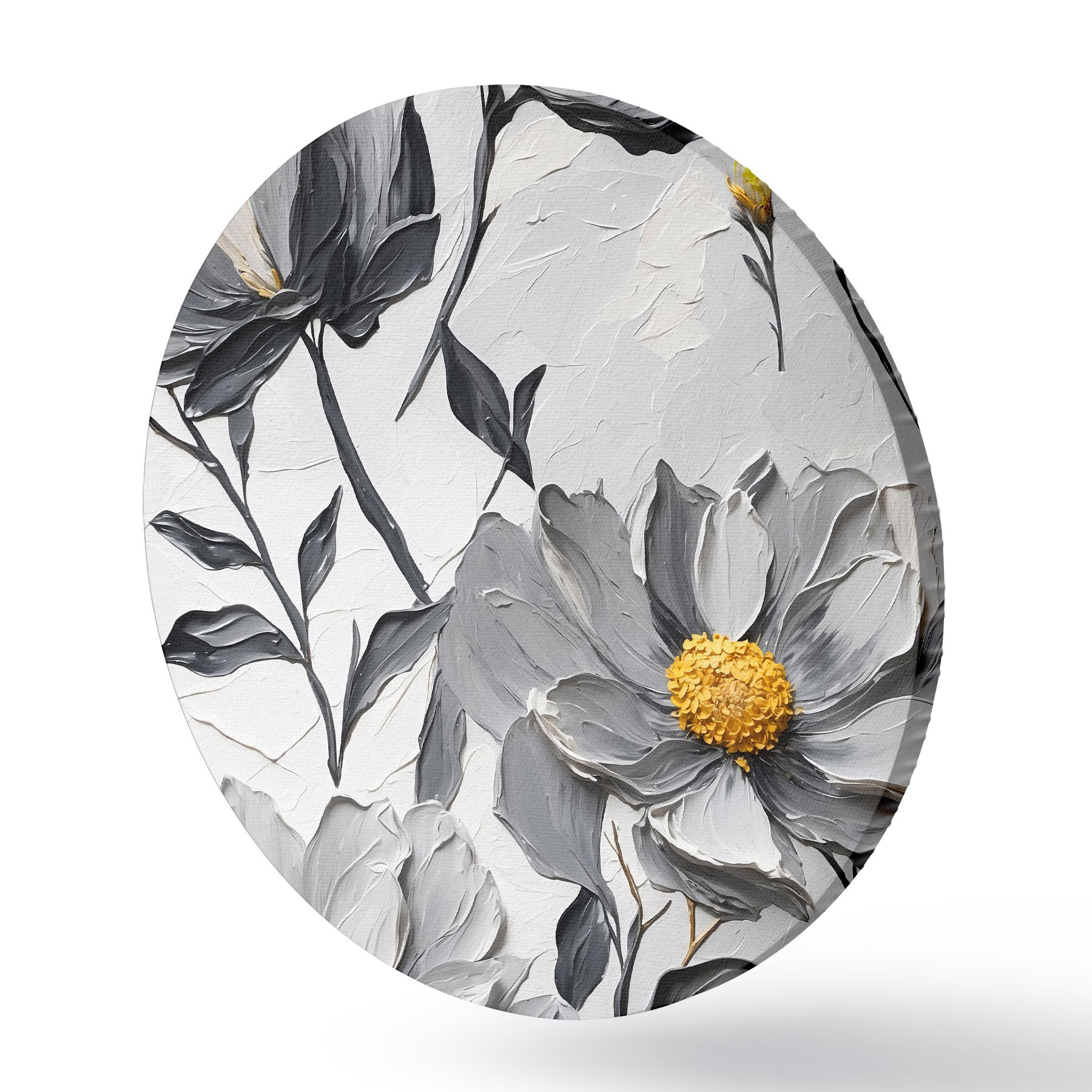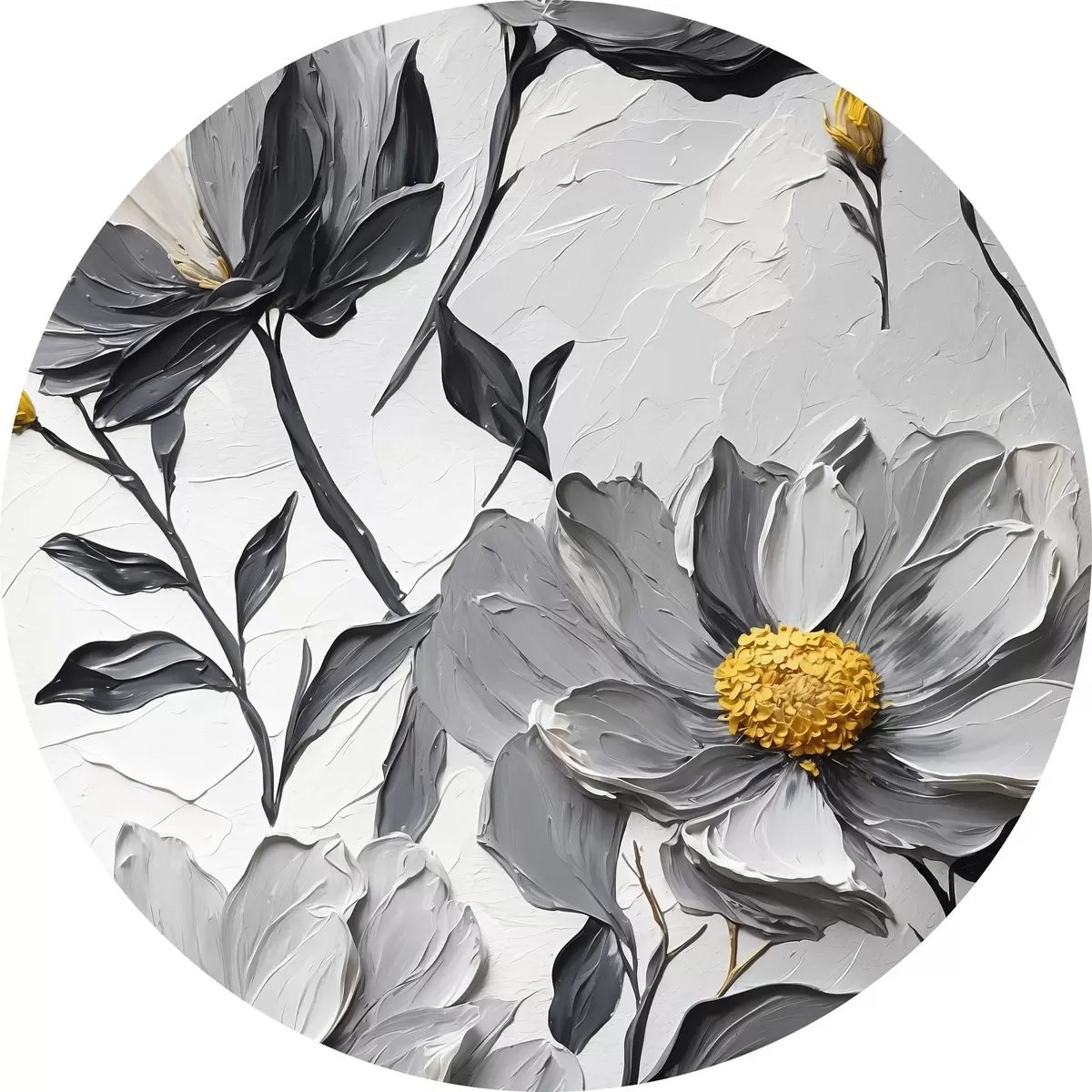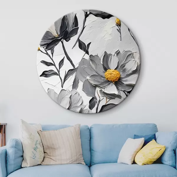 Apaļas gleznas Pelēki ziedi uz pelēka fona eļļas gleznošanas stilā r44080