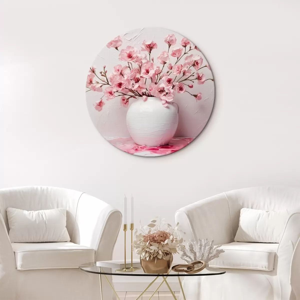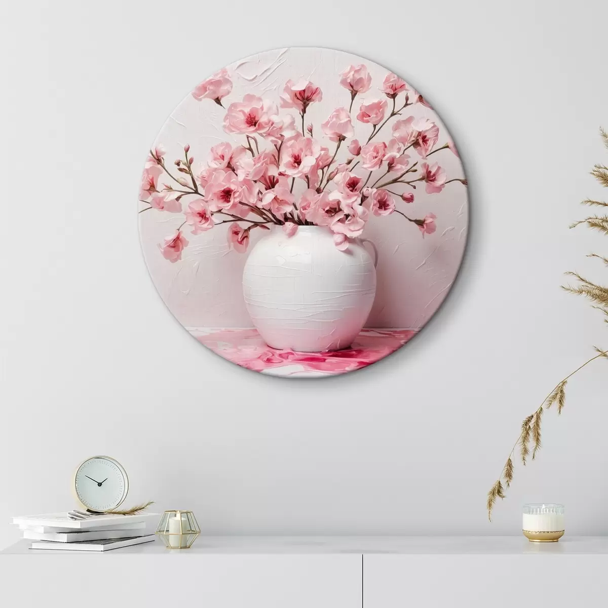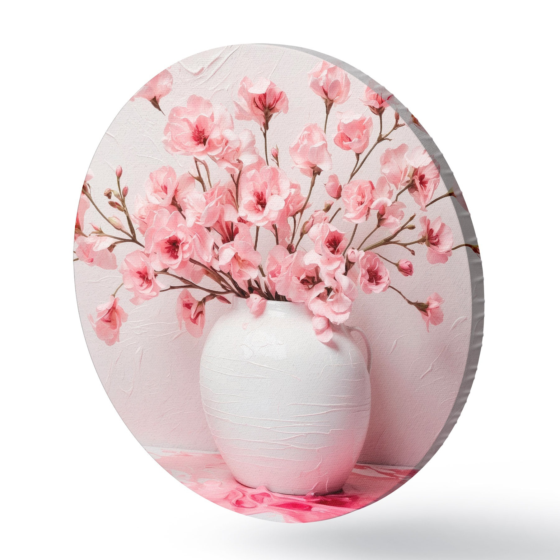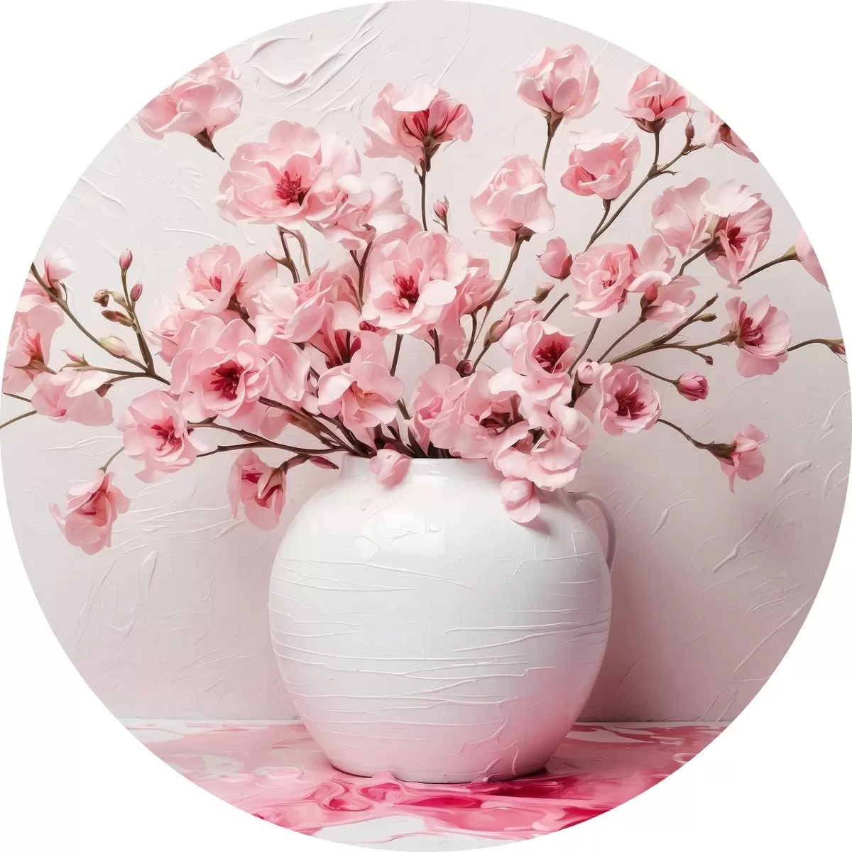 Apaļas gleznas Rozā ziedi baltā lielā vāzē r44081