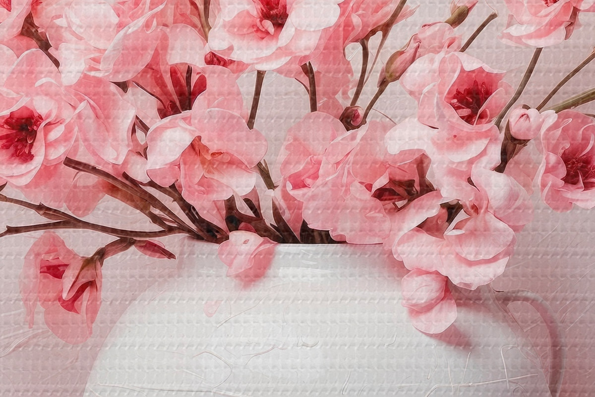 Attēls Rozā ziedi baltā lielā vāzē Nr r44081