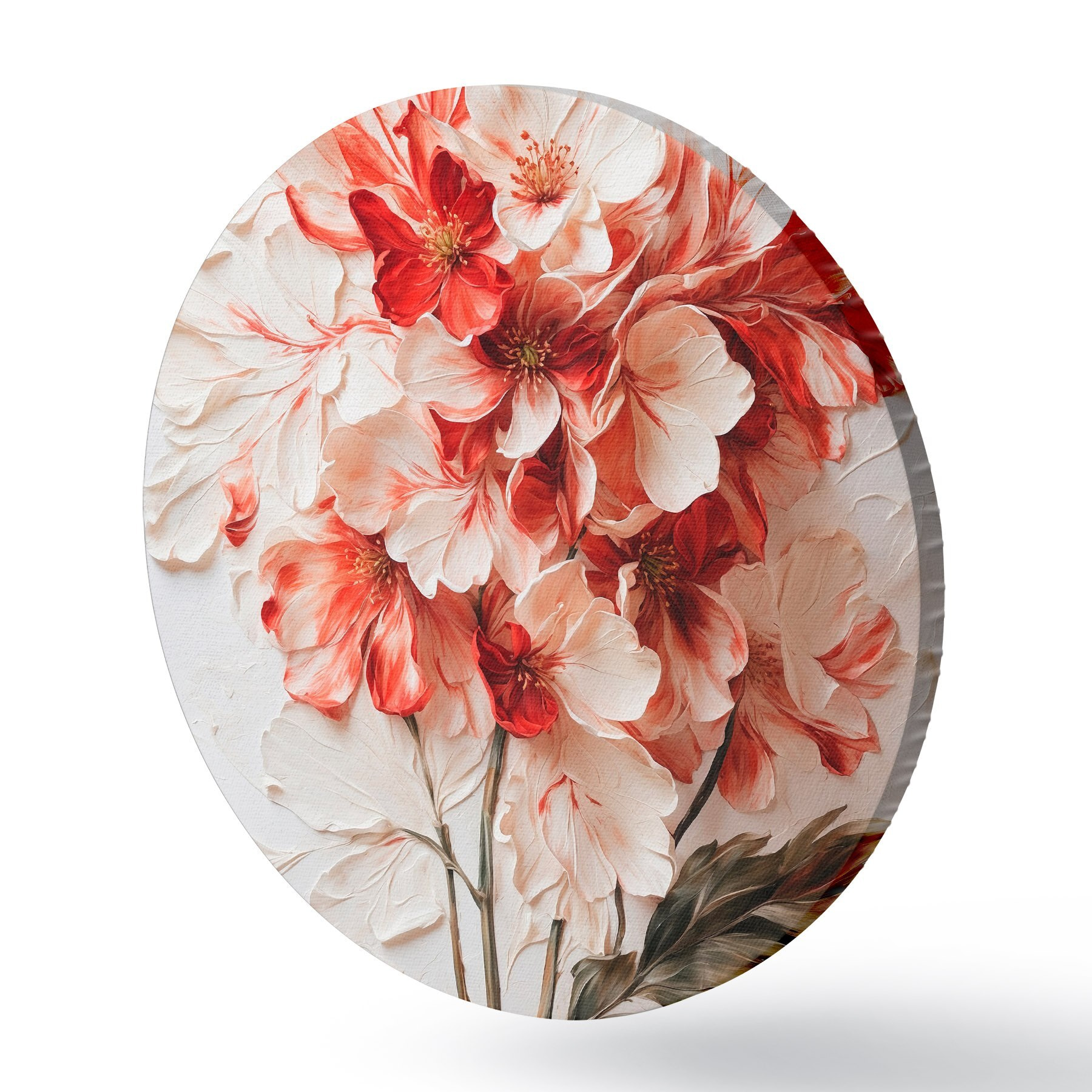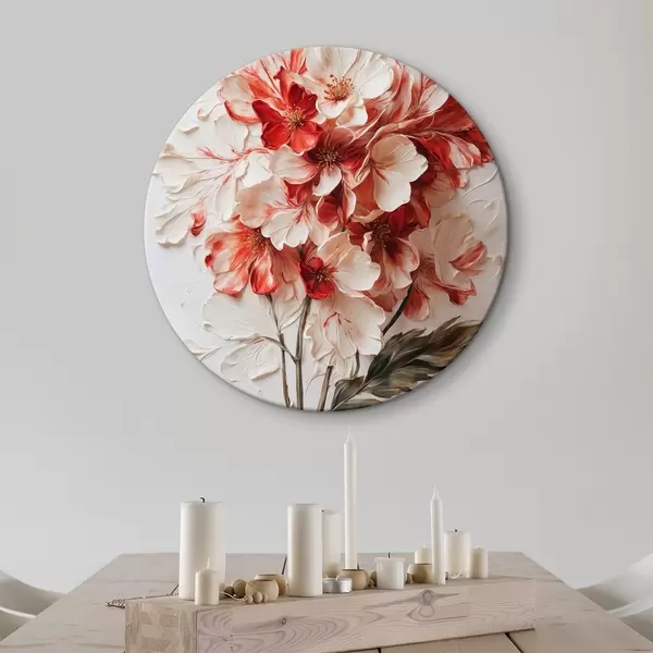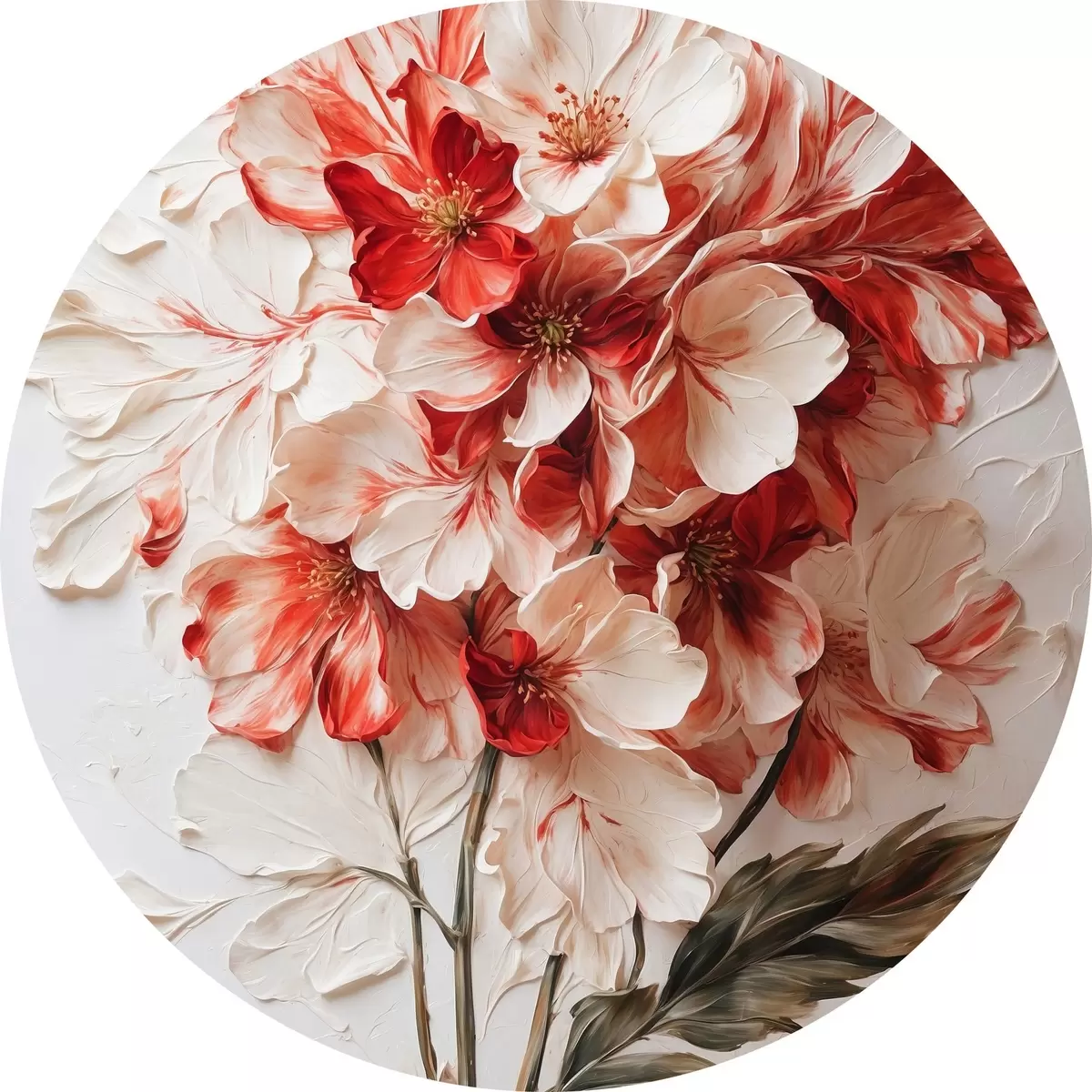 Apaļas gleznas Sarkani un balti ziedi eļļas gleznošanas stilā r44090