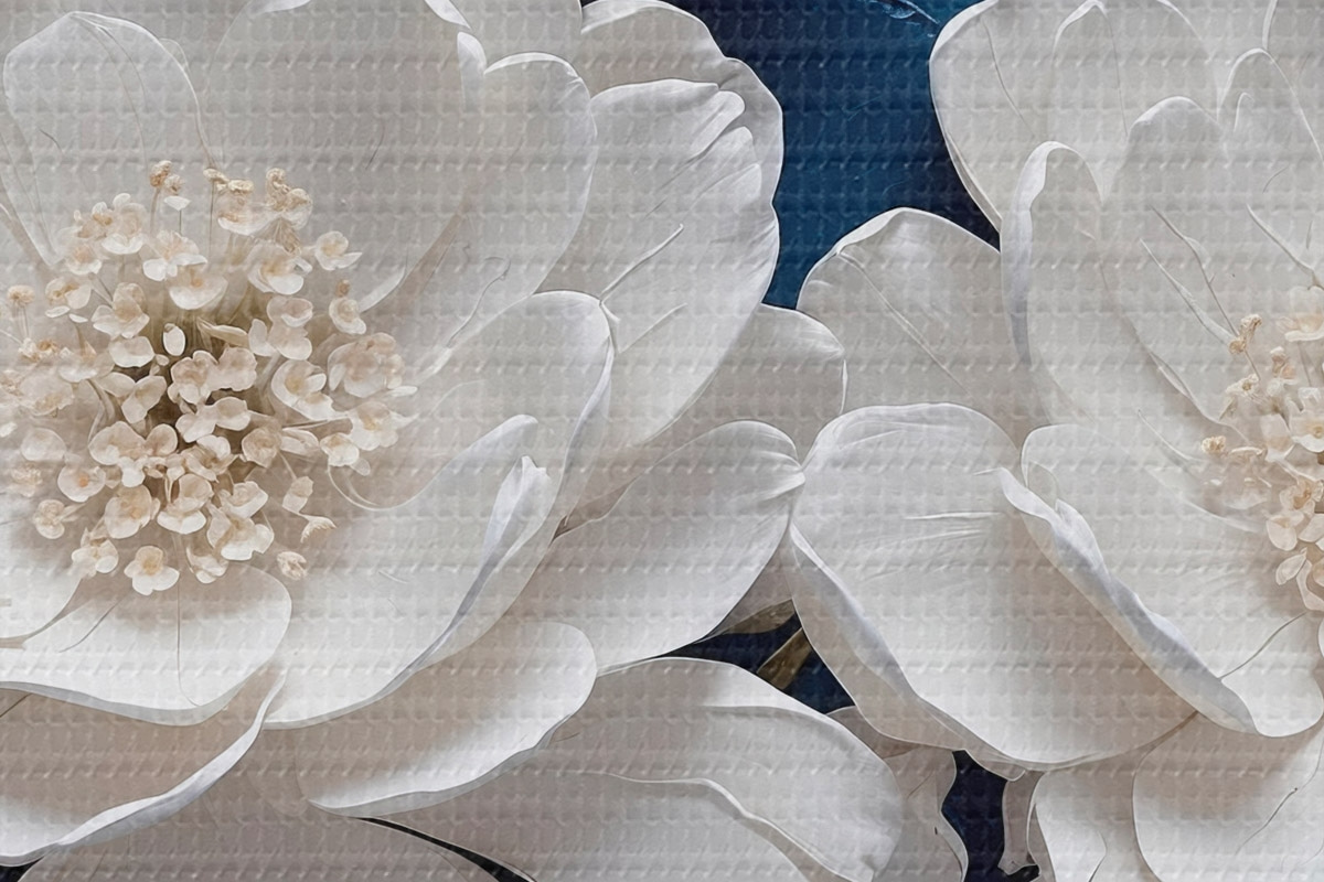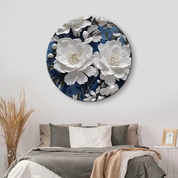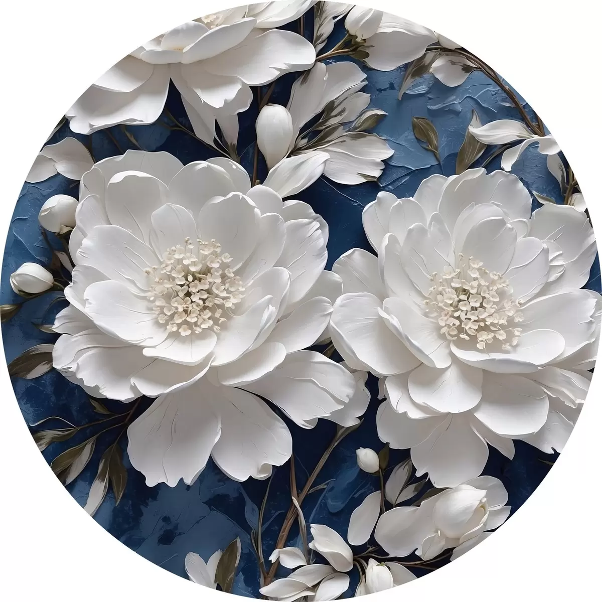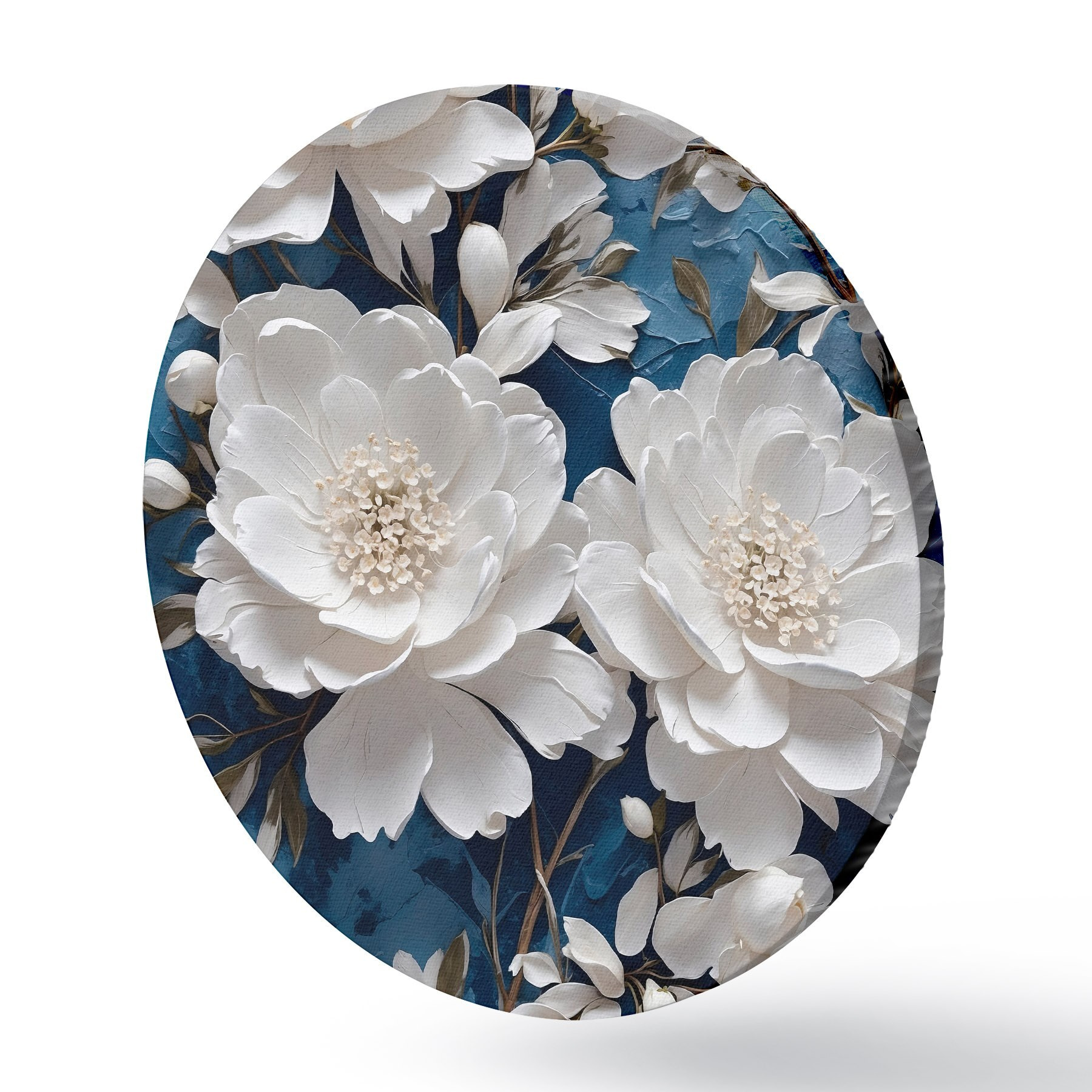 Apaļas gleznas Balti ziedi uz zila eļļas glezna fona r44091