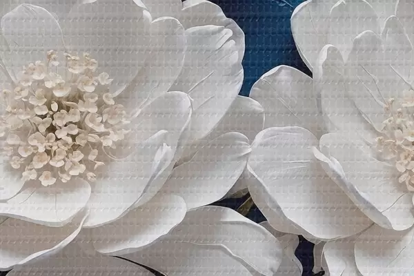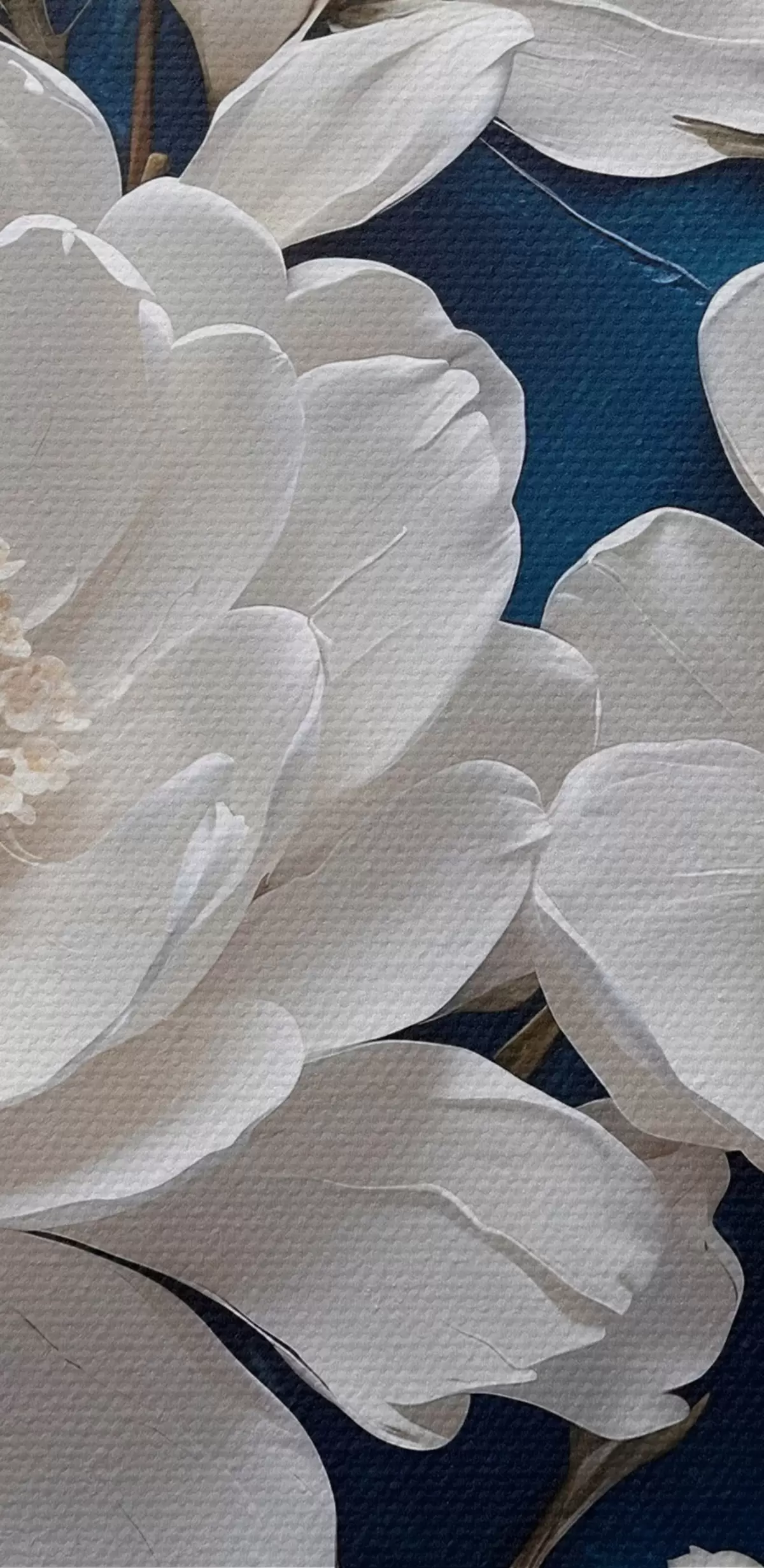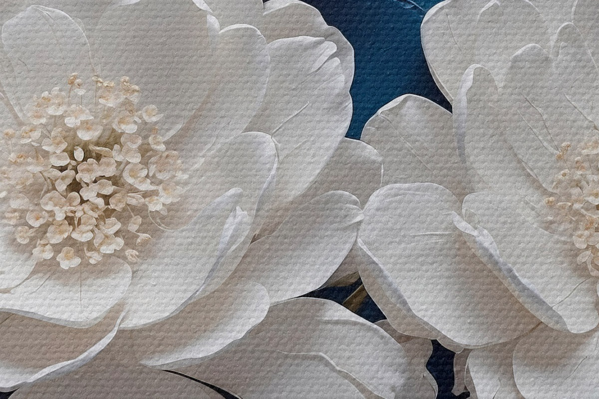 Attēls Balti ziedi uz zila eļļas glezna fona Nr r44091