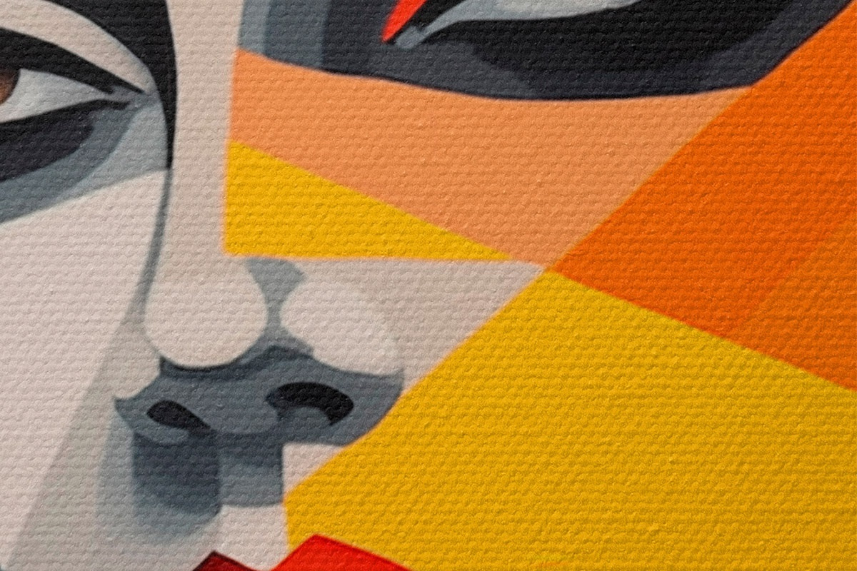 Smalkais diegu pinums uz šī audekla atgādina profesionālu mākslinieku audeklu virsmu.