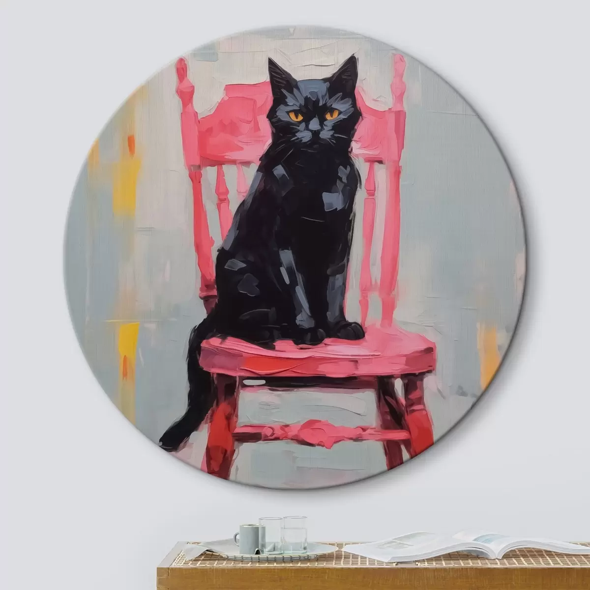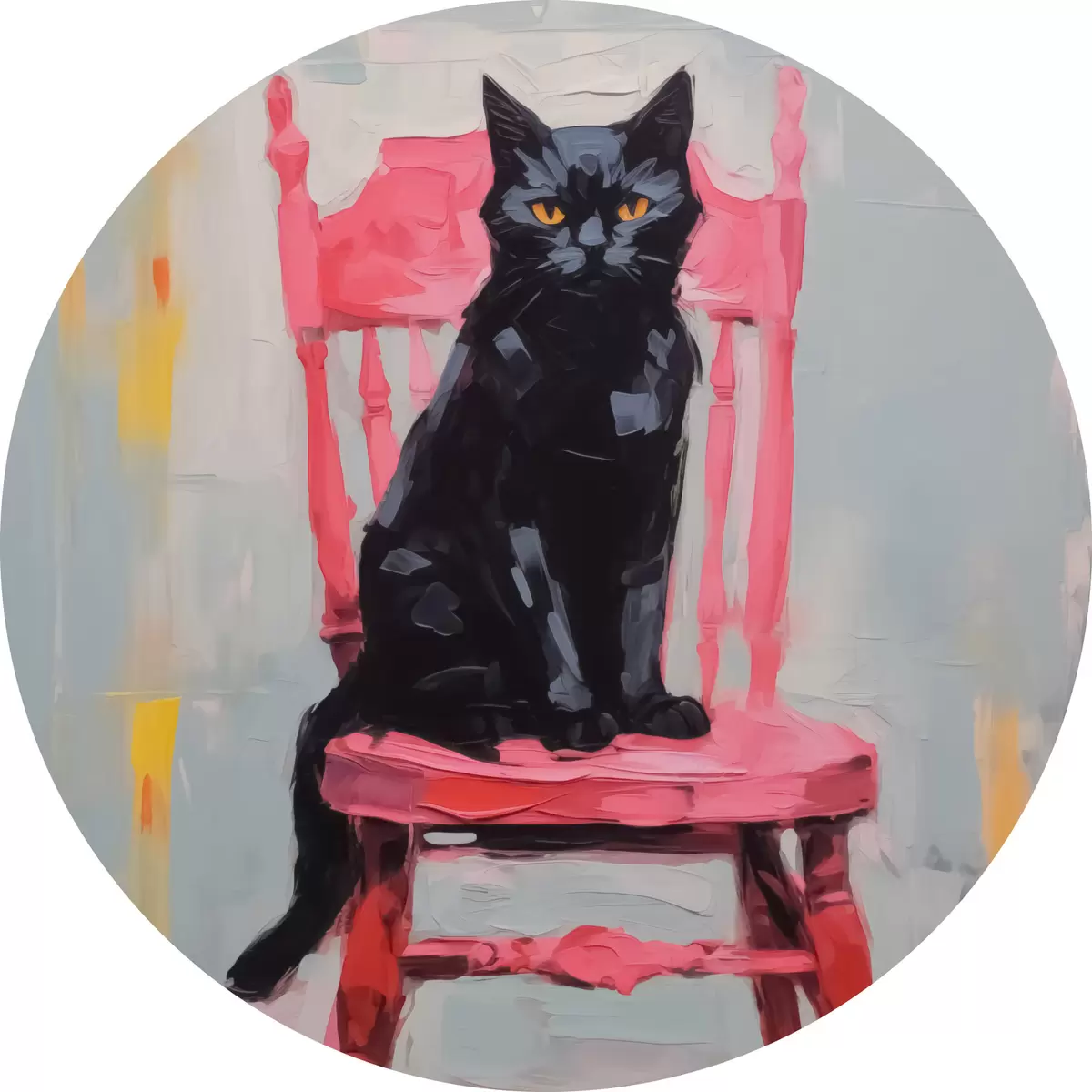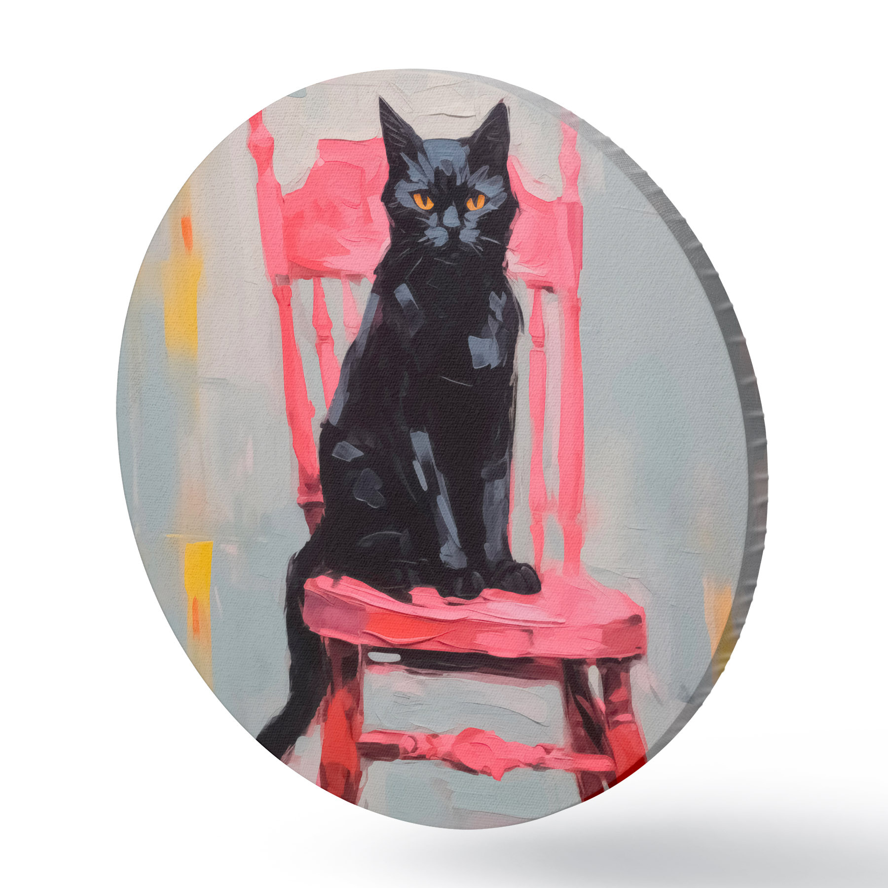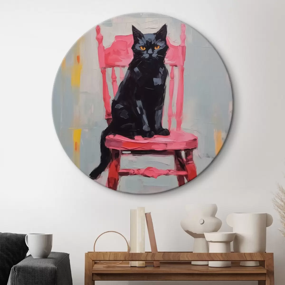 Apaļas gleznas Melns kaķis uz krēsla r44130