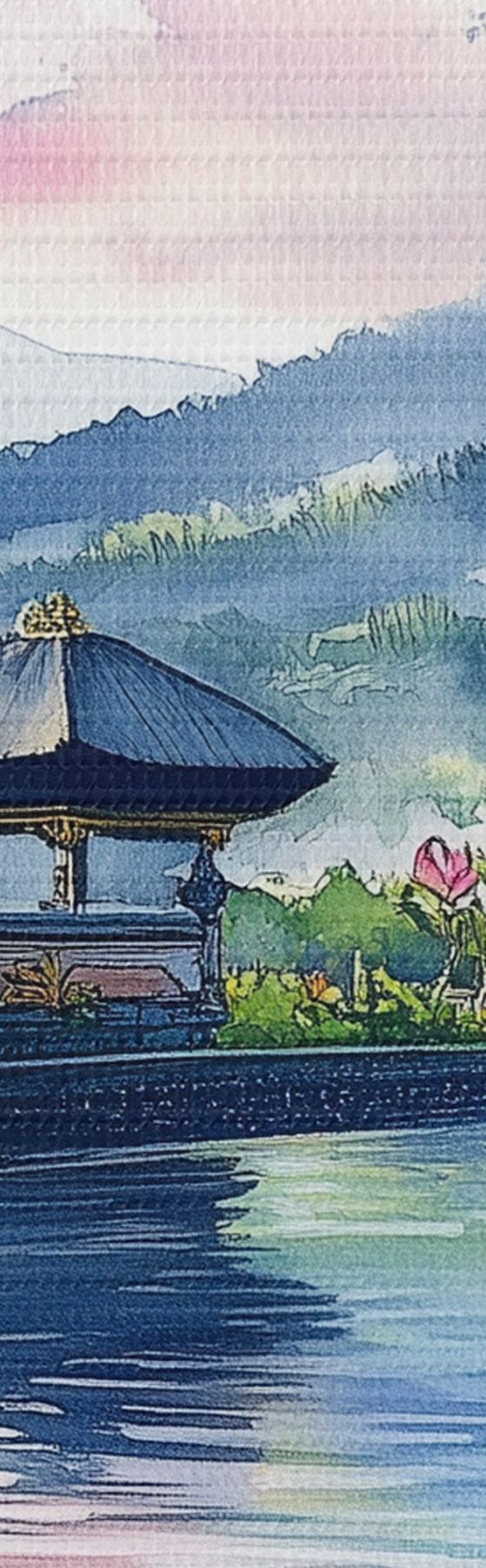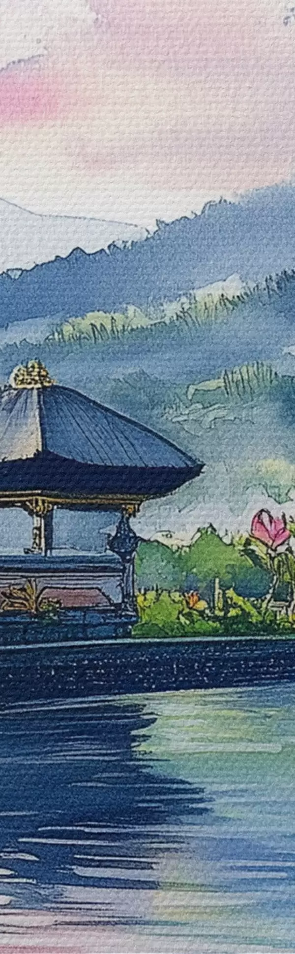 Attēls Indonēzijas sala, templis, budisms, tropu daba, akvareļu stils Nr r44148