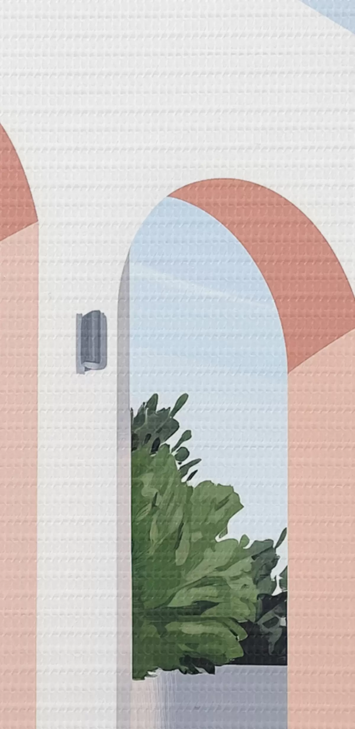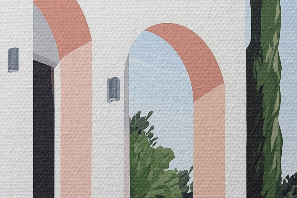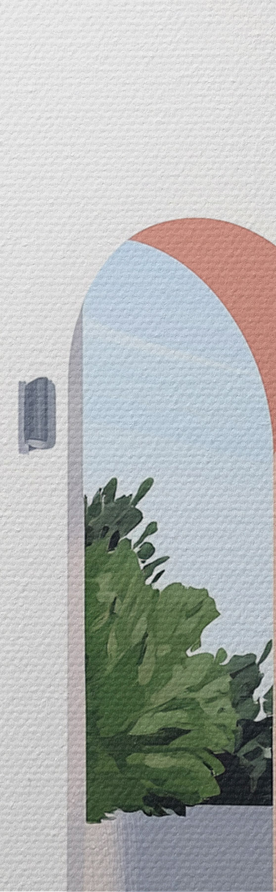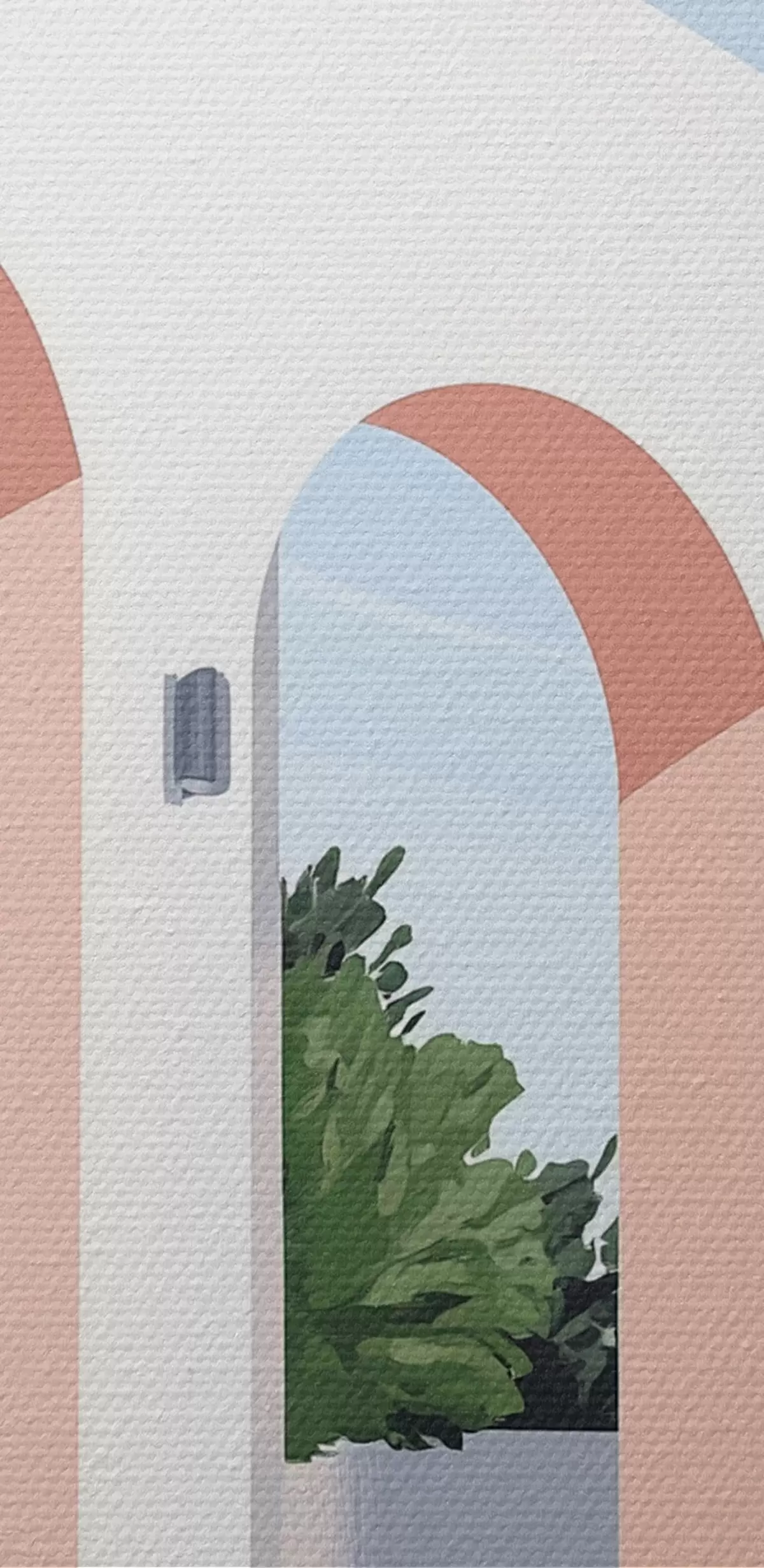 Apaļas gleznas Balta villa ar arkām un tropu dārzu, Vidusjūras, plakanā stilā r44153