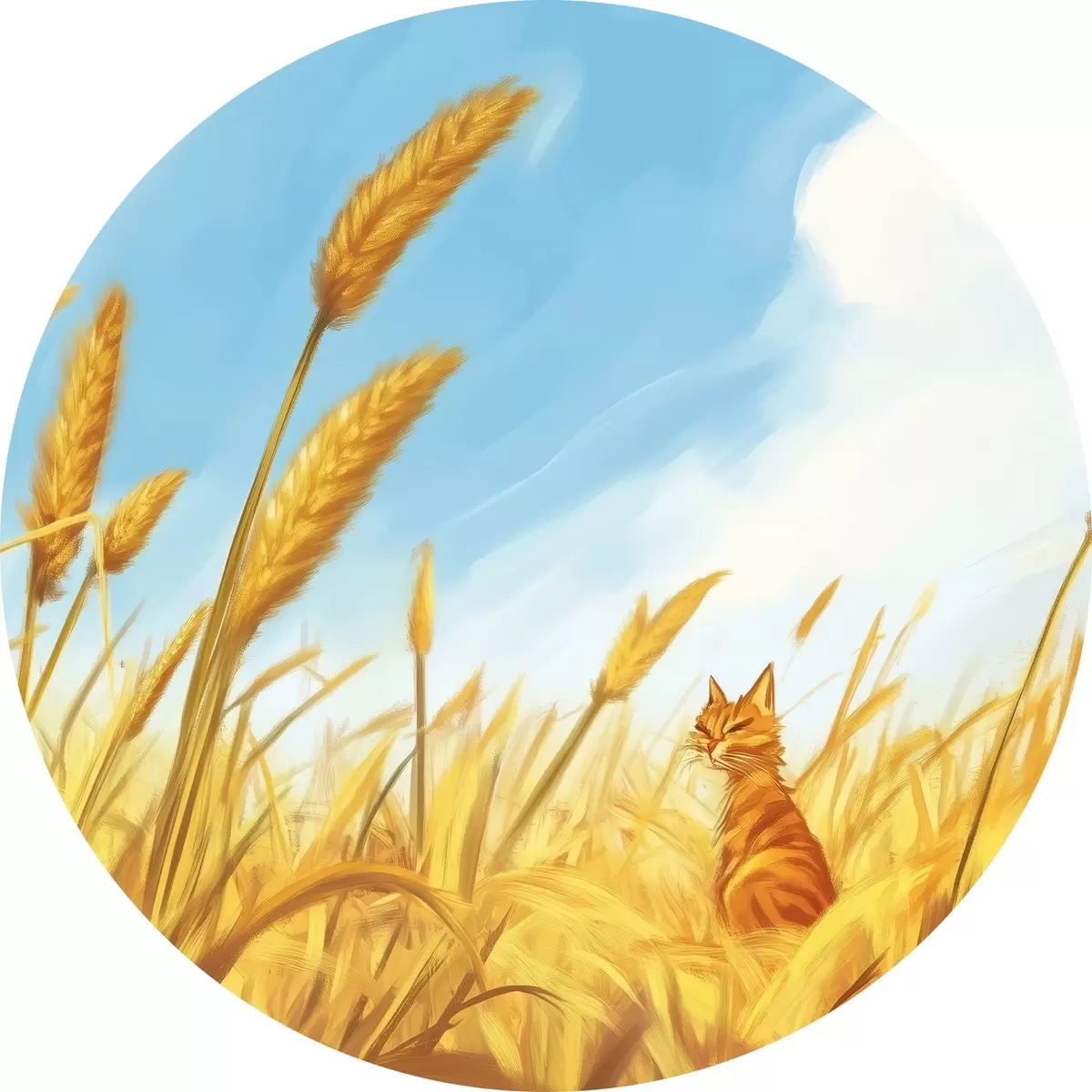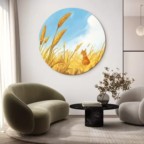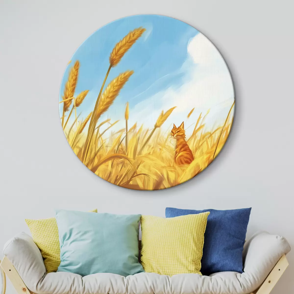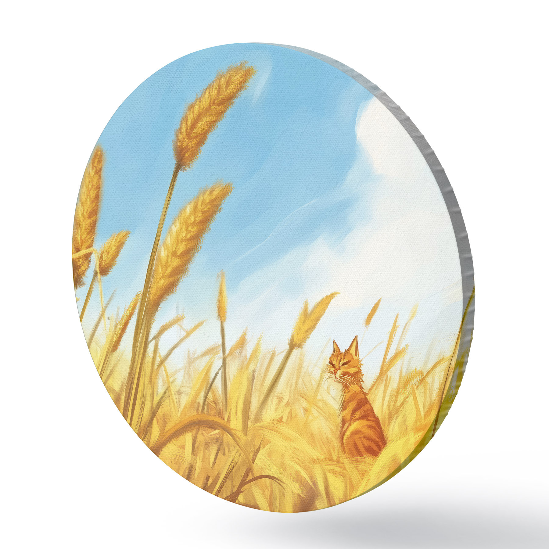 Apaļas gleznas Kaķis laukā ar kviešu kātiem r44211
