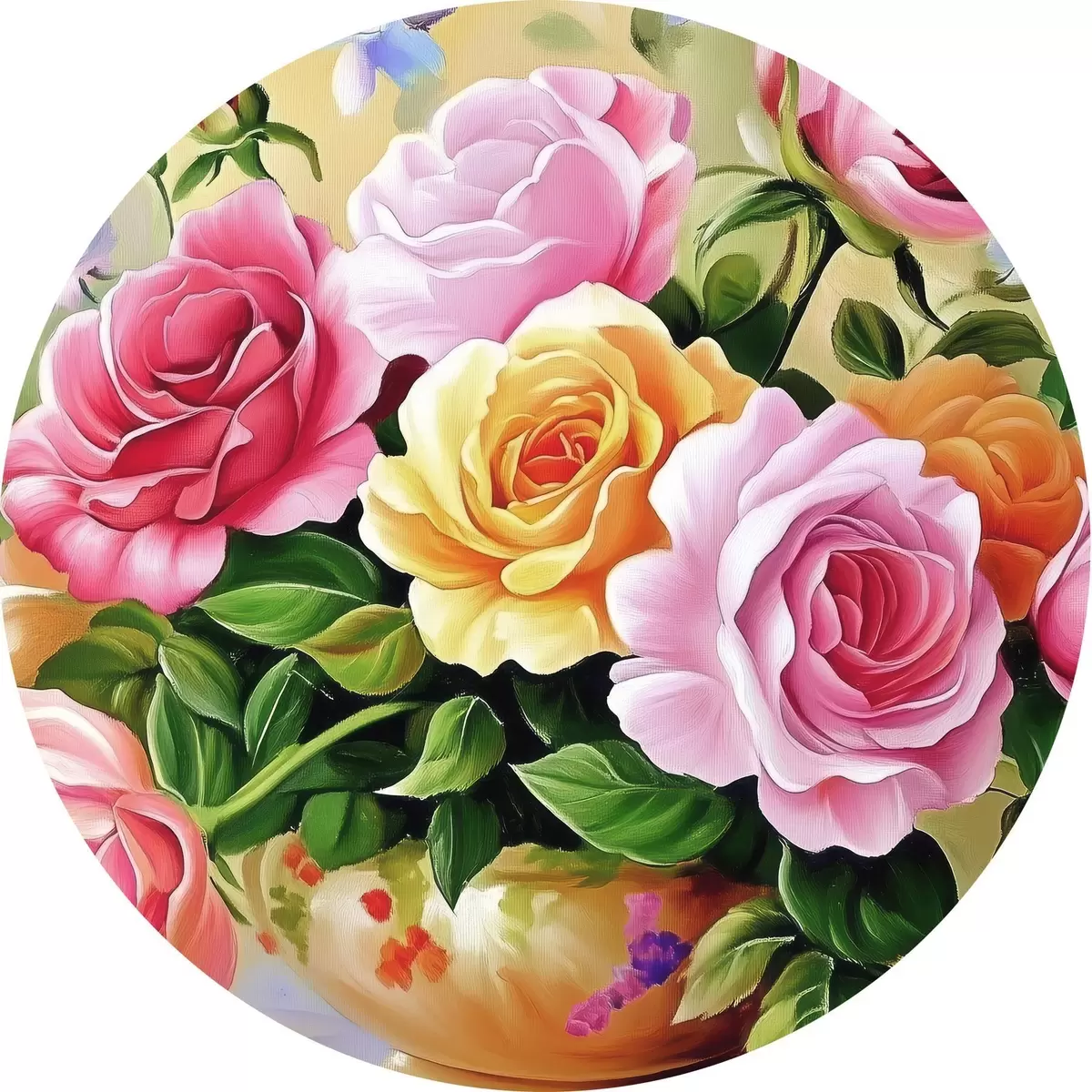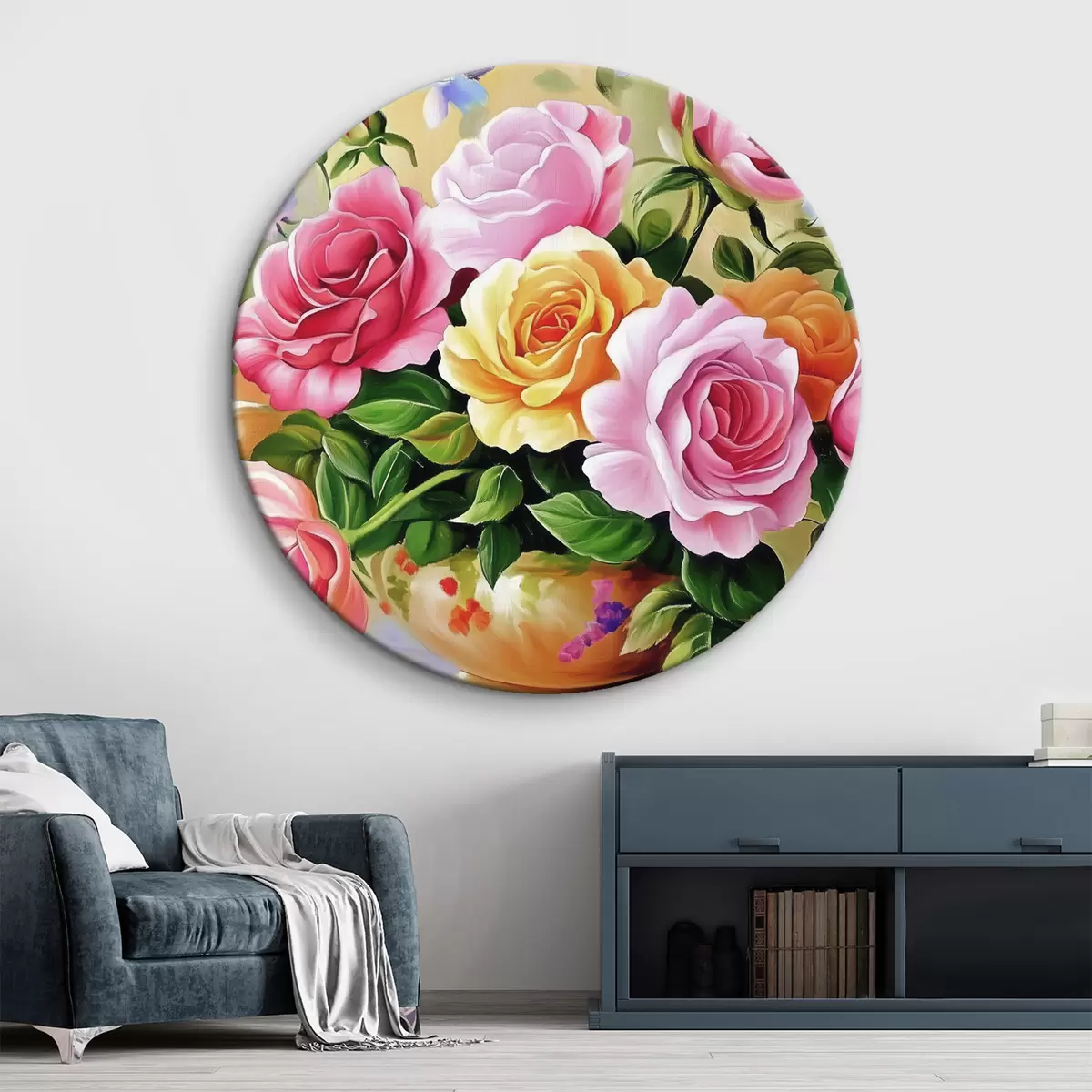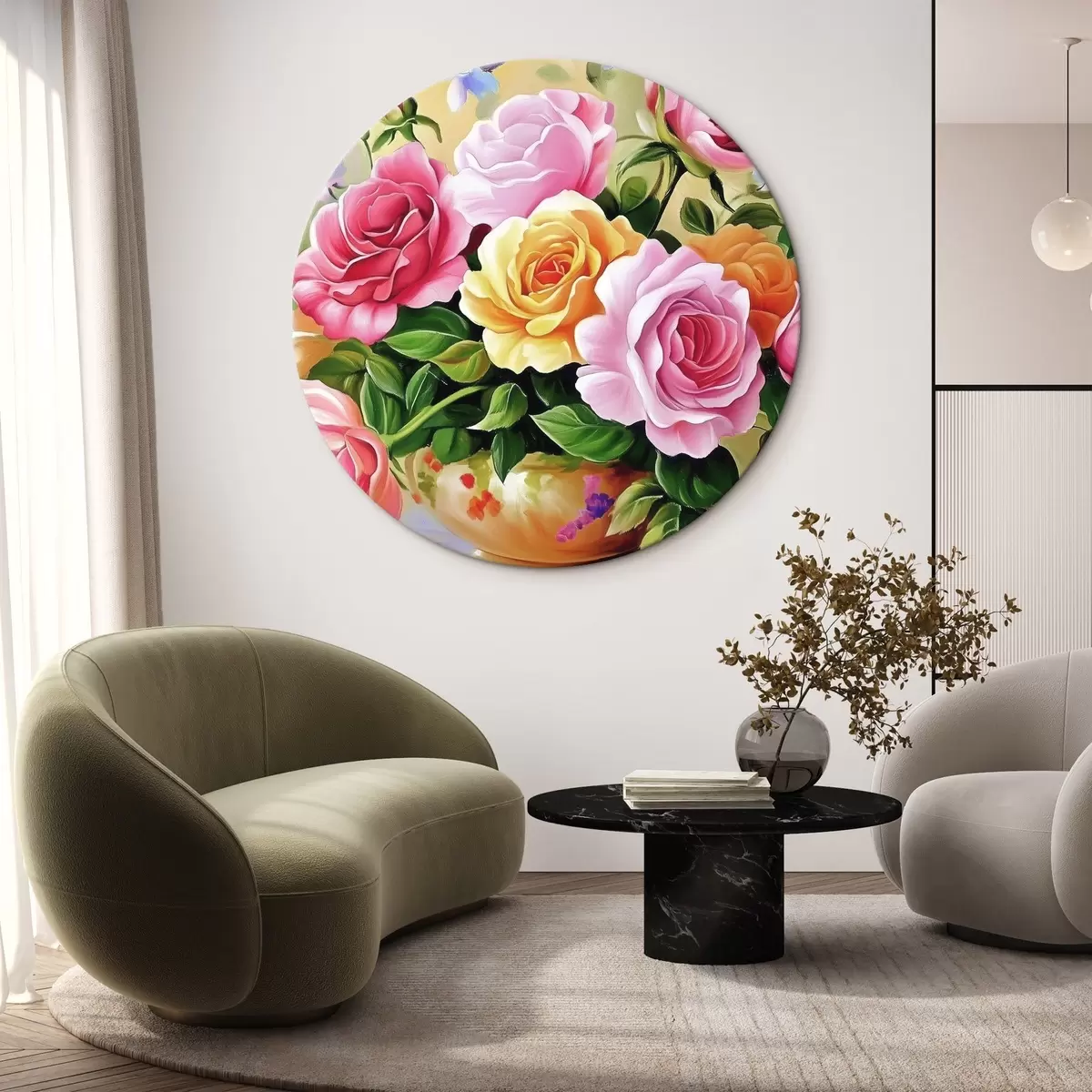 Apaļas gleznas Sulīgs košu ziedu pušķis r44217