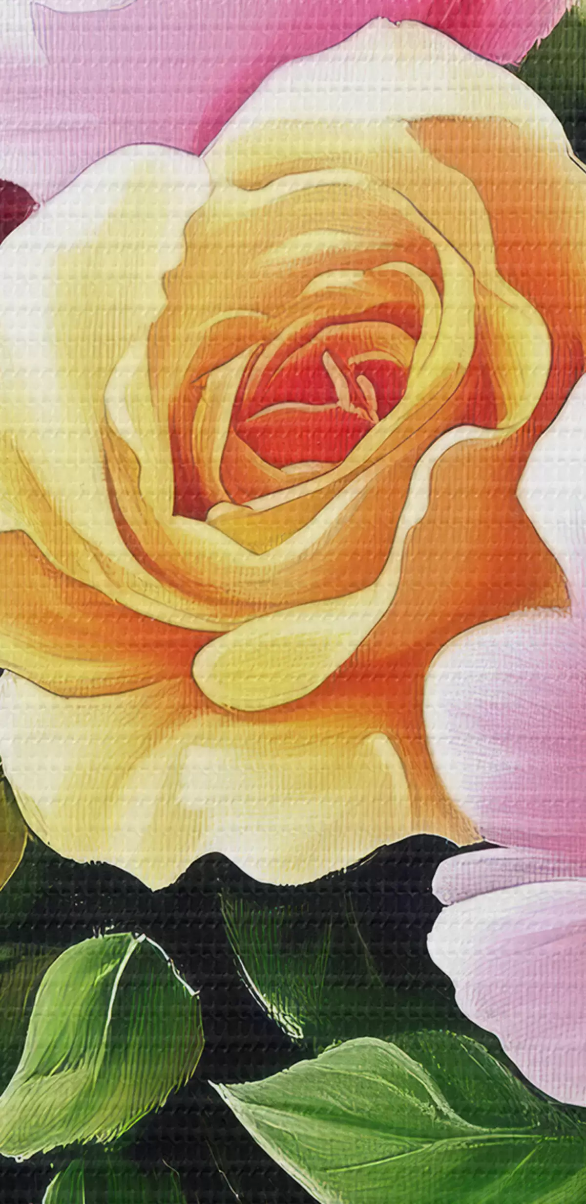 Smalkais diegu pinums uz šī audekla atgādina profesionālu mākslinieku audeklu virsmu.