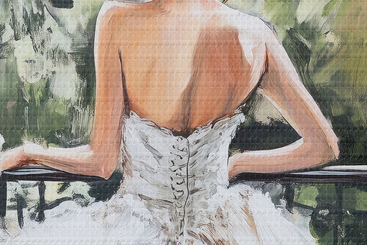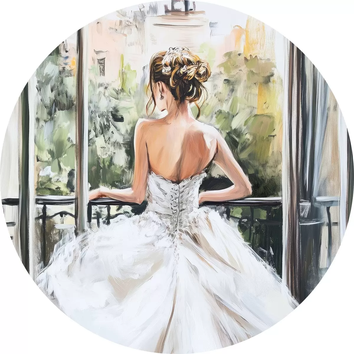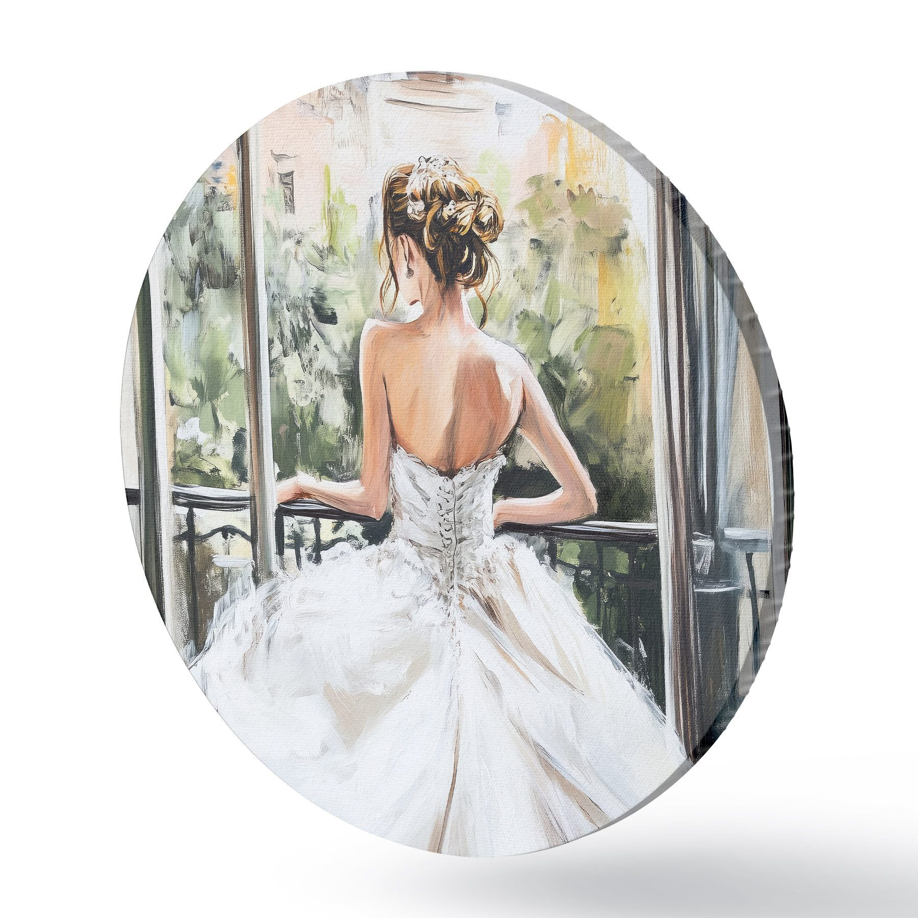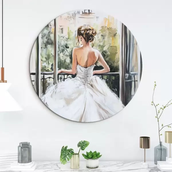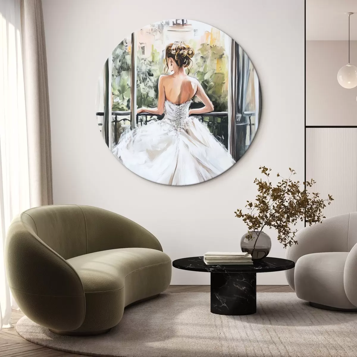 Apaļas gleznas Meitene baltā kleitā uz balkona r44226