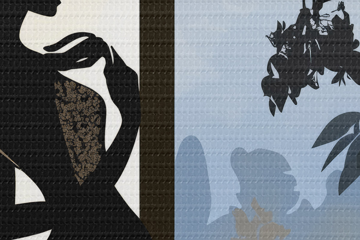 Lai izstieptu audeklu uz nestuvēm, nebojājot attēlu, mēs izmantojam spoguļattēlu.